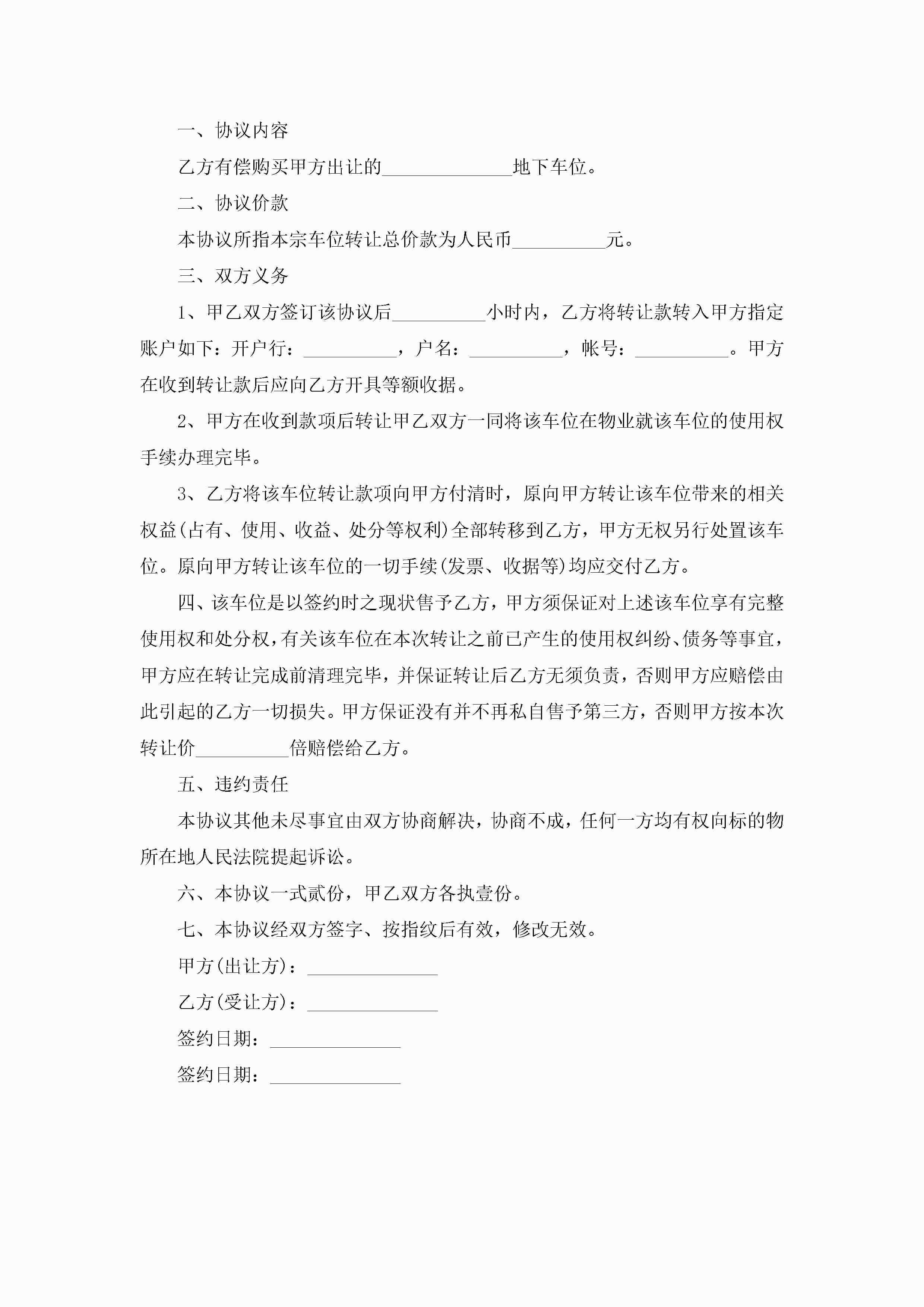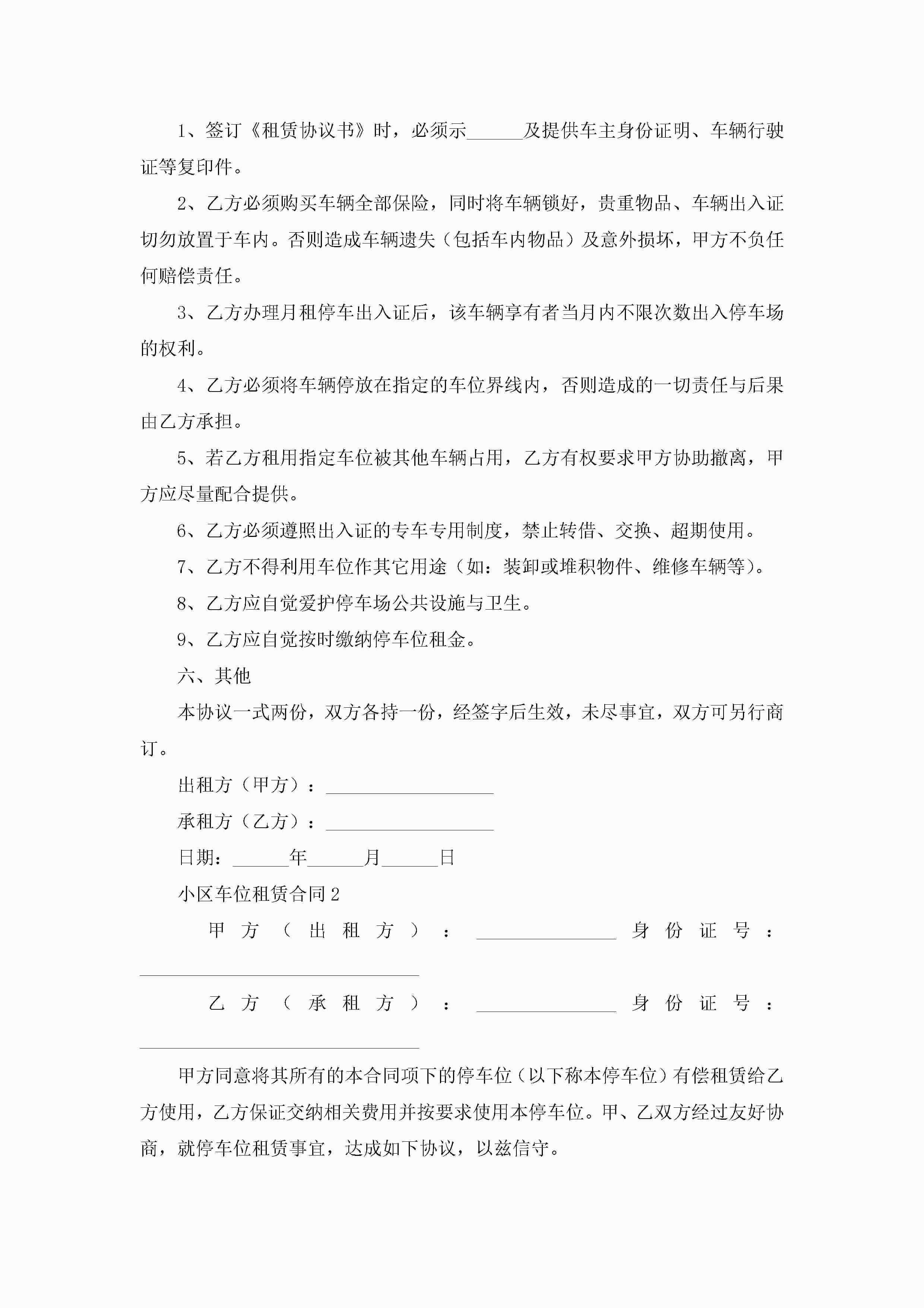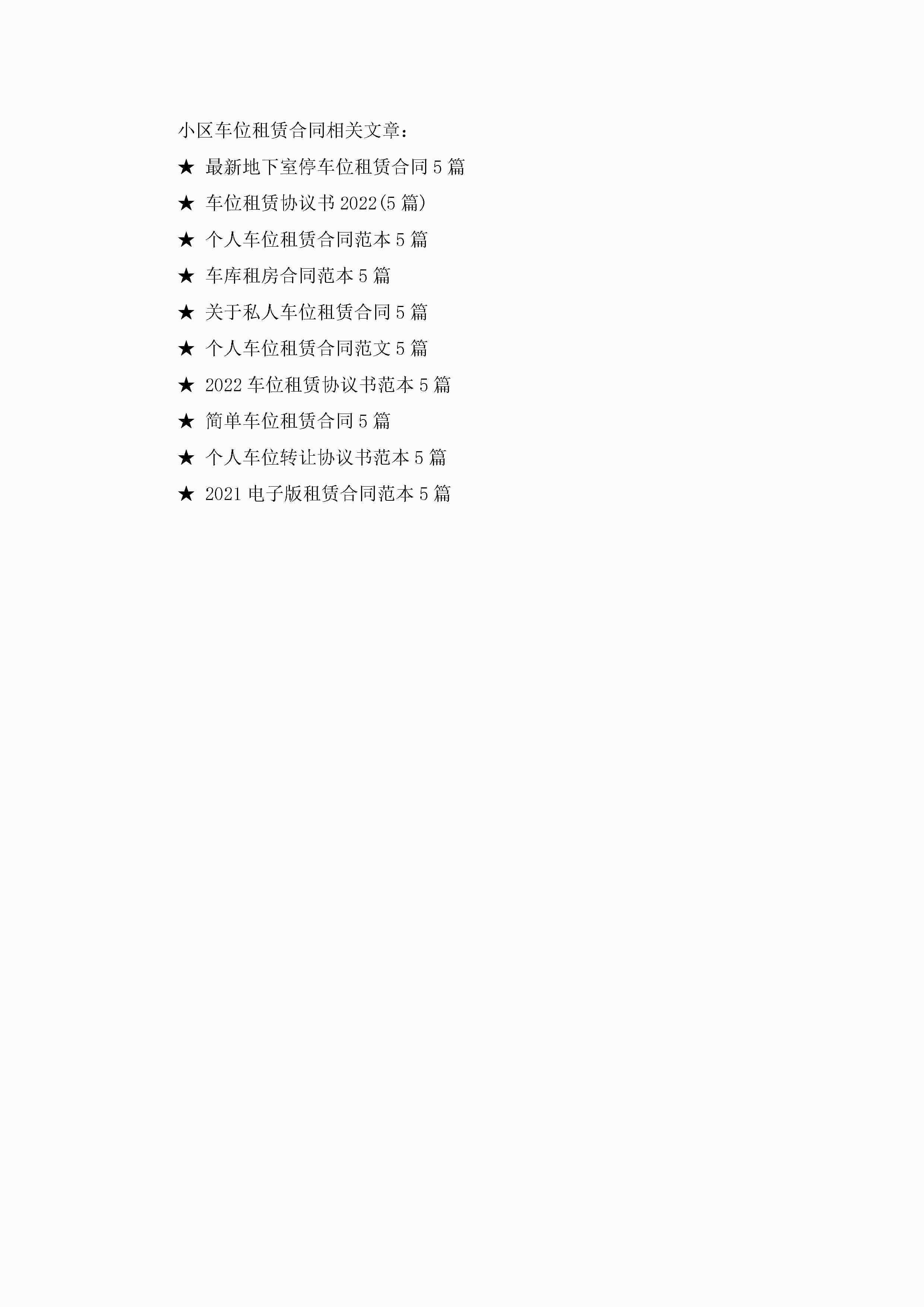 小区车位租赁合同5篇(精选)jugei3月23日 01:41发布关注277 小区车位租赁合同5篇(精选)此内容为付费资源,请付费后查看¥10.9 单篇文档限时特惠¥15个人会员开通企业会员开通立即下载无需登陆!可直接快捷下载单个模板付费资源© 版权声明THE ENDWord模板# 实用文档# 实用模板# 合同模板# 租赁合同 如有问题,可点击最底部“联系我们”联系客服 分享QQ空间微博QQ好友海报分享复制链接收藏