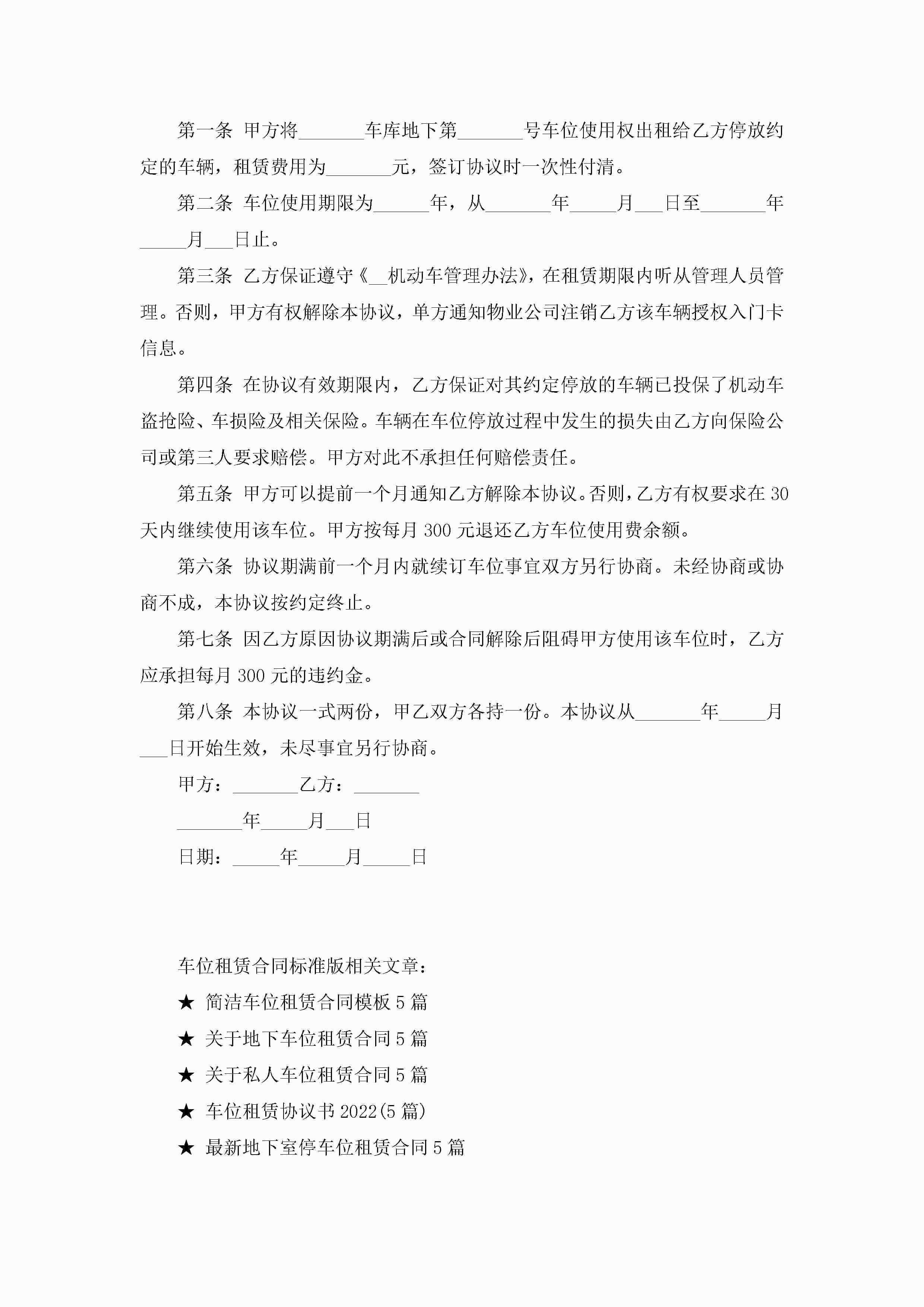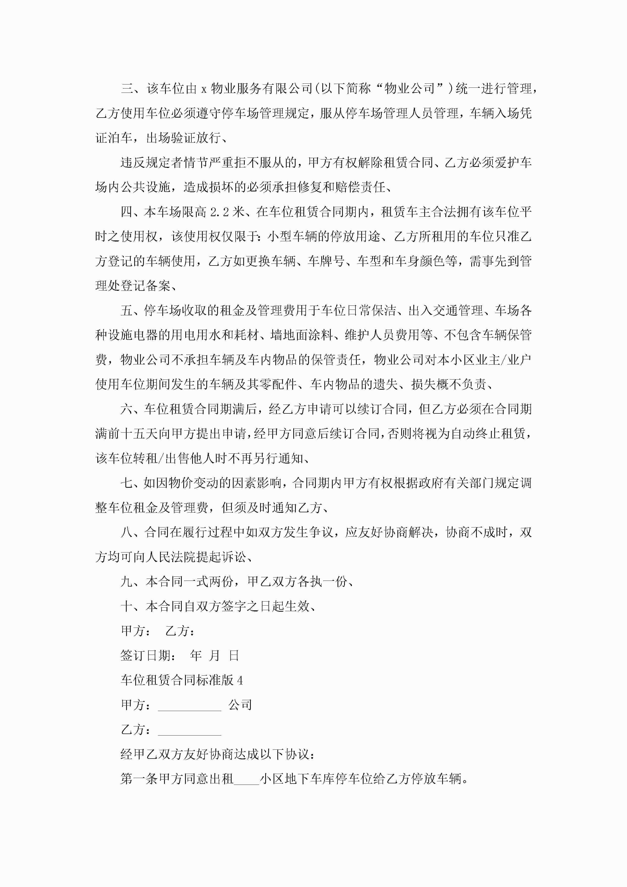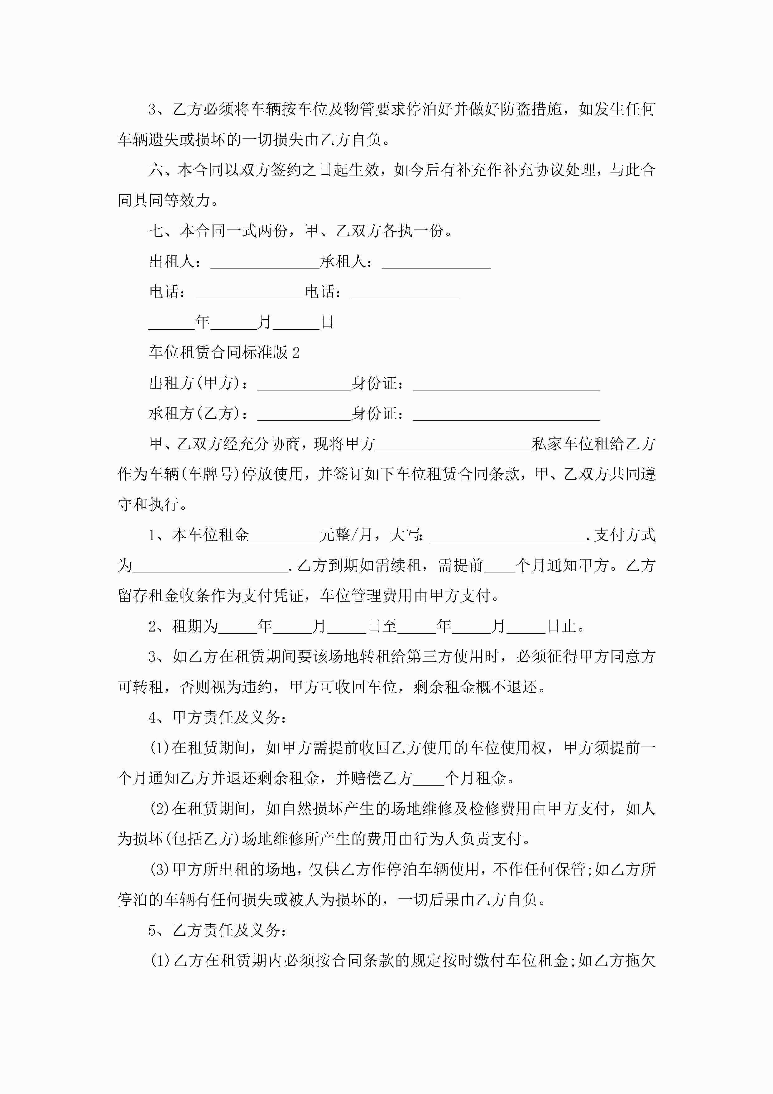 车位租赁合同标准版5篇(精选)jugei3月23日 01:41发布关注332 车位租赁合同标准版5篇(精选)此内容为付费资源,请付费后查看¥10.9 单篇文档限时特惠¥15个人会员开通企业会员开通立即下载无需登陆!可直接快捷下载单个模板付费资源© 版权声明THE ENDWord模板# 实用文档# 实用模板# 合同模板# 租赁合同 如有问题,可点击最底部“联系我们”联系客服 分享QQ空间微博QQ好友海报分享复制链接收藏