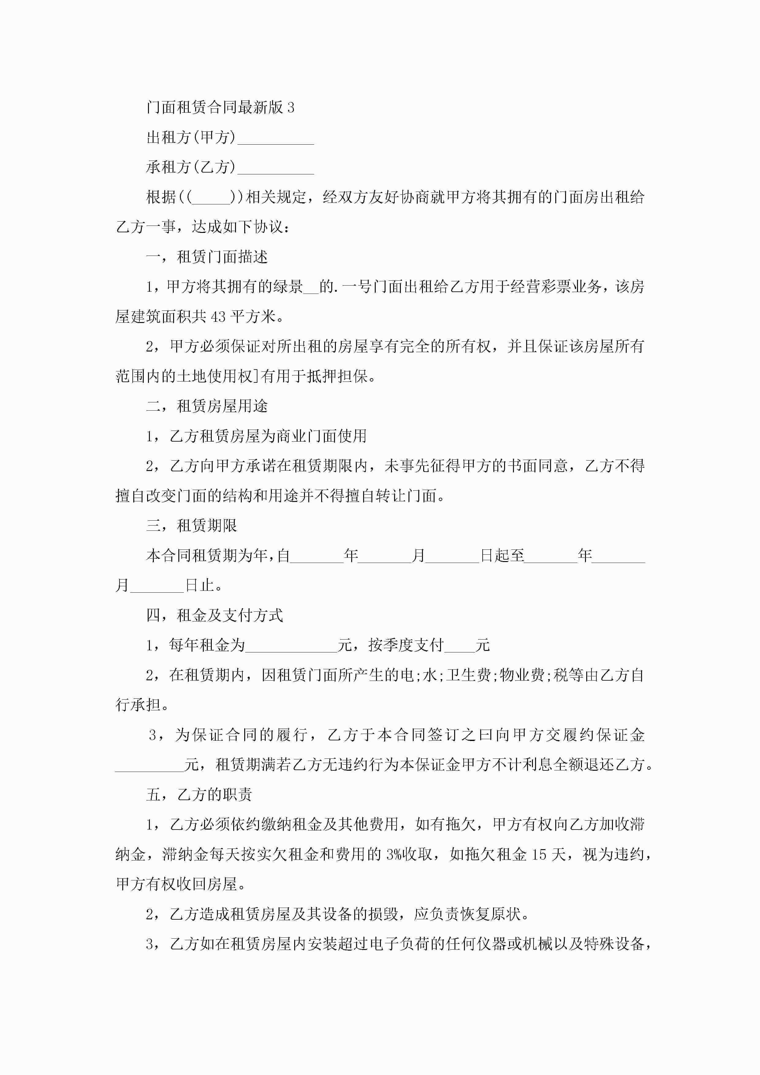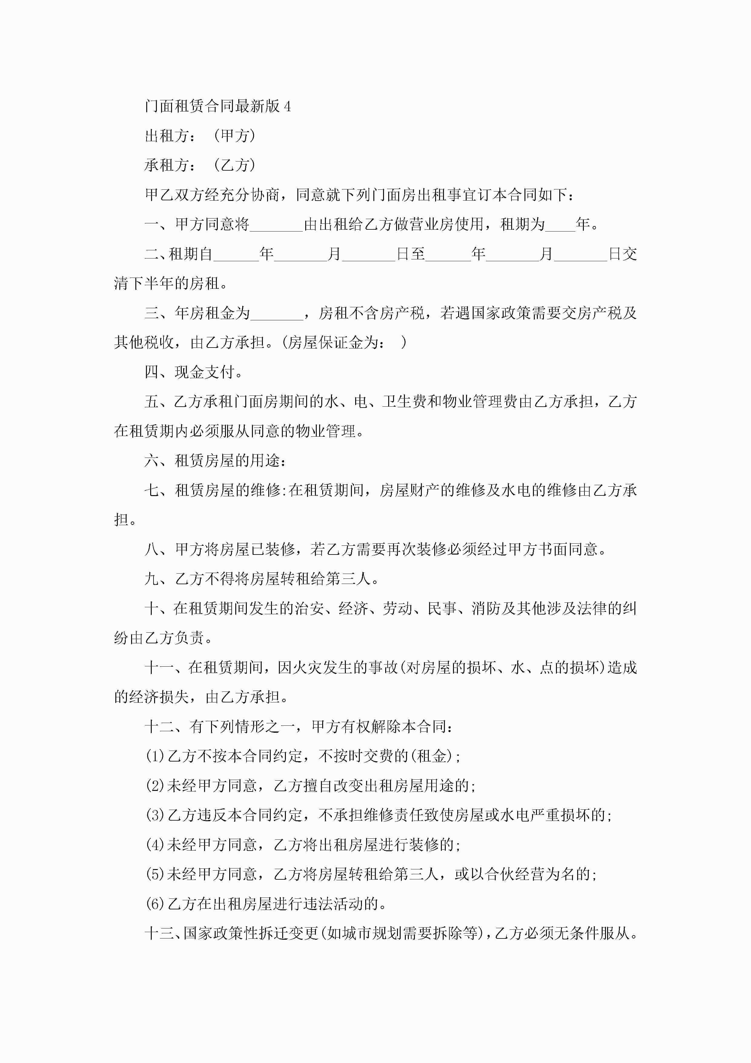 门面租赁合同最新版5篇jugei3月23日 01:41发布关注232 门面租赁合同最新版5篇此内容为付费资源,请付费后查看¥10.9 单篇文档限时特惠¥15个人会员开通企业会员开通立即下载无需登陆!可直接快捷下载单个模板付费资源© 版权声明THE ENDWord模板# 实用文档# 合同模板# 租赁合同# 门面租赁合同最新版 如有问题,可点击最底部“联系我们”联系客服 分享QQ空间微博QQ好友海报分享复制链接收藏