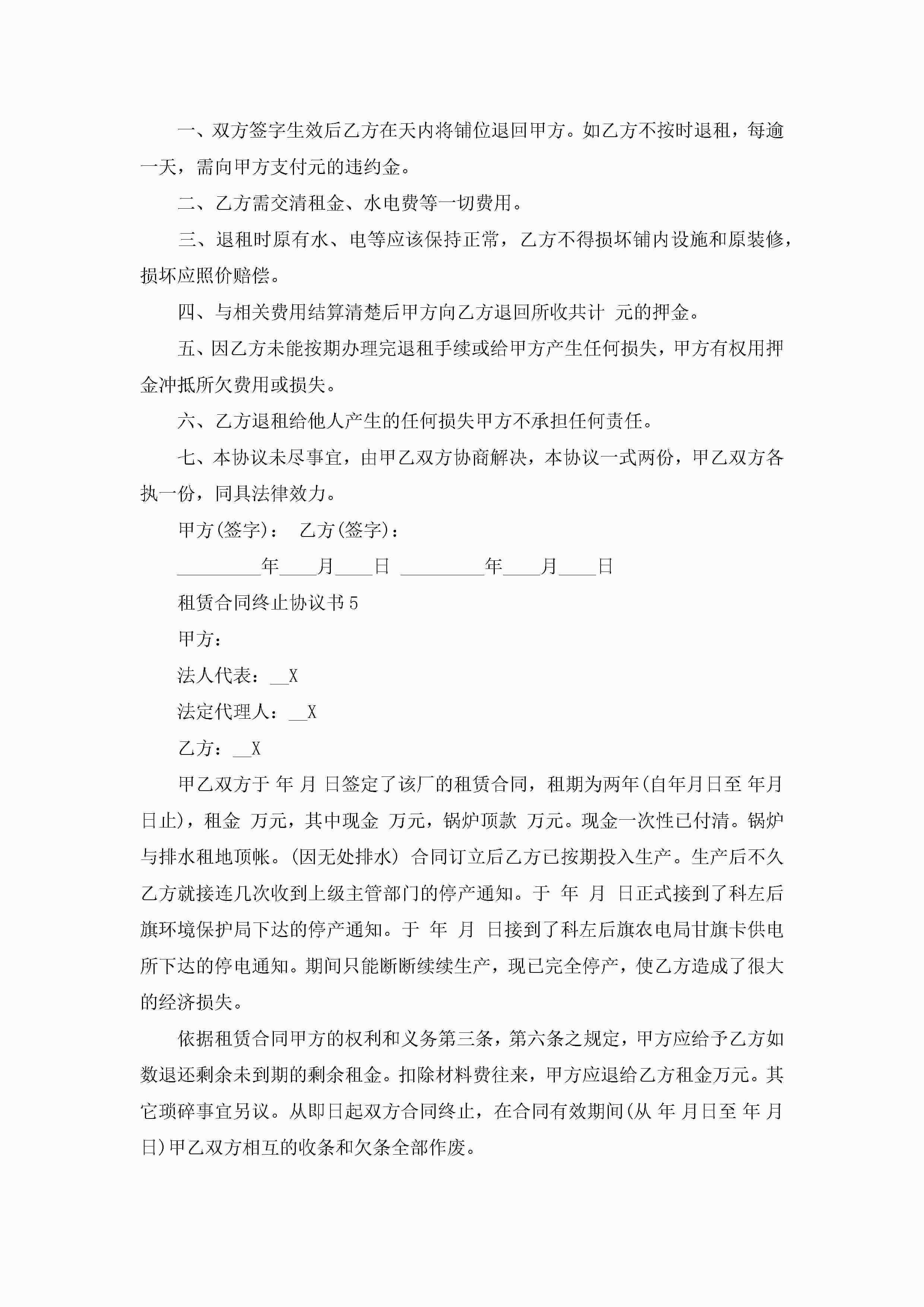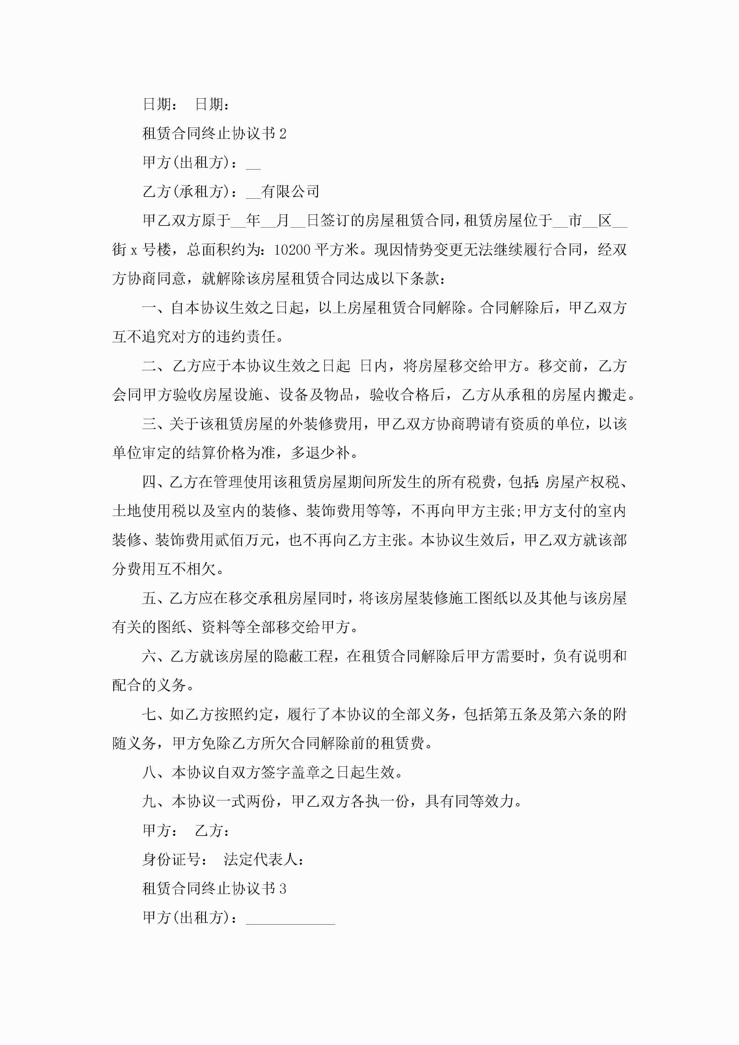 租赁合同终止协议书5篇jugei3月23日 01:41发布关注234 租赁合同终止协议书5篇此内容为付费资源,请付费后查看¥10.9 单篇文档限时特惠¥15个人会员开通企业会员开通立即下载无需登陆!可直接快捷下载单个模板付费资源© 版权声明THE ENDWord模板# 实用文档# 合同模板# 租赁合同# 租赁合同终止协议书 如有问题,可点击最底部“联系我们”联系客服 分享QQ空间微博QQ好友海报分享复制链接收藏