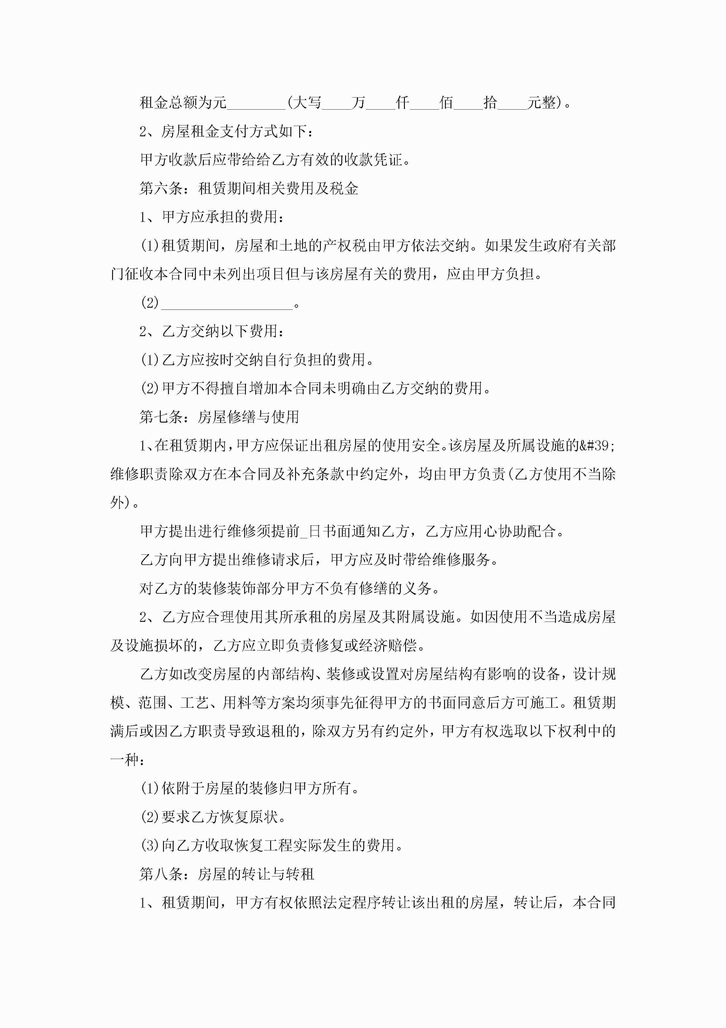 关于房屋租赁合同大全5篇jugei3月23日 01:41发布关注184 关于房屋租赁合同大全5篇此内容为付费资源,请付费后查看¥10.9 单篇文档限时特惠¥15个人会员开通企业会员开通立即下载无需登陆!可直接快捷下载单个模板付费资源© 版权声明THE ENDWord模板# 实用文档# 实用模板# 合同模板# 租赁合同 如有问题,可点击最底部“联系我们”联系客服 分享QQ空间微博QQ好友海报分享复制链接收藏