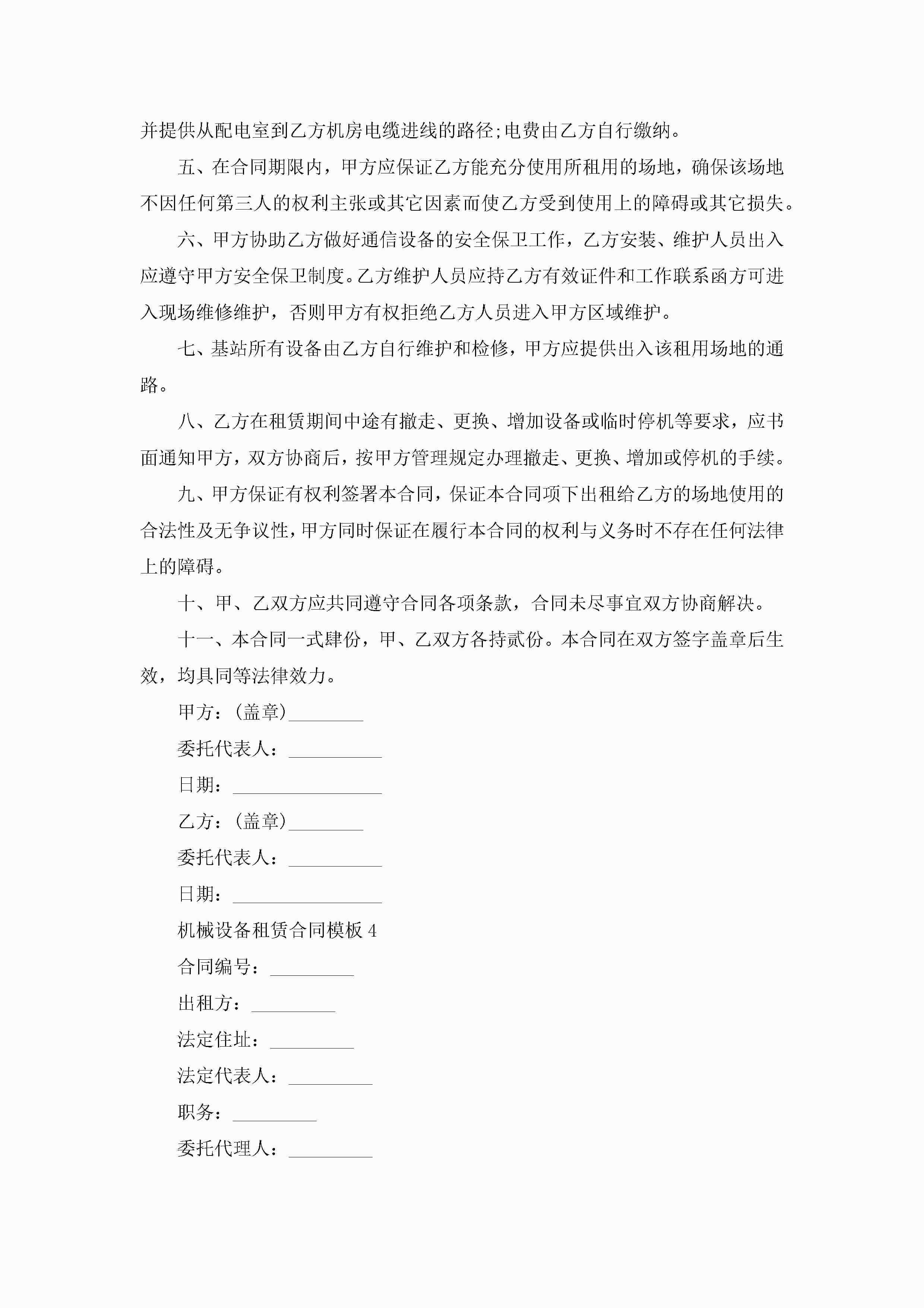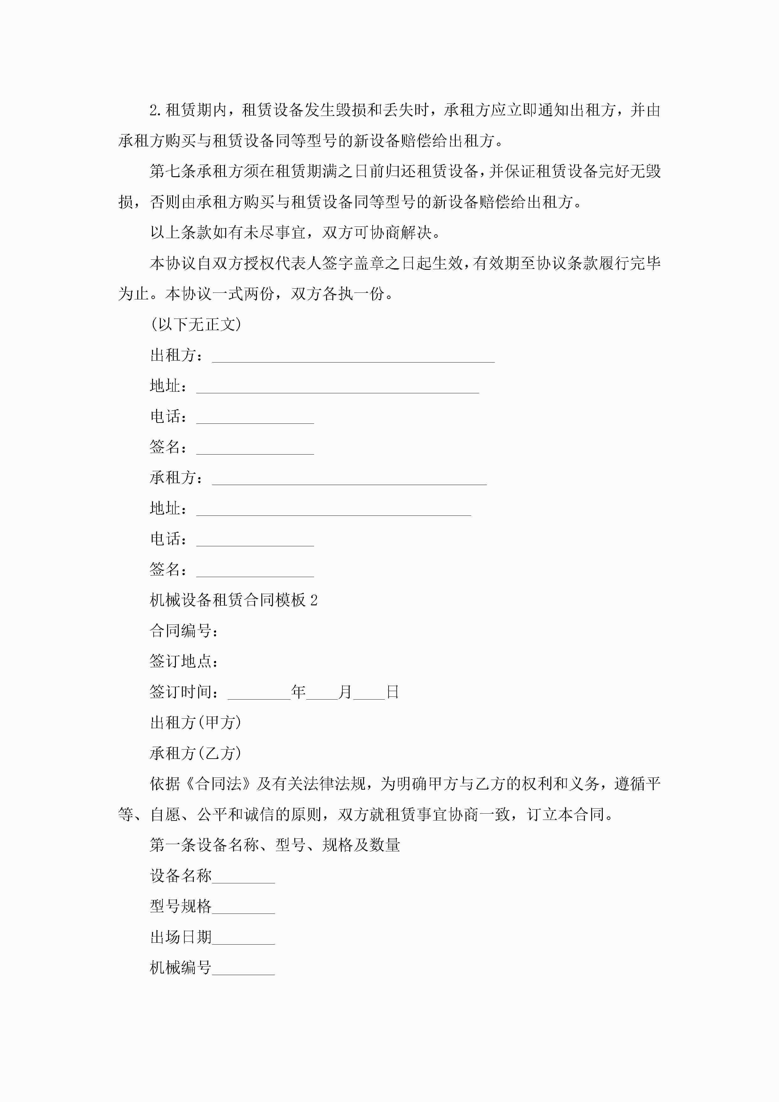 机械设备租赁合同模板5篇jugei3月23日 01:41发布关注268 机械设备租赁合同模板5篇此内容为付费资源,请付费后查看¥10.9 单篇文档限时特惠¥15个人会员开通企业会员开通立即下载无需登陆!可直接快捷下载单个模板付费资源© 版权声明THE ENDWord模板# 实用文档# 合同模板# 租赁合同# 机械设备租赁合同模板 如有问题,可点击最底部“联系我们”联系客服 分享QQ空间微博QQ好友海报分享复制链接收藏