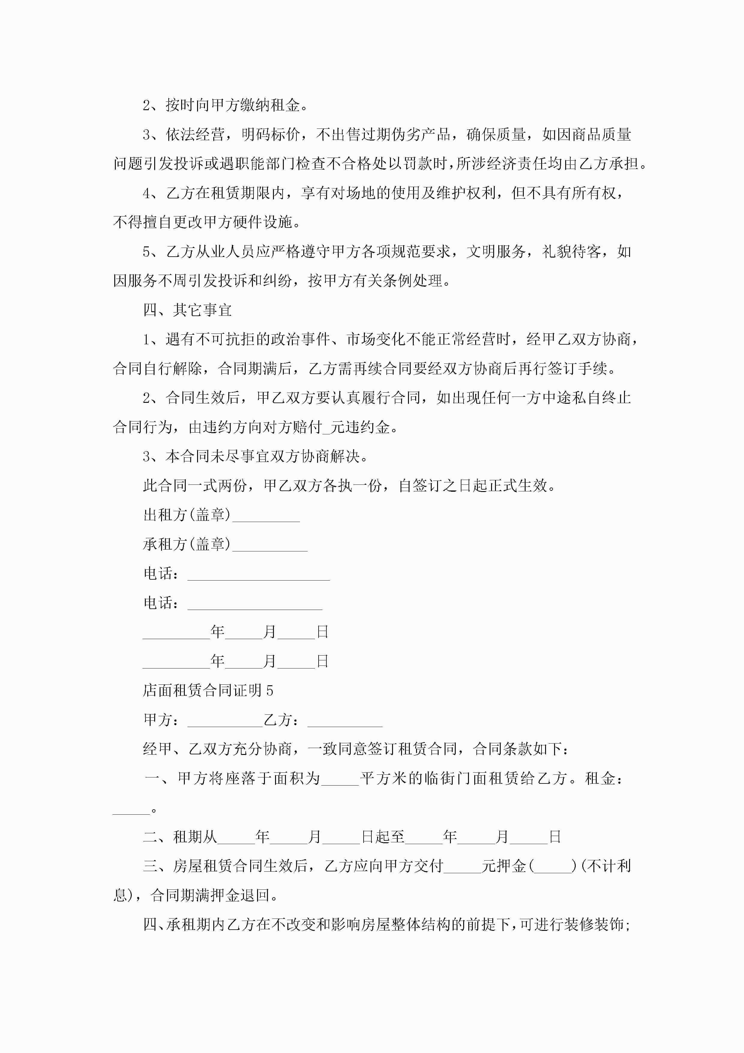 店面租赁合同证明5篇(精选)jugei3月23日 01:41发布关注184 店面租赁合同证明5篇(精选)此内容为付费资源,请付费后查看¥10.9 单篇文档限时特惠¥15个人会员开通企业会员开通立即下载无需登陆!可直接快捷下载单个模板付费资源© 版权声明THE ENDWord模板# 实用文档# 实用模板# 合同模板# 租赁合同 如有问题,可点击最底部“联系我们”联系客服 分享QQ空间微博QQ好友海报分享复制链接收藏