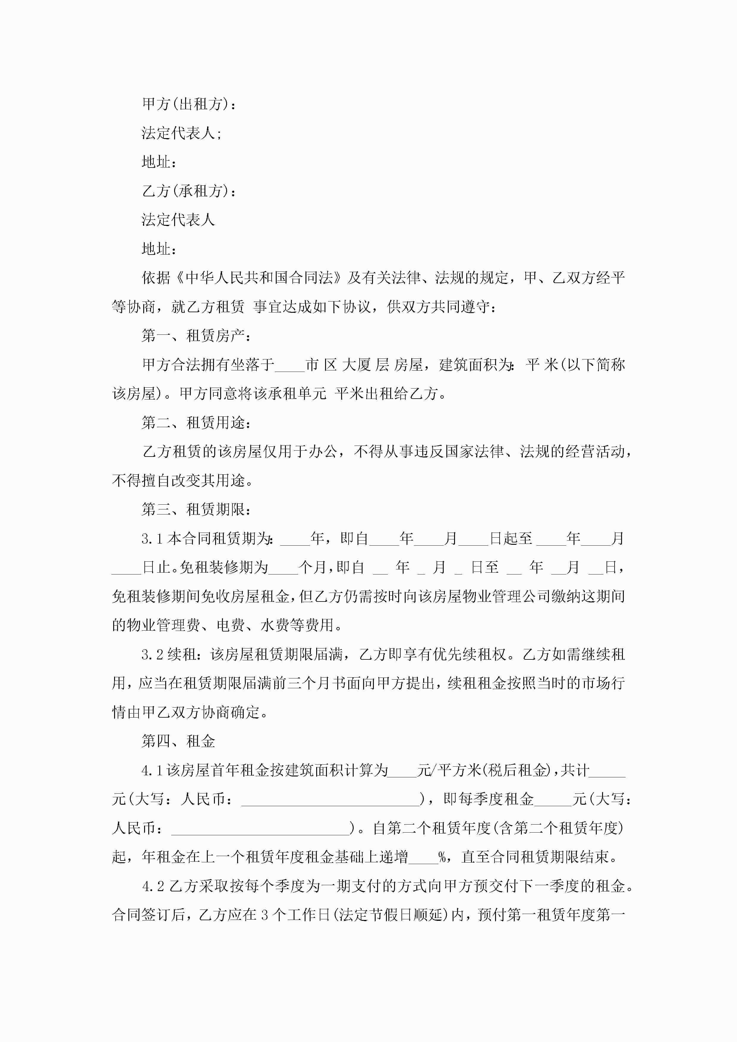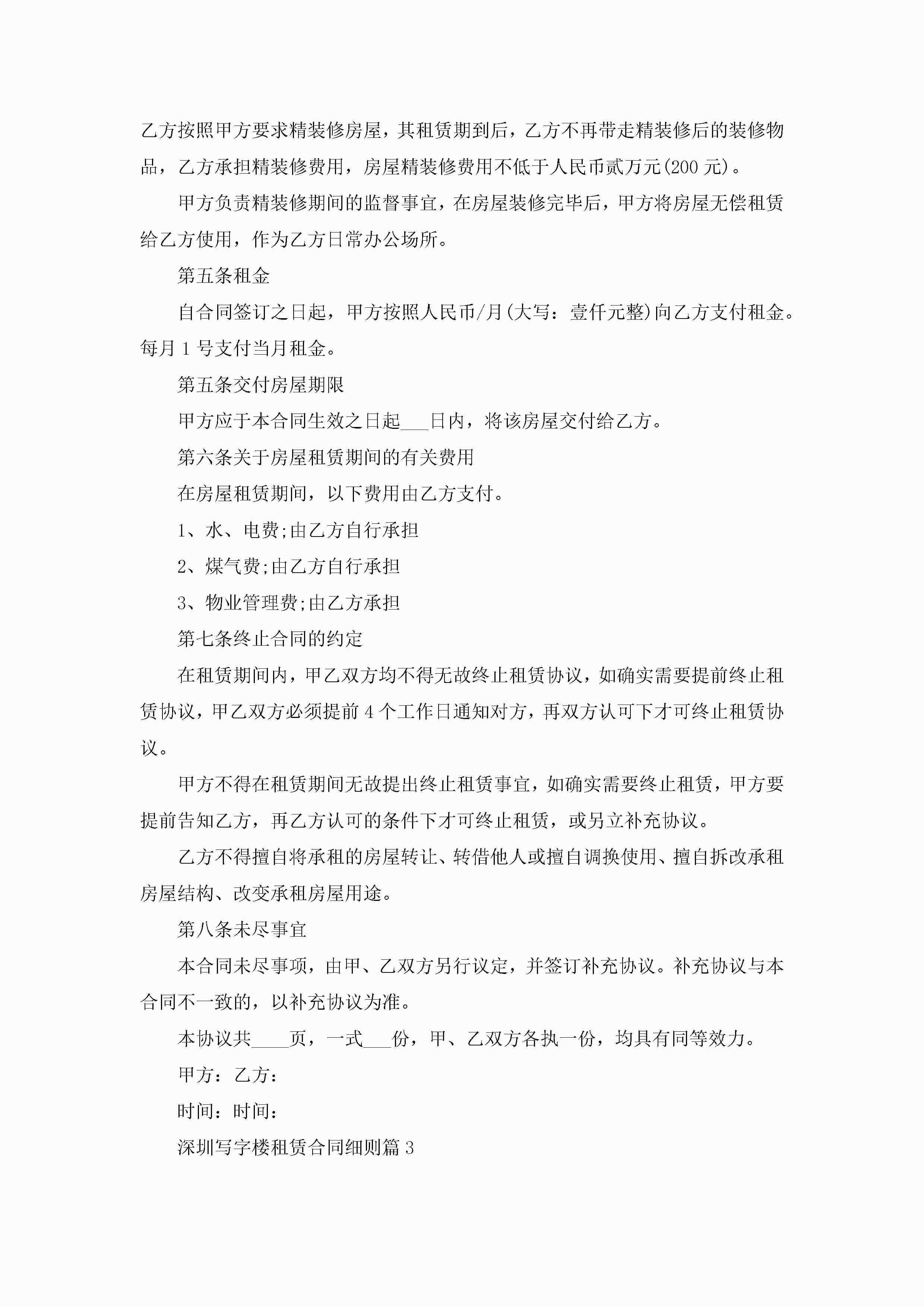深圳写字楼租赁合同细则5篇jugei3月23日 01:41发布关注187 深圳写字楼租赁合同细则5篇此内容为付费资源,请付费后查看¥10.9 单篇文档限时特惠¥15个人会员开通企业会员开通立即下载无需登陆!可直接快捷下载单个模板付费资源© 版权声明THE ENDWord模板# 实用文档# 合同模板# 租赁合同# 深圳写字楼租赁合同细则 如有问题,可点击最底部“联系我们”联系客服 分享QQ空间微博QQ好友海报分享复制链接收藏