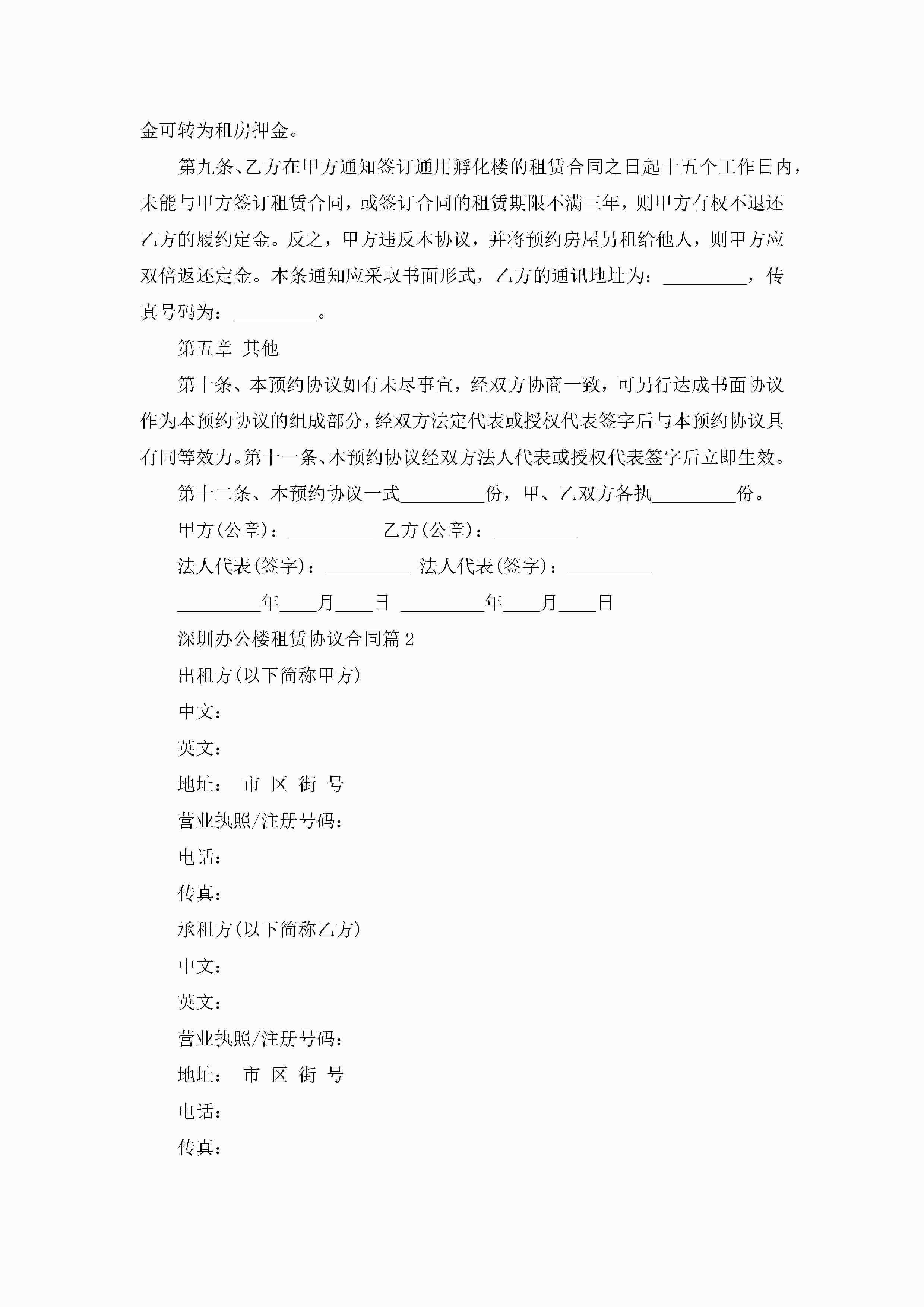 深圳办公楼租赁协议合同5篇jugei3月23日 01:41发布关注233 深圳办公楼租赁协议合同5篇此内容为付费资源,请付费后查看¥10.9 单篇文档限时特惠¥15个人会员开通企业会员开通立即下载无需登陆!可直接快捷下载单个模板付费资源© 版权声明THE ENDWord模板# 实用文档# 合同模板# 租赁合同# 深圳办公楼租赁协议合同 如有问题,可点击最底部“联系我们”联系客服 分享QQ空间微博QQ好友海报分享复制链接收藏