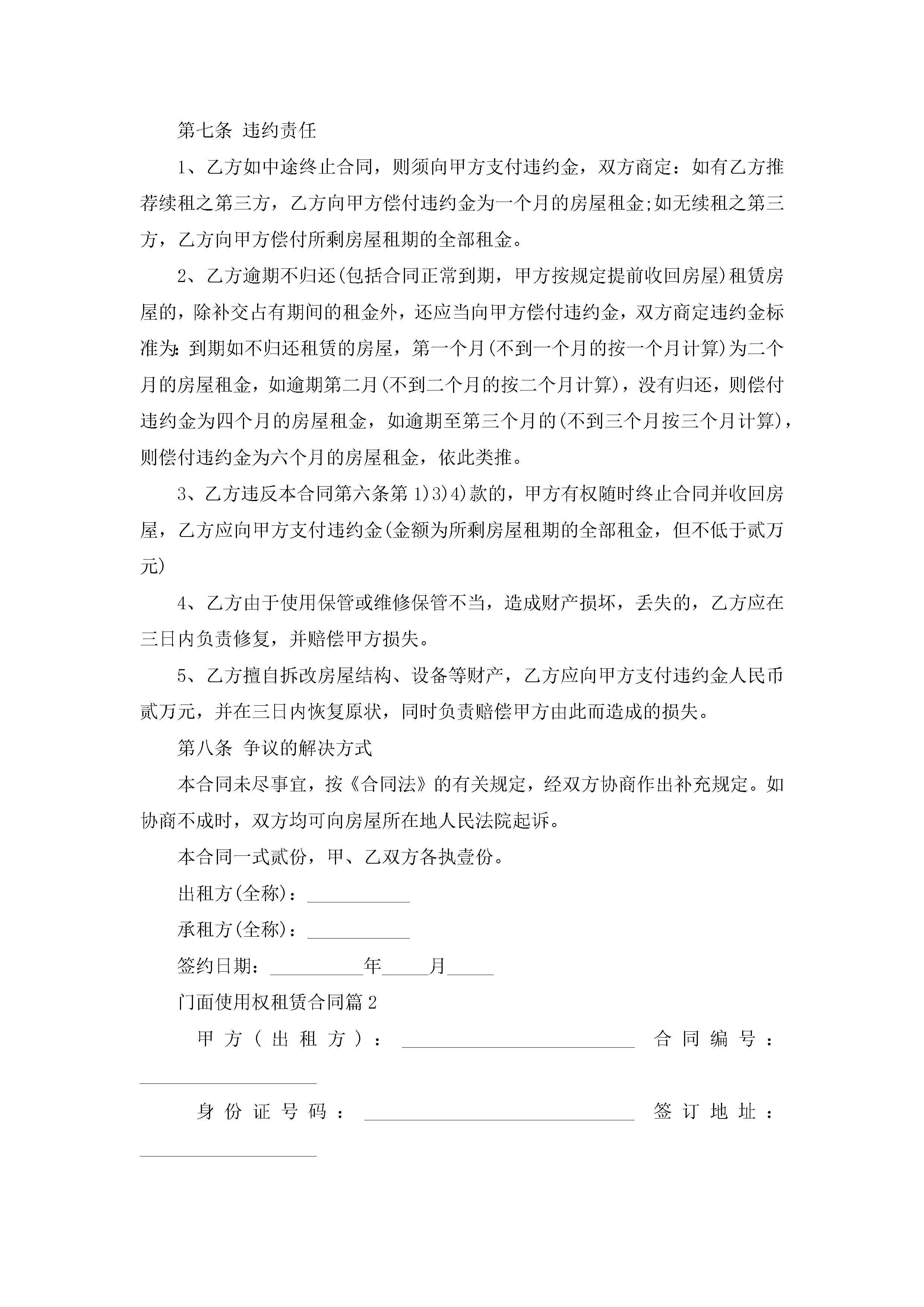 门面使用权租赁合同5篇jugei3月23日 01:41发布关注191 门面使用权租赁合同5篇此内容为付费资源,请付费后查看¥10.9 单篇文档限时特惠¥15个人会员开通企业会员开通立即下载无需登陆!可直接快捷下载单个模板付费资源© 版权声明THE ENDWord模板# 实用文档# 合同模板# 租赁合同# 门面使用权租赁合同 如有问题,可点击最底部“联系我们”联系客服 分享QQ空间微博QQ好友海报分享复制链接收藏