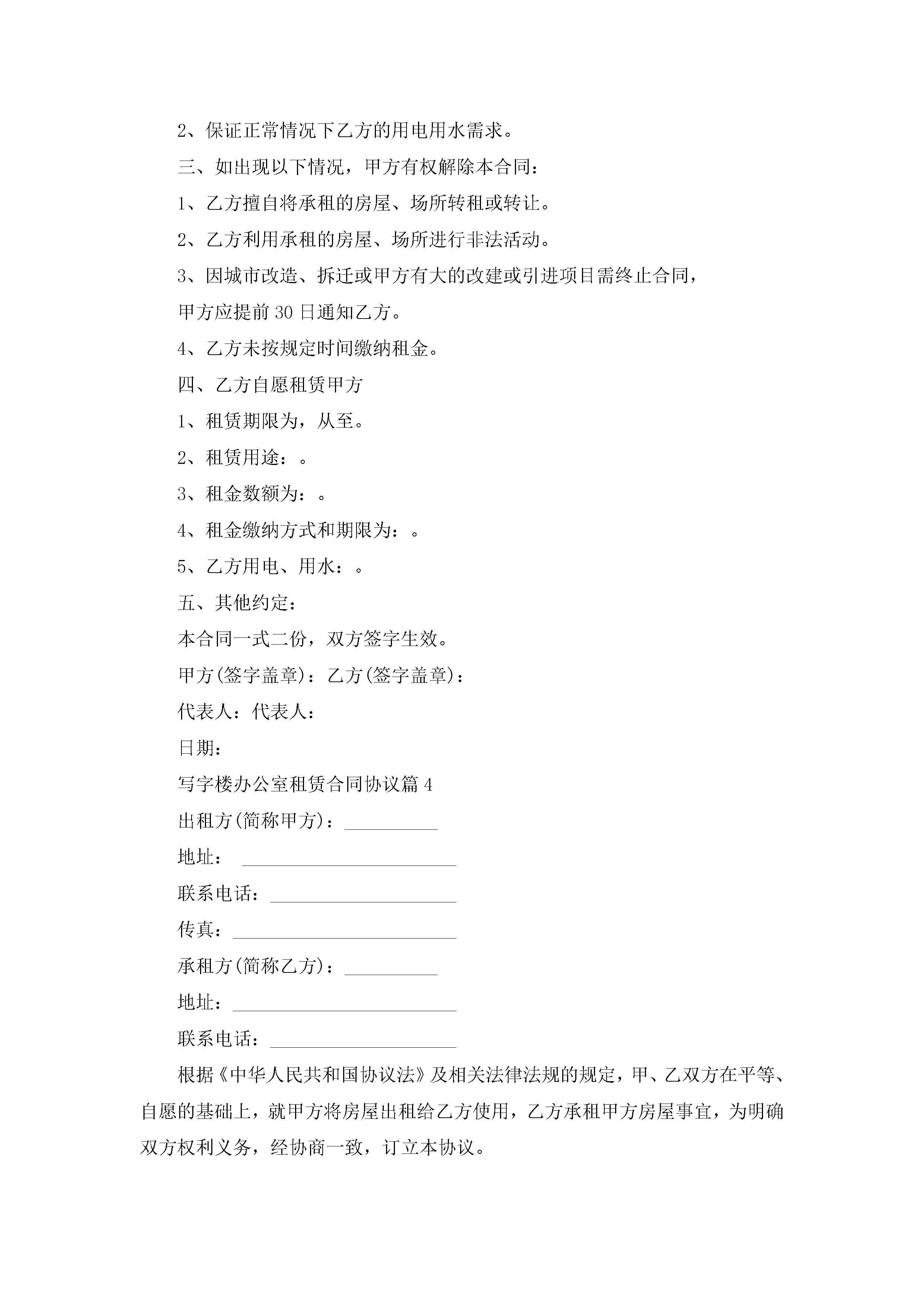 写字楼办公室租赁合同协议5篇jugei3月23日 01:41发布关注188 写字楼办公室租赁合同协议5篇此内容为付费资源,请付费后查看¥10.9 单篇文档限时特惠¥15个人会员开通企业会员开通立即下载无需登陆!可直接快捷下载单个模板付费资源© 版权声明THE ENDWord模板# 实用文档# 合同模板# 租赁合同# 写字楼办公室租赁合同协议 如有问题,可点击最底部“联系我们”联系客服 分享QQ空间微博QQ好友海报分享复制链接收藏
