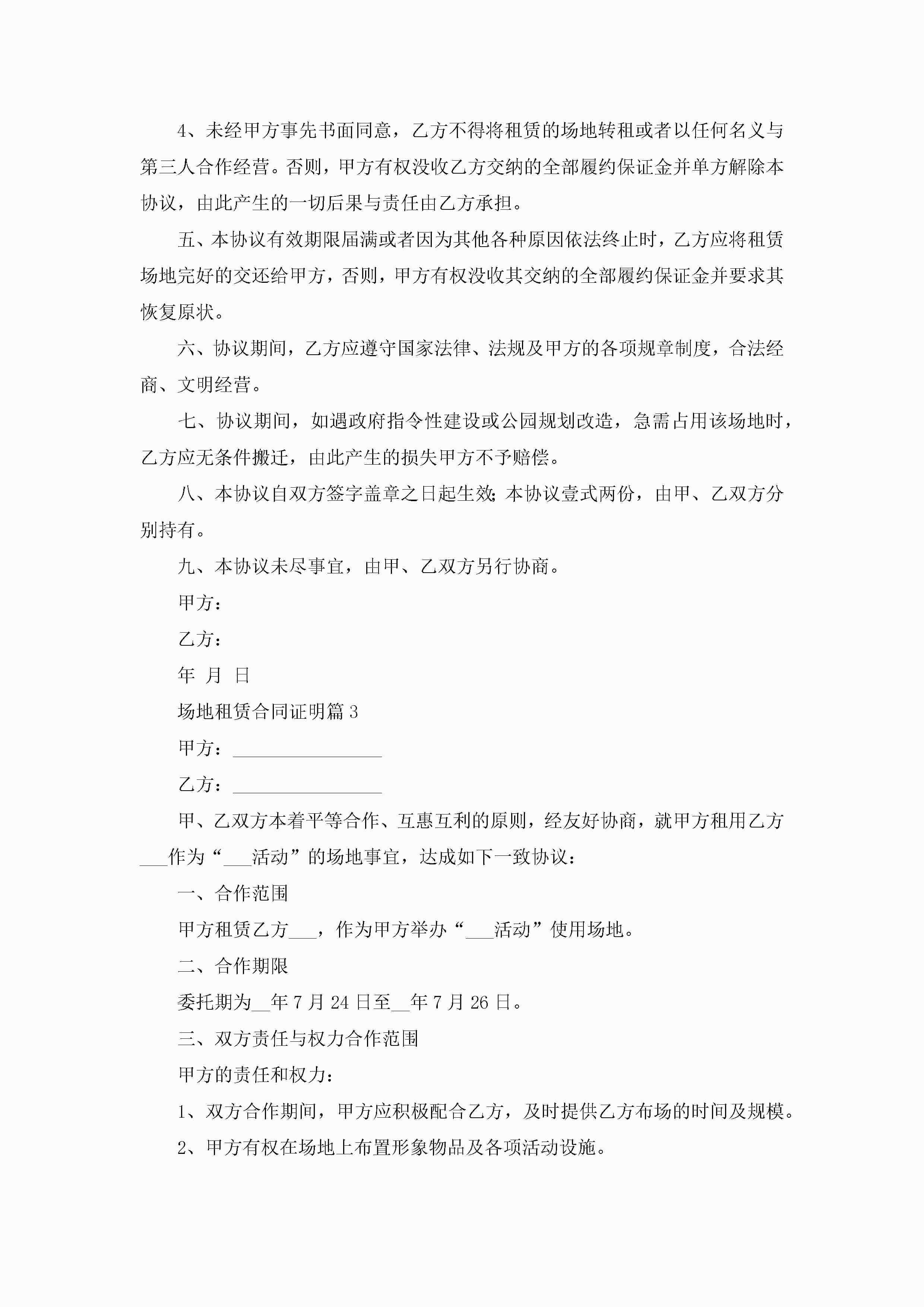 场地租赁合同证明5篇jugei3月23日 01:41发布关注188 场地租赁合同证明5篇此内容为付费资源,请付费后查看¥10.9 单篇文档限时特惠¥15个人会员开通企业会员开通立即下载无需登陆!可直接快捷下载单个模板付费资源© 版权声明THE ENDWord模板# 实用文档# 实用模板# 合同模板# 租赁合同 如有问题,可点击最底部“联系我们”联系客服 分享QQ空间微博QQ好友海报分享复制链接收藏