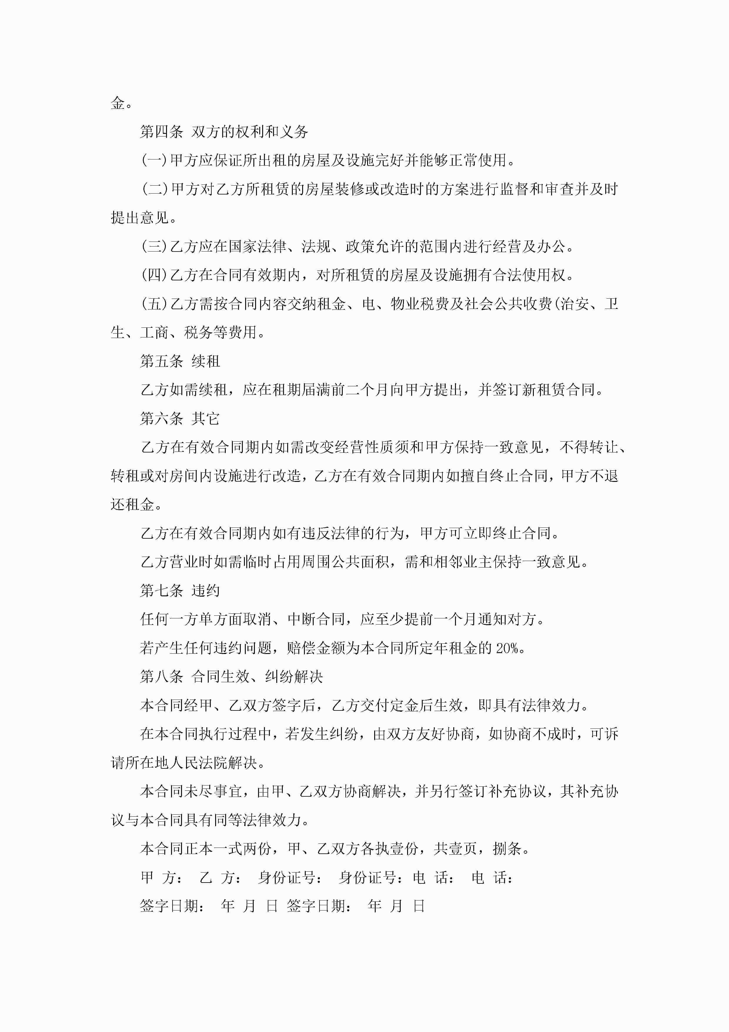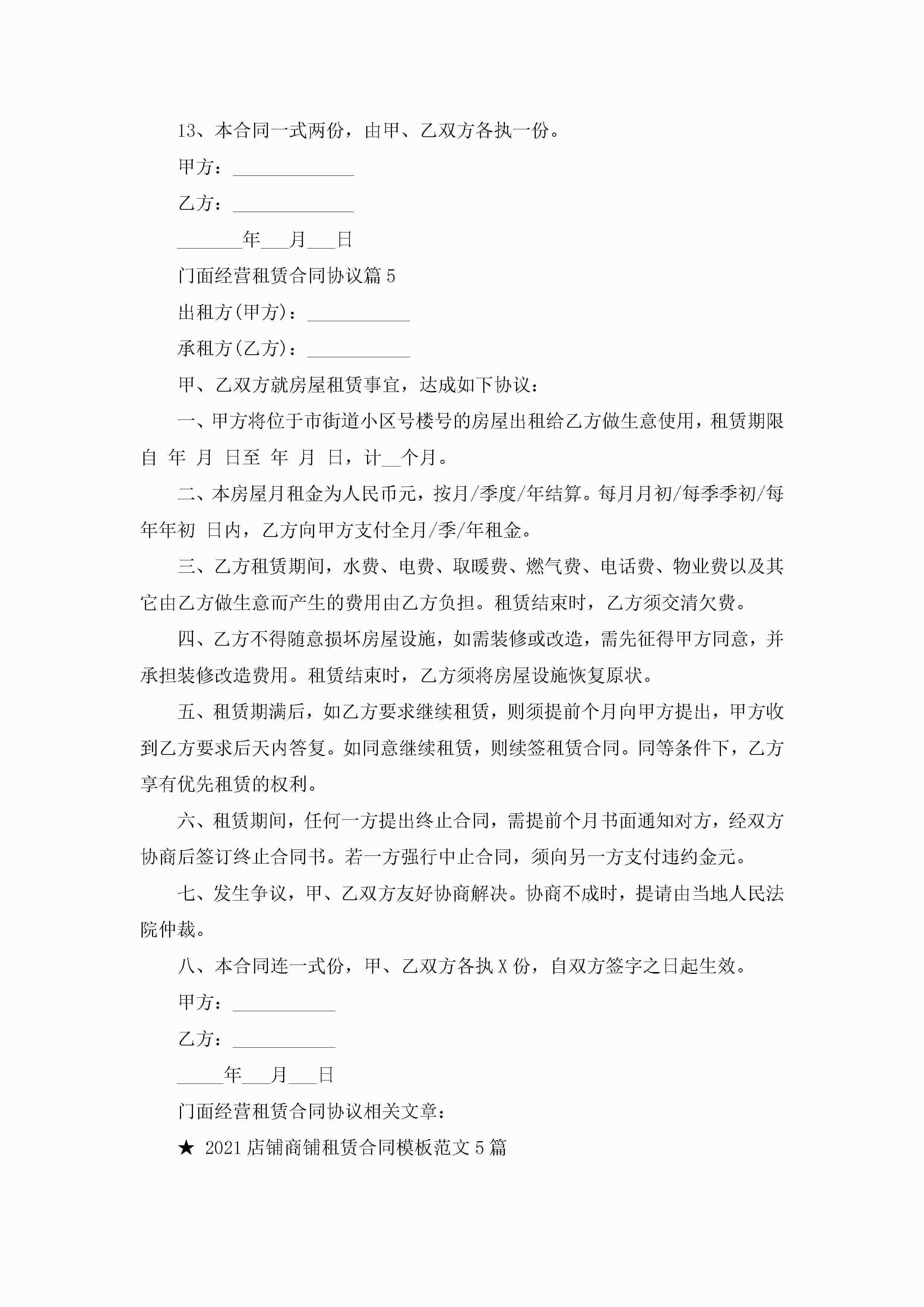 门面经营租赁合同协议5篇jugei3月23日 01:41发布关注280 门面经营租赁合同协议5篇此内容为付费资源,请付费后查看¥10.9 单篇文档限时特惠¥15个人会员开通企业会员开通立即下载无需登陆!可直接快捷下载单个模板付费资源© 版权声明THE ENDWord模板# 实用文档# 合同模板# 租赁合同# 门面经营租赁合同协议 如有问题,可点击最底部“联系我们”联系客服 分享QQ空间微博QQ好友海报分享复制链接收藏