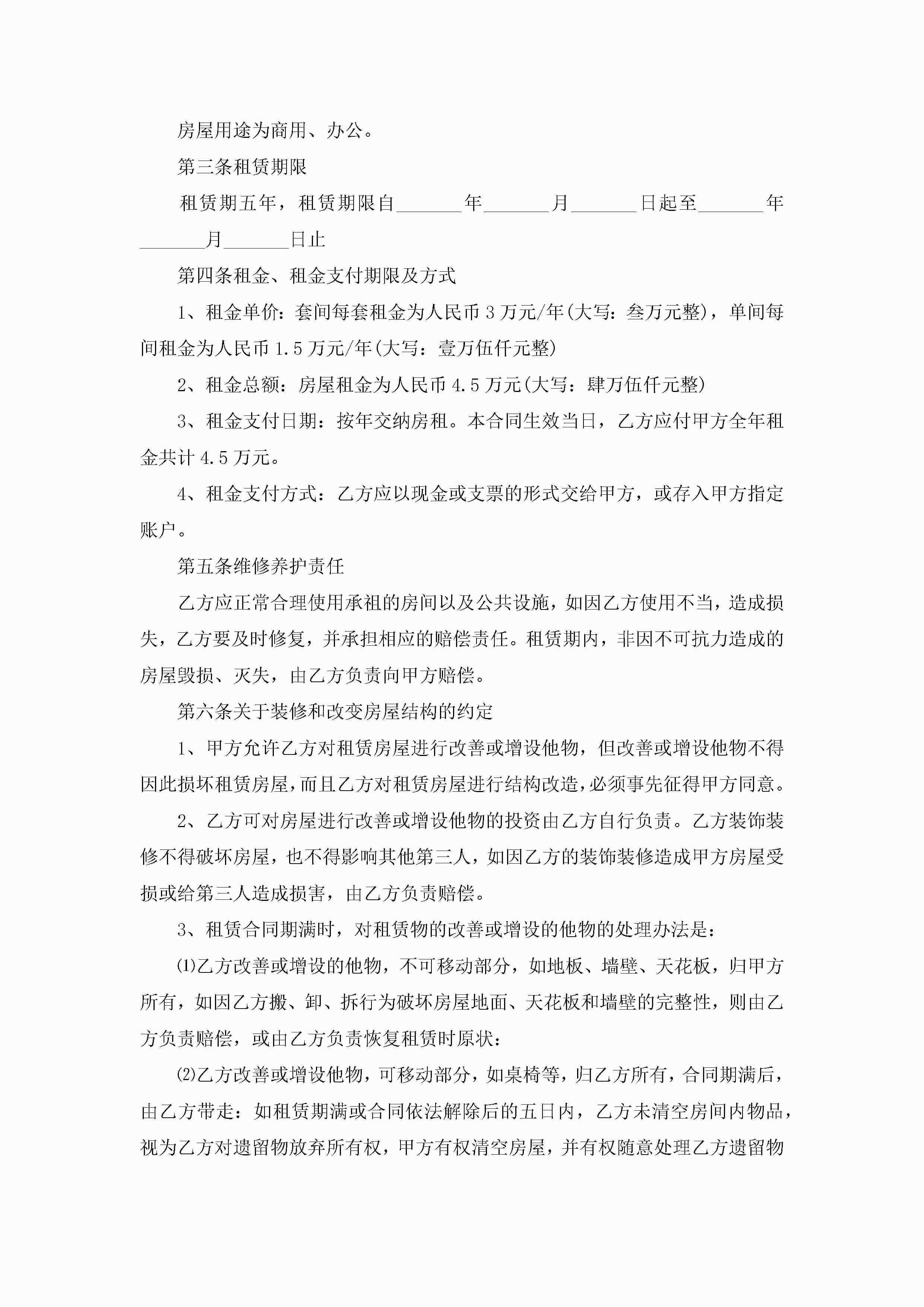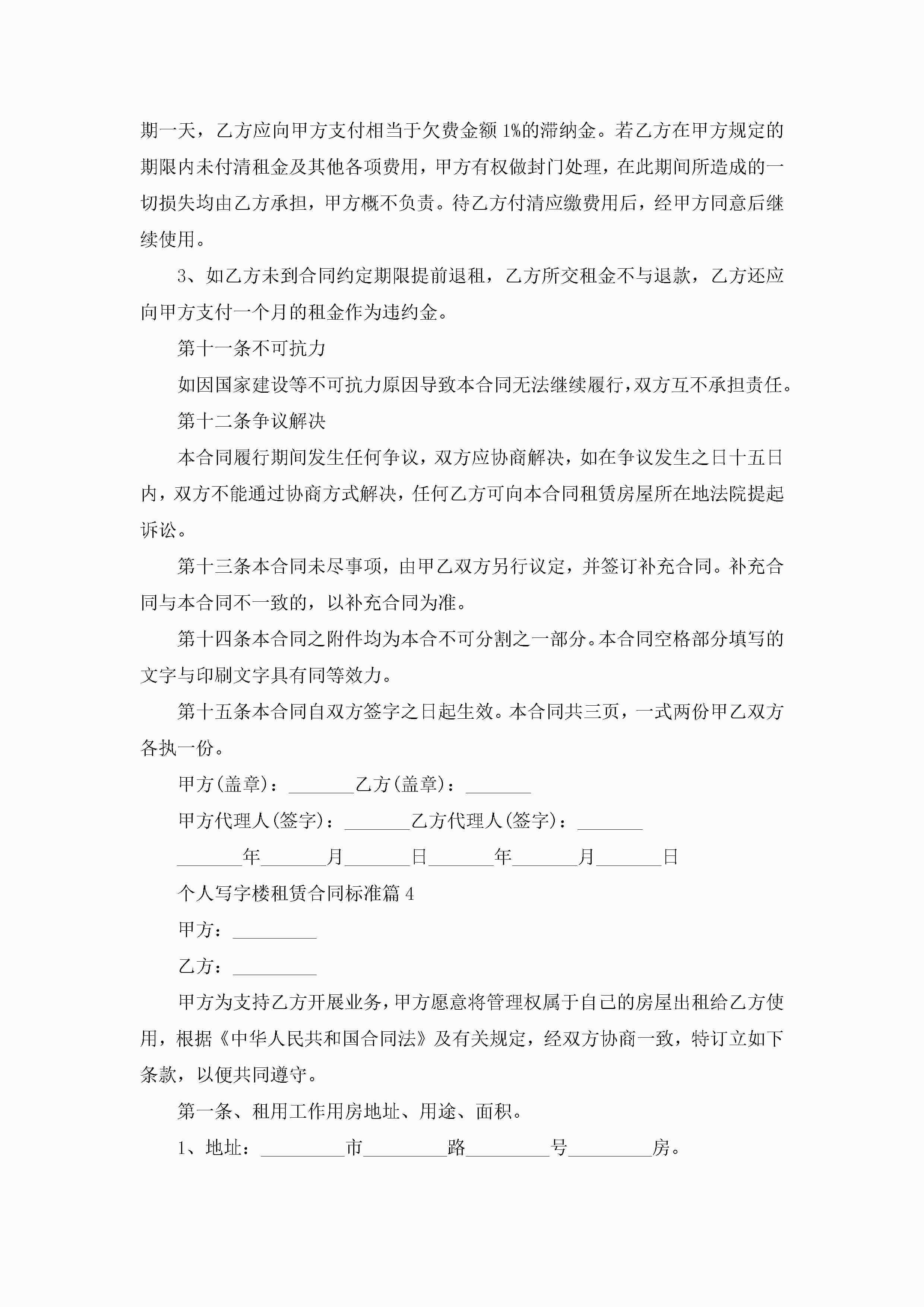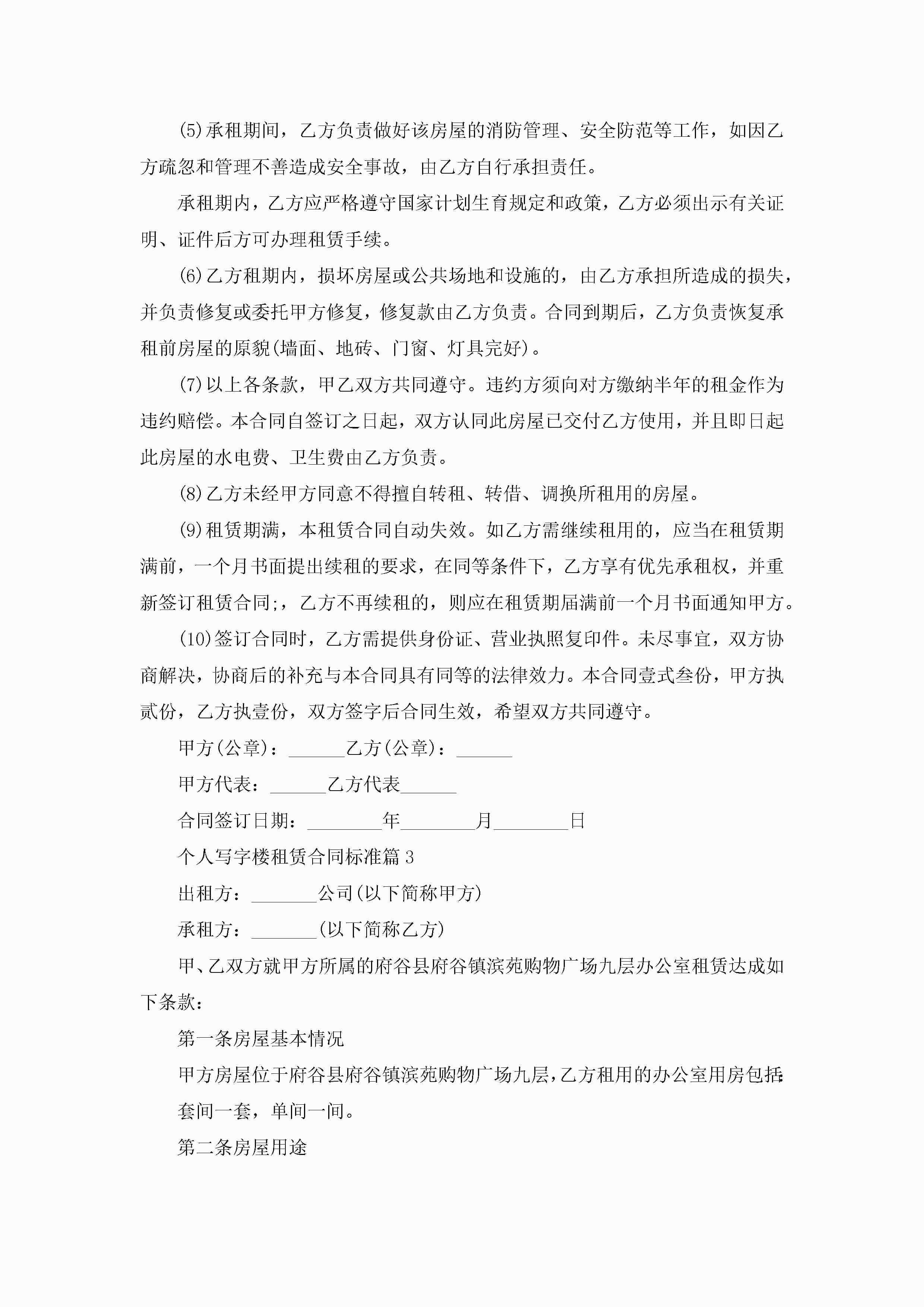 个人写字楼租赁合同标准5篇jugei3月23日 01:41发布关注395 个人写字楼租赁合同标准5篇此内容为付费资源,请付费后查看¥10.9 单篇文档限时特惠¥15个人会员开通企业会员开通立即下载无需登陆!可直接快捷下载单个模板付费资源© 版权声明THE ENDWord模板# 实用文档# 合同模板# 租赁合同# 个人写字楼租赁合同标准 如有问题,可点击最底部“联系我们”联系客服 分享QQ空间微博QQ好友海报分享复制链接收藏
