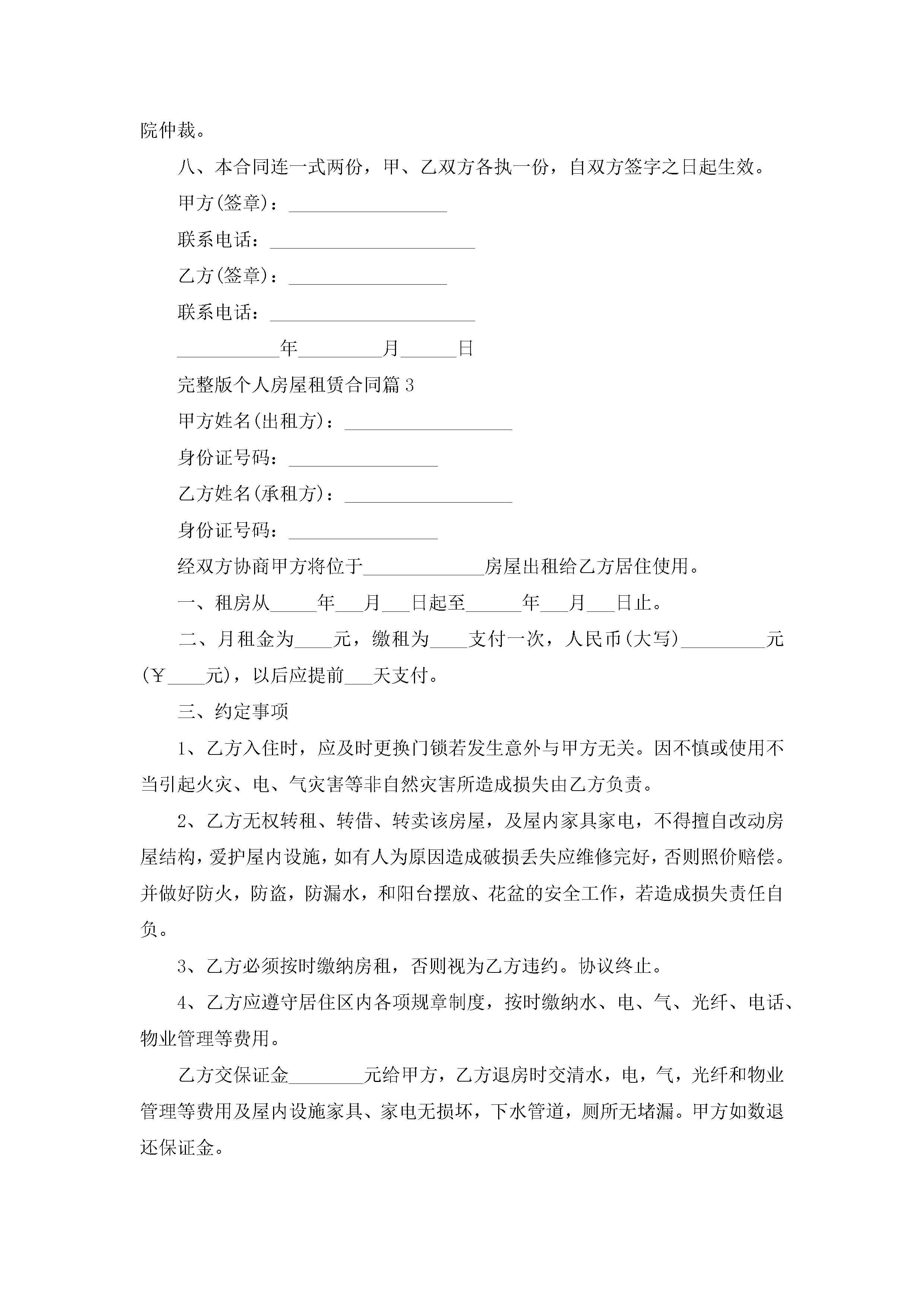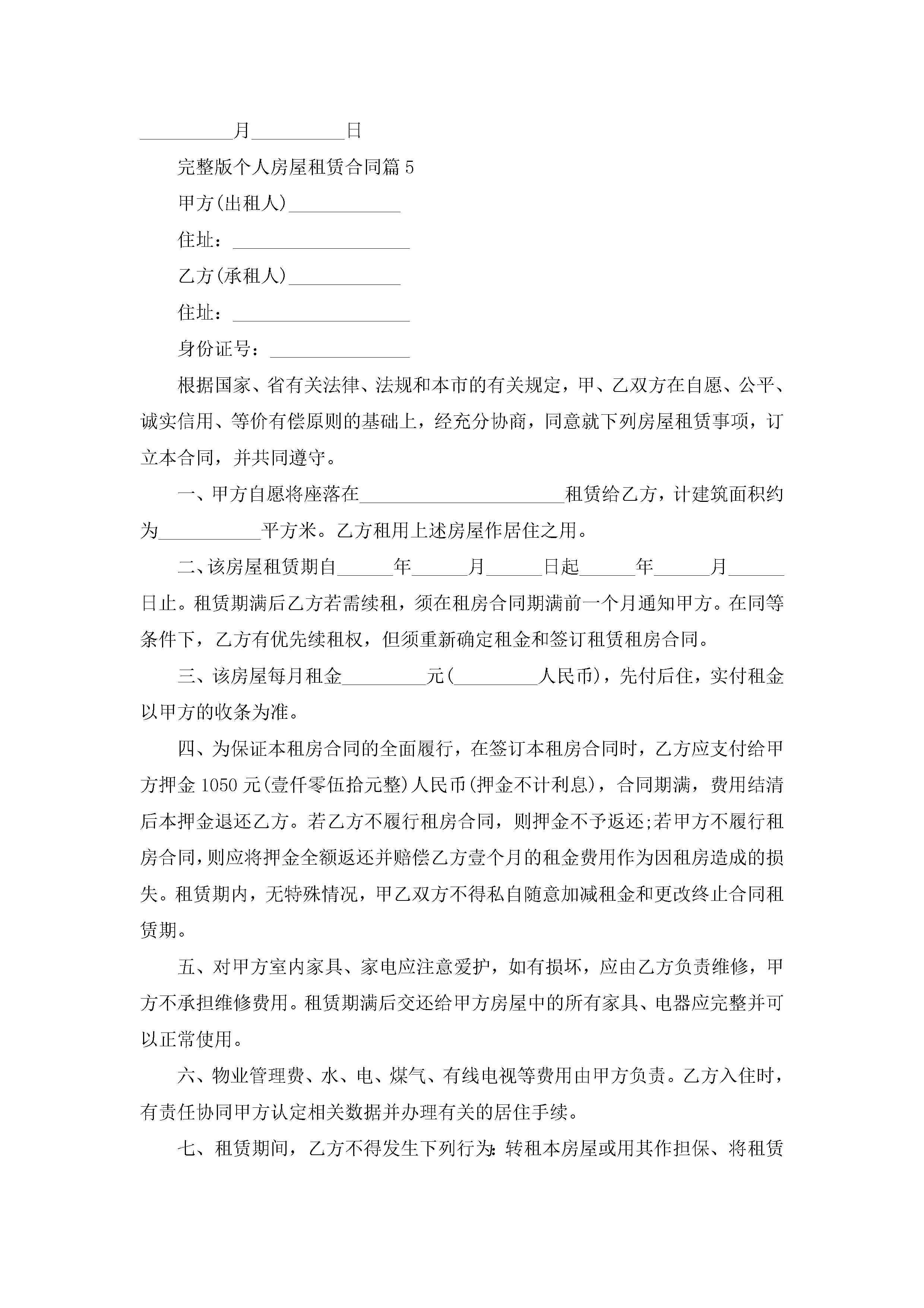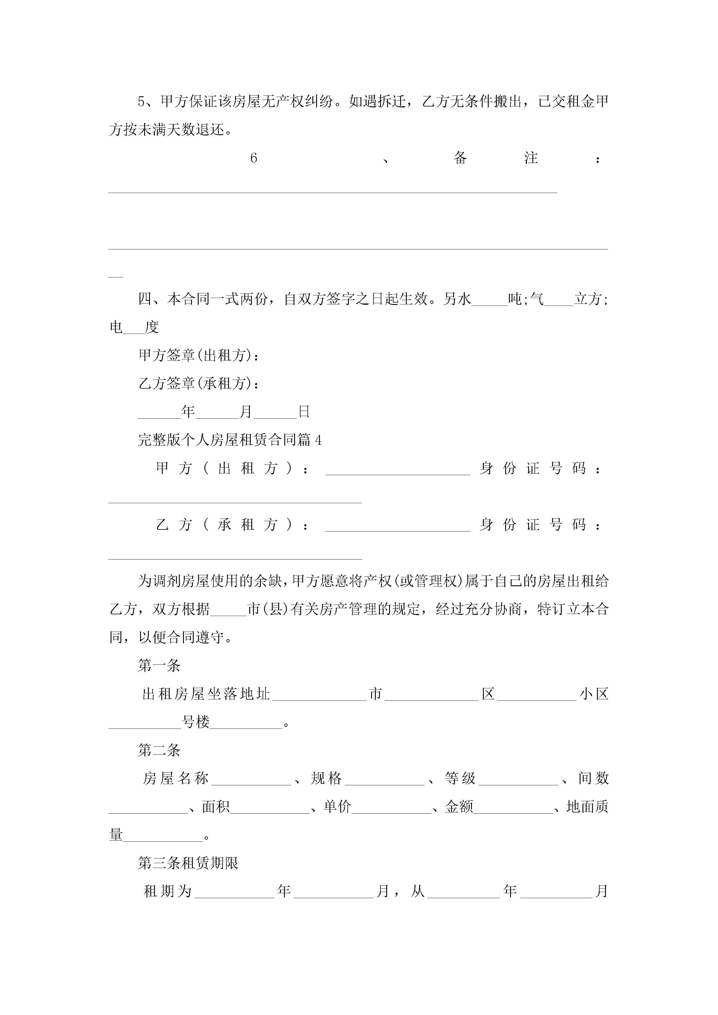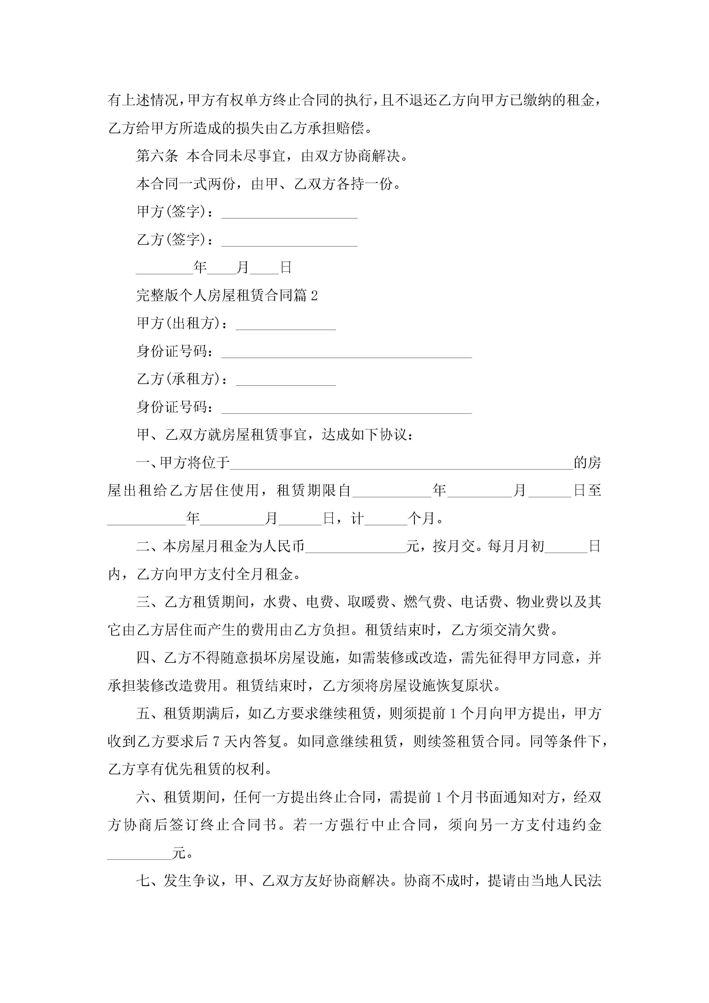 关于完整版个人房屋租赁合同8篇jugei3月23日 01:41发布关注244 关于完整版个人房屋租赁合同8篇此内容为付费资源,请付费后查看¥10.9 单篇文档限时特惠¥15个人会员开通企业会员开通立即下载无需登陆!可直接快捷下载单个模板付费资源© 版权声明THE ENDWord模板# 实用文档# 合同模板# 租赁合同# 完整版个人房屋租赁合同8篇 如有问题,可点击最底部“联系我们”联系客服 分享QQ空间微博QQ好友海报分享复制链接收藏