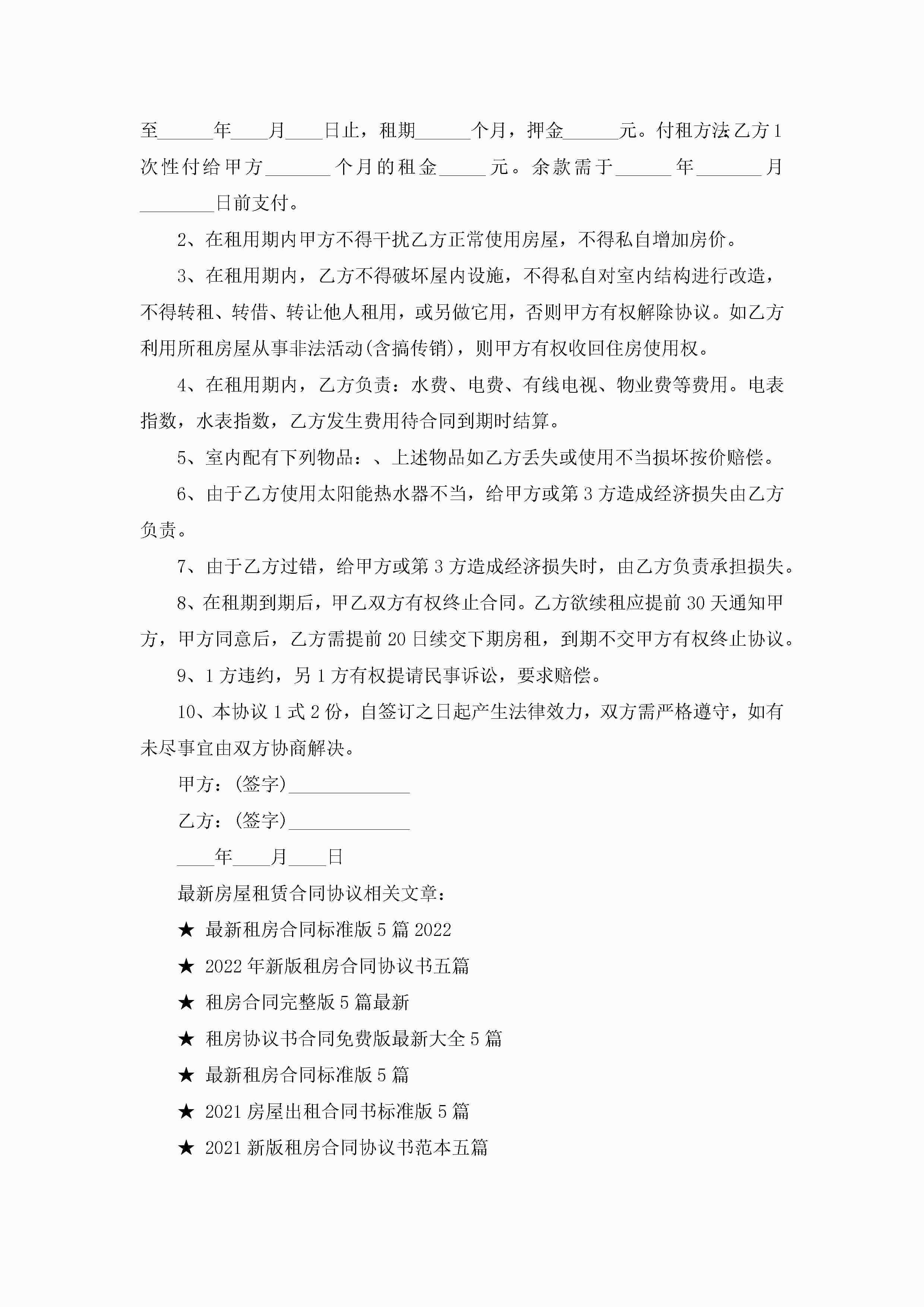 最新房屋租赁合同协议5篇jugei3月23日 01:41发布关注189 最新房屋租赁合同协议5篇此内容为付费资源,请付费后查看¥10.9 单篇文档限时特惠¥15个人会员开通企业会员开通立即下载无需登陆!可直接快捷下载单个模板付费资源© 版权声明THE ENDWord模板# 实用文档# 合同模板# 租赁合同# 最新房屋租赁合同协议 如有问题,可点击最底部“联系我们”联系客服 分享QQ空间微博QQ好友海报分享复制链接收藏