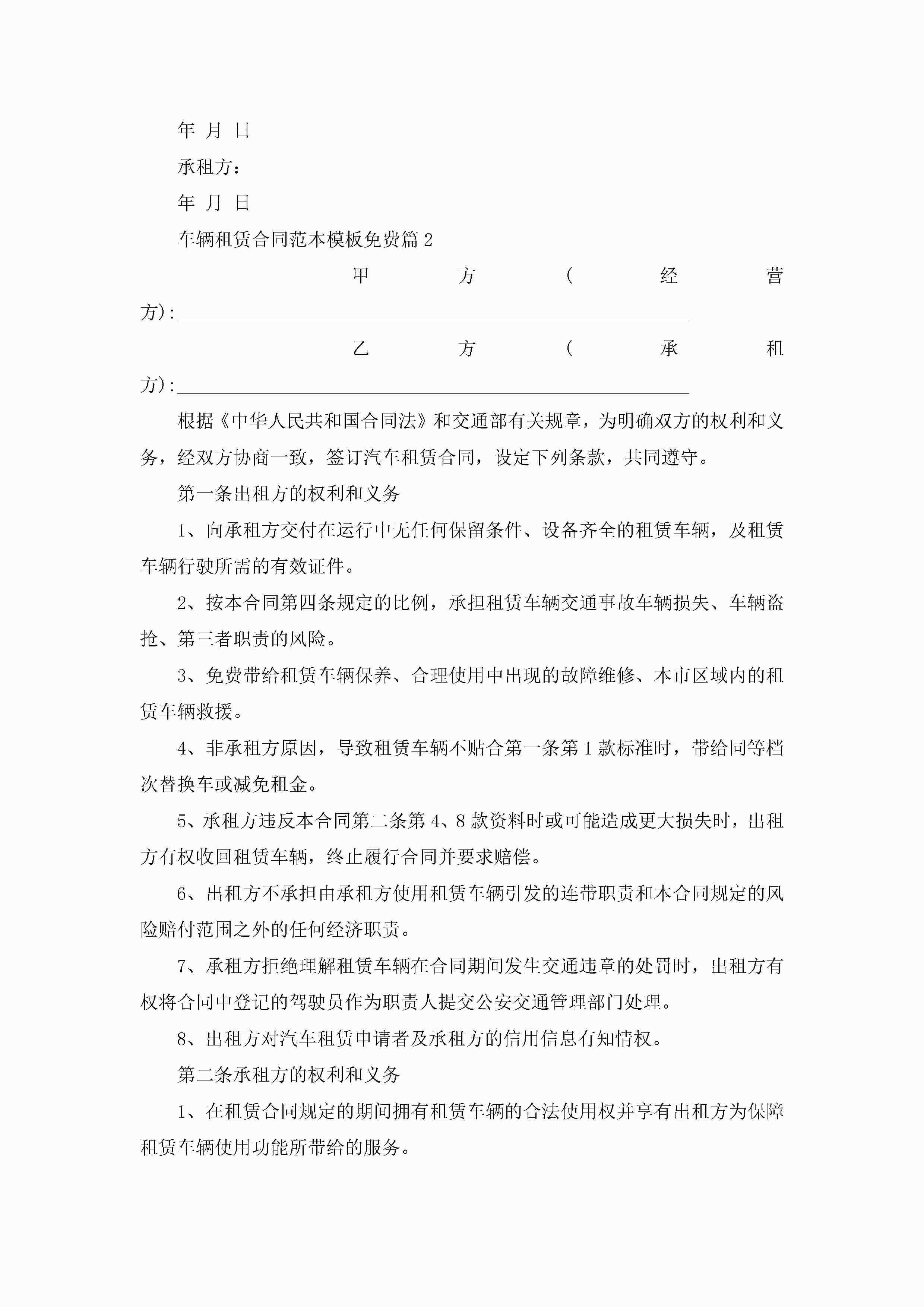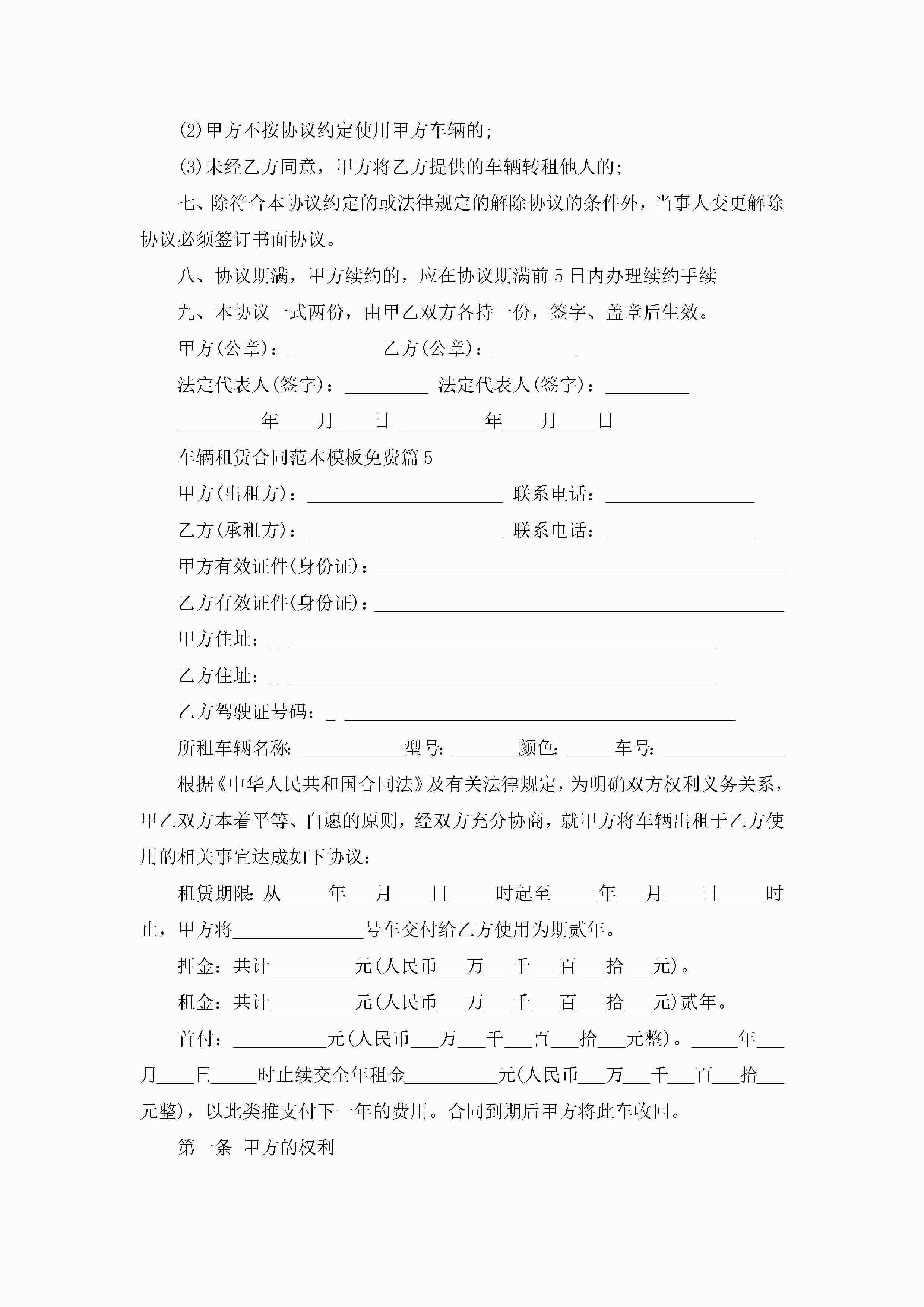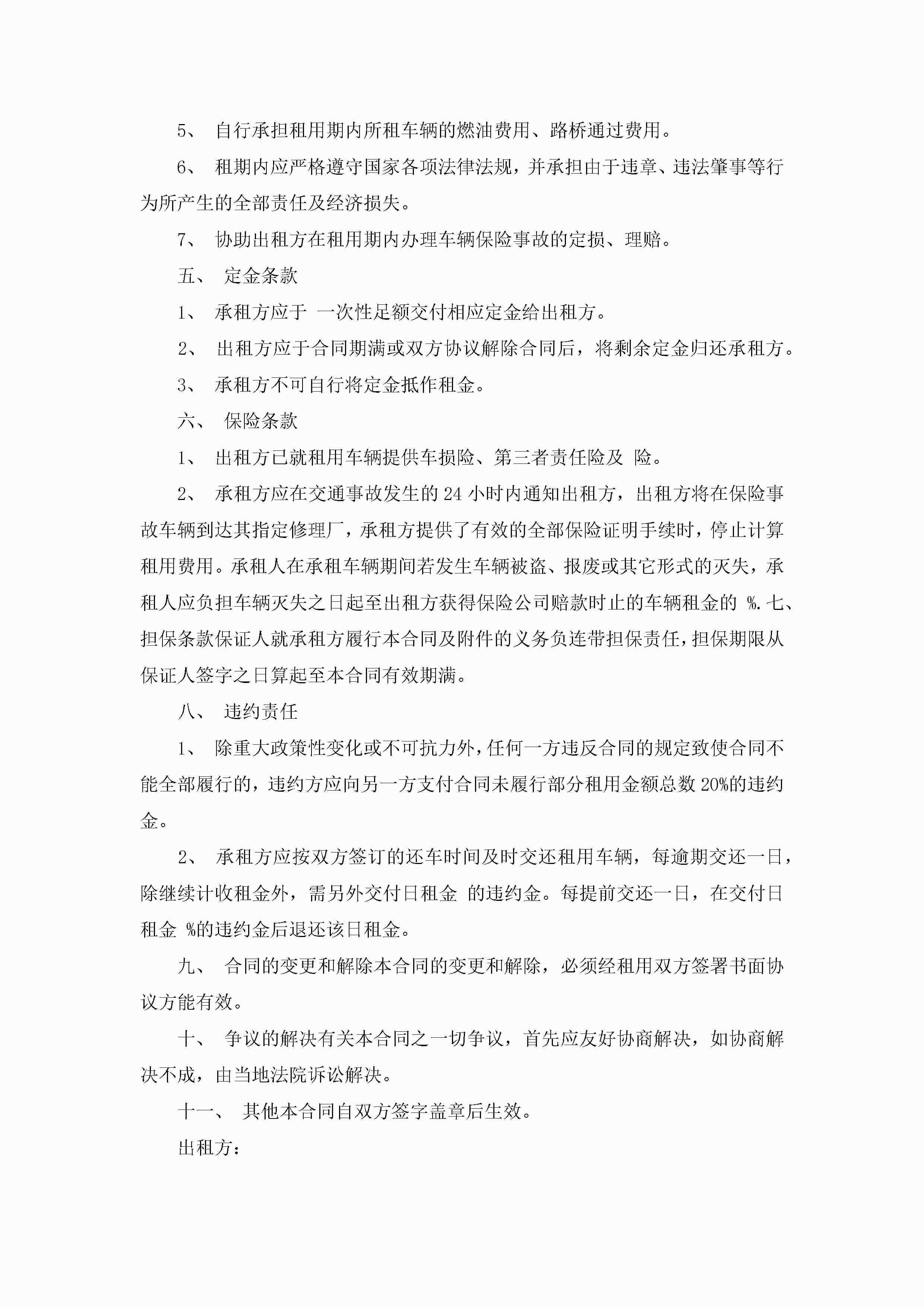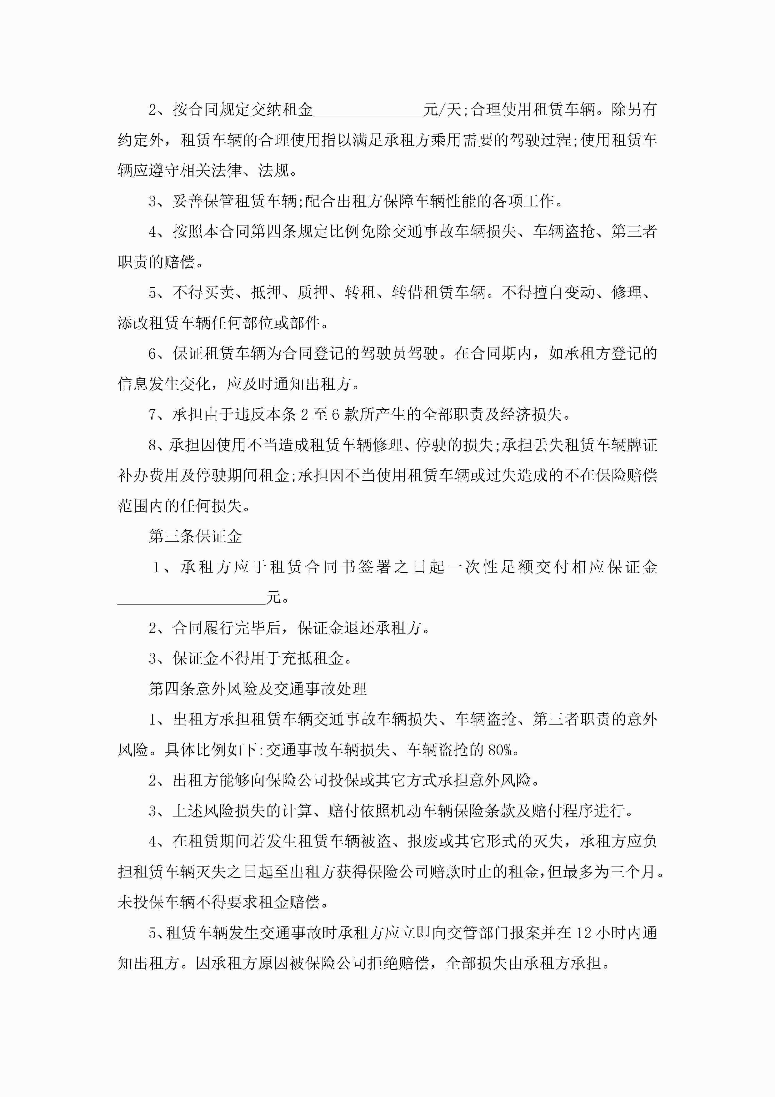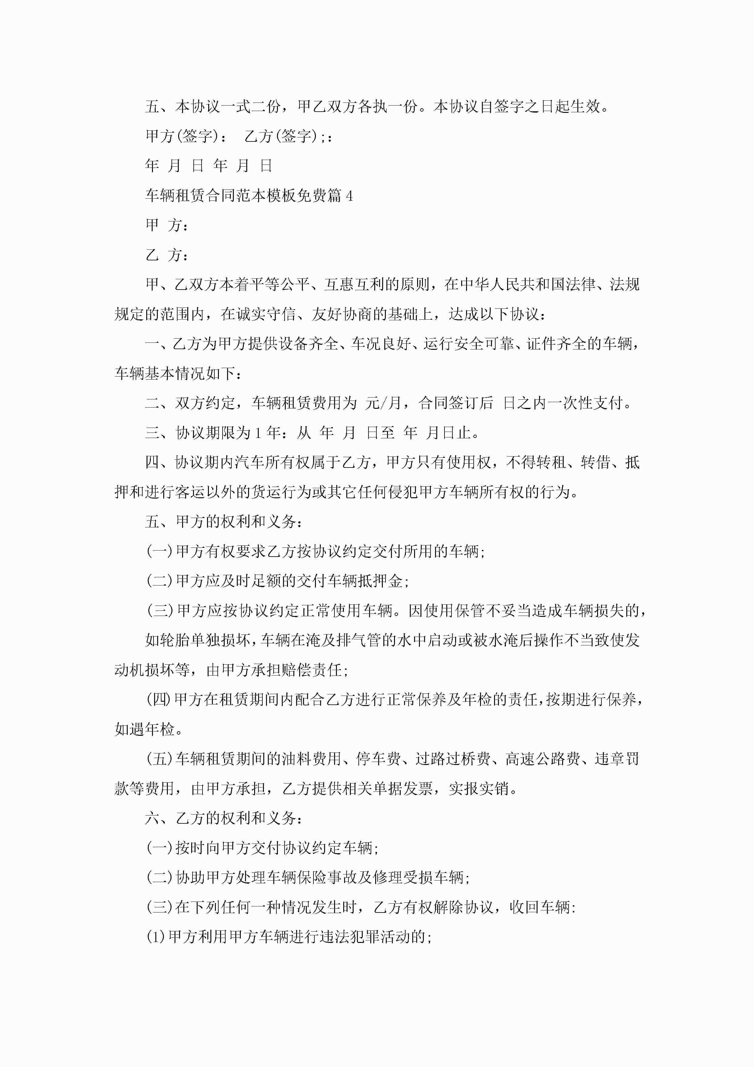 车辆租赁合同范本模板免费10篇2022年jugei3月23日 01:41发布关注192 车辆租赁合同范本模板免费10篇2022年此内容为付费资源,请付费后查看¥10.9 单篇文档限时特惠¥15个人会员开通企业会员开通立即下载无需登陆!可直接快捷下载单个模板付费资源© 版权声明THE ENDWord模板# 实用文档# 实用模板# 合同模板# 租赁合同 如有问题,可点击最底部“联系我们”联系客服 分享QQ空间微博QQ好友海报分享复制链接收藏