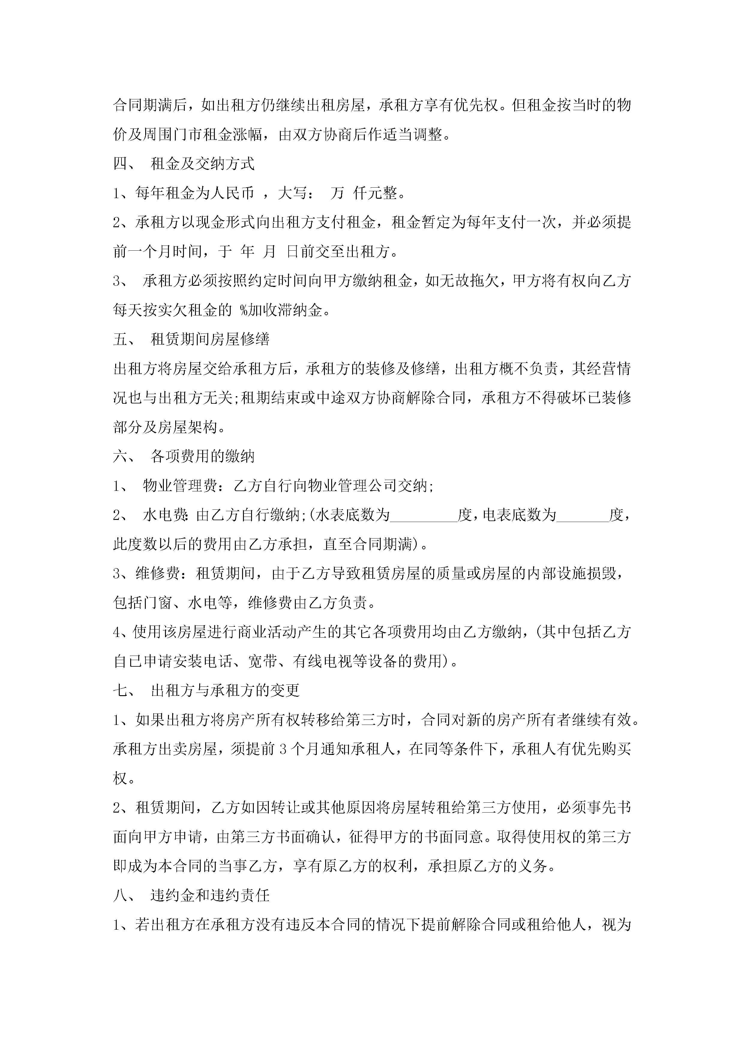 店铺租赁合同2022年最新版协议十篇精选jugei3月23日 01:41发布关注184 店铺租赁合同2022年最新版协议十篇精选此内容为付费资源,请付费后查看¥10.9 单篇文档限时特惠¥15个人会员开通企业会员开通立即下载无需登陆!可直接快捷下载单个模板付费资源© 版权声明THE ENDWord模板# 实用文档# 实用模板# 合同模板# 租赁合同 如有问题,可点击最底部“联系我们”联系客服 分享QQ空间微博QQ好友海报分享复制链接收藏