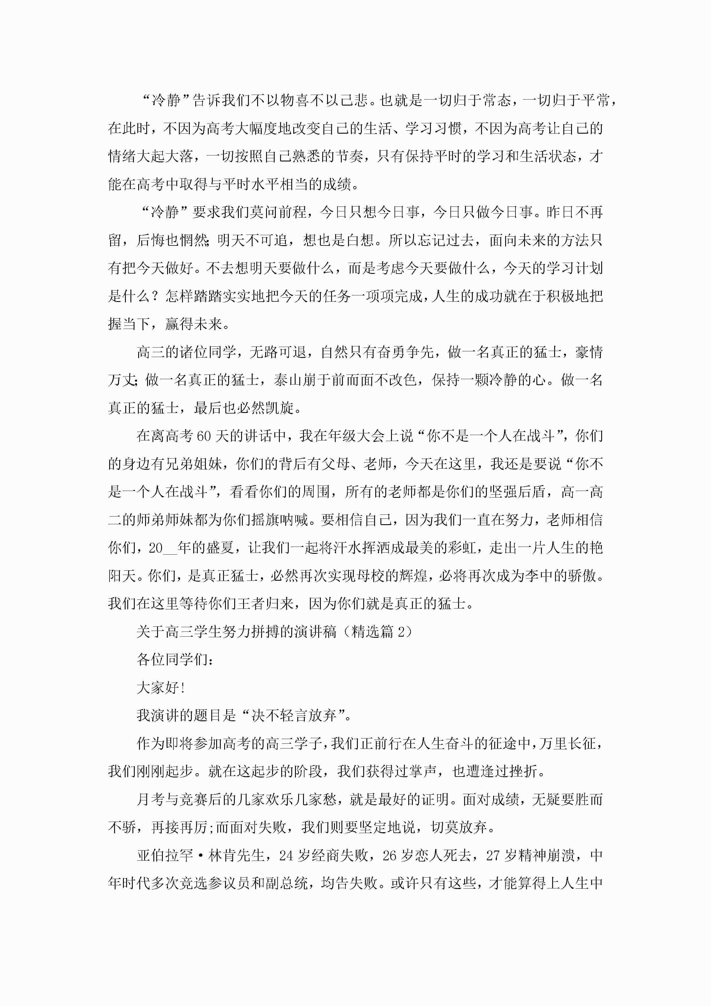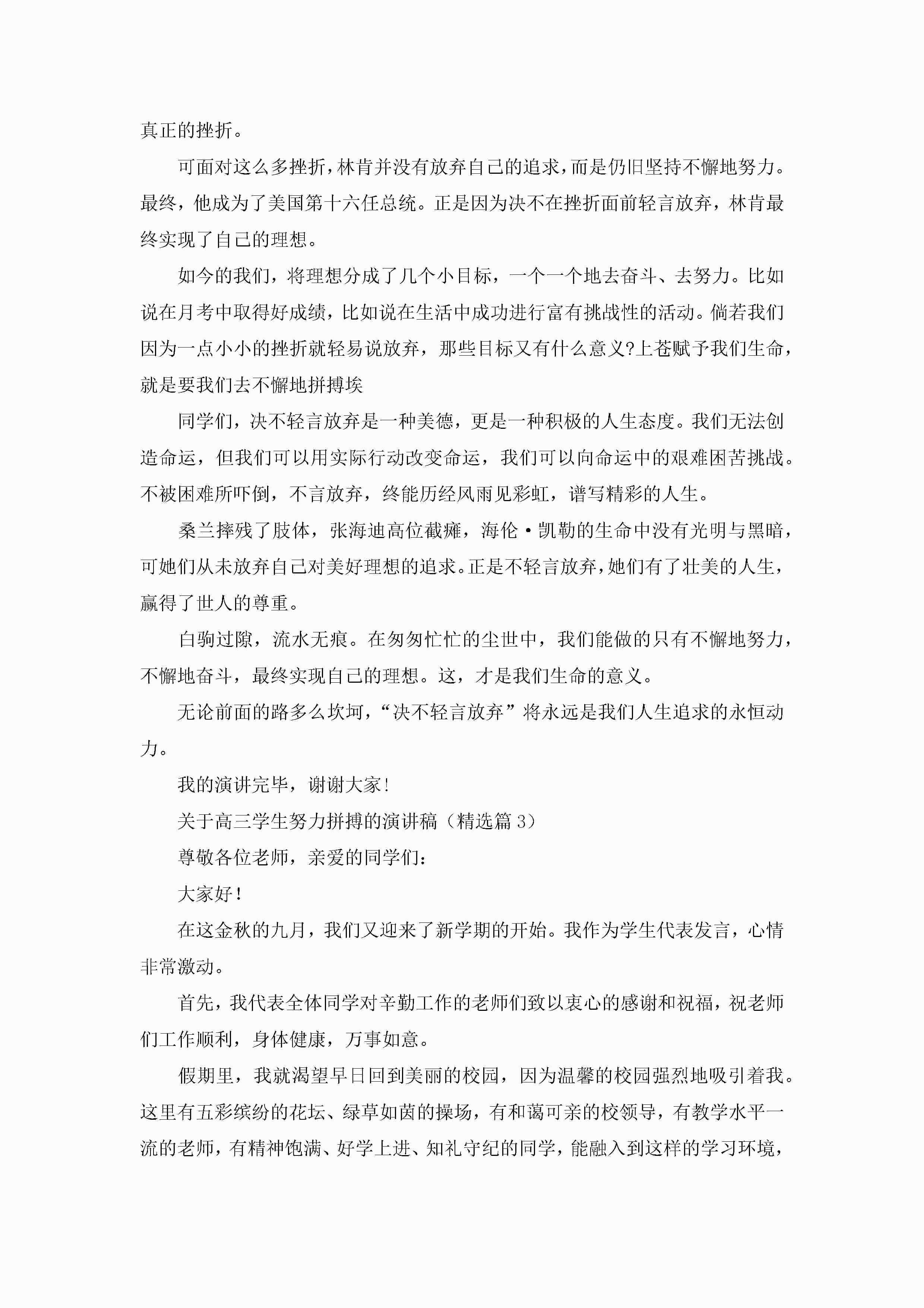 2023关于高三学生努力拼搏的演讲稿jugei3月23日 01:41发布关注199 2023关于高三学生努力拼搏的演讲稿此内容为付费资源,请付费后查看¥10.9 单篇文档限时特惠¥15个人会员开通企业会员开通立即下载无需登陆!可直接快捷下载单个模板付费资源© 版权声明THE ENDWord模板# 实用文档# 演讲稿# 经典演讲稿# 关于高三学生努力拼搏的演讲稿 如有问题,可点击最底部“联系我们”联系客服 分享QQ空间微博QQ好友海报分享复制链接收藏