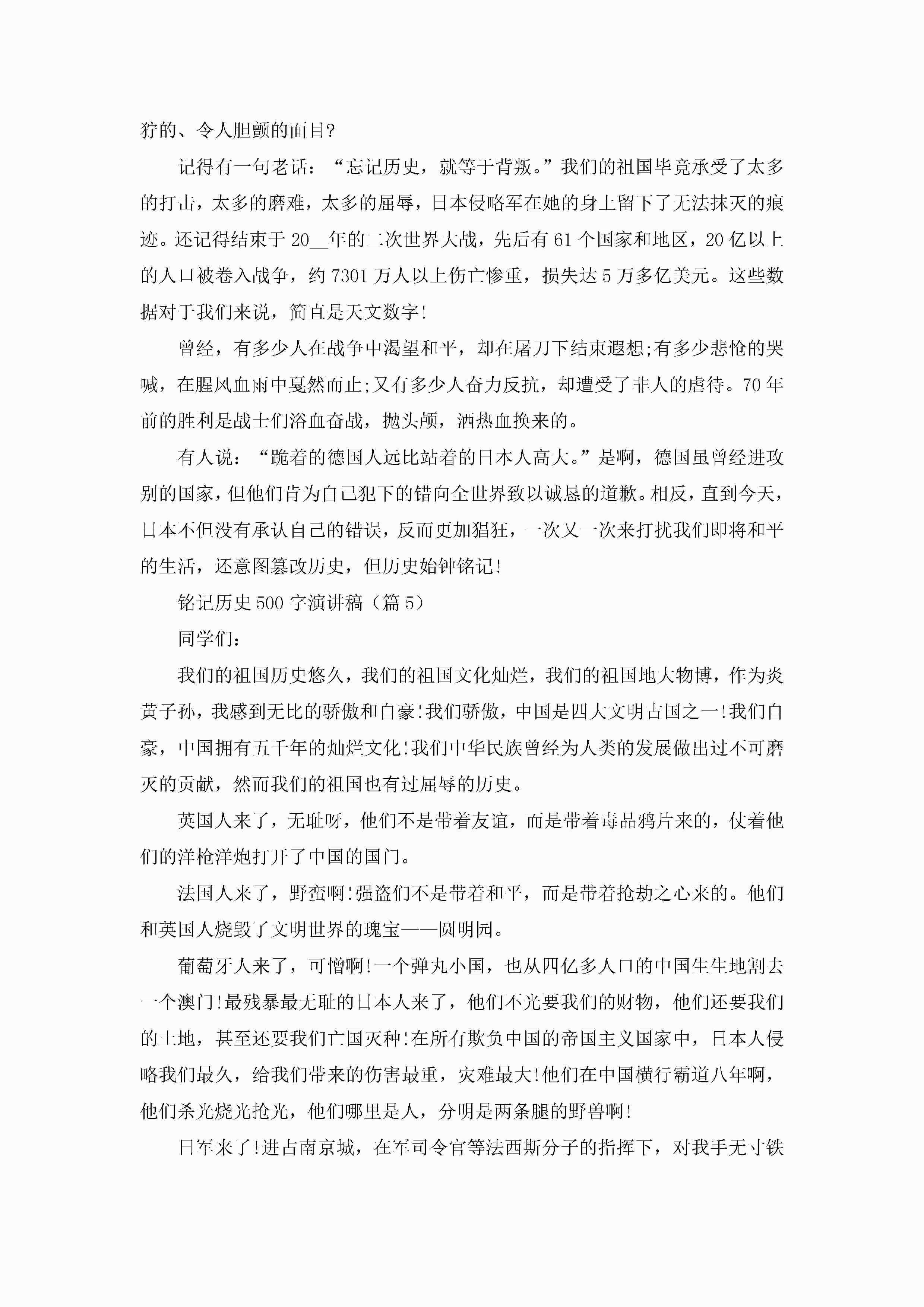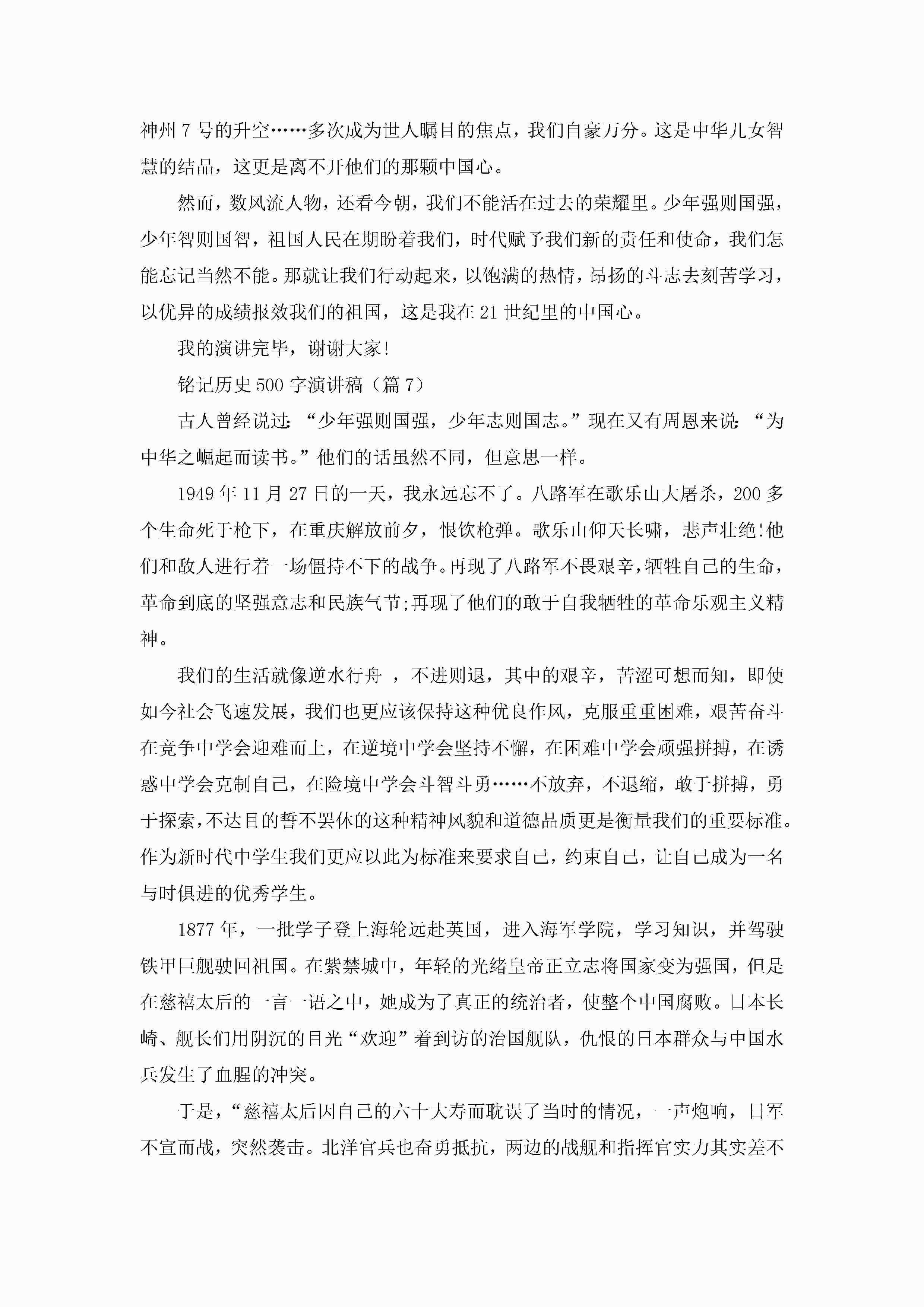 铭记历史500字演讲稿7篇jugei3月23日 01:42发布关注199 铭记历史500字演讲稿7篇此内容为付费资源,请付费后查看¥10.9 单篇文档限时特惠¥15个人会员开通企业会员开通立即下载无需登陆!可直接快捷下载单个模板付费资源© 版权声明THE ENDWord模板# 实用文档# 演讲稿# 经典演讲稿# 铭记历史500字演讲稿 如有问题,可点击最底部“联系我们”联系客服 分享QQ空间微博QQ好友海报分享复制链接收藏