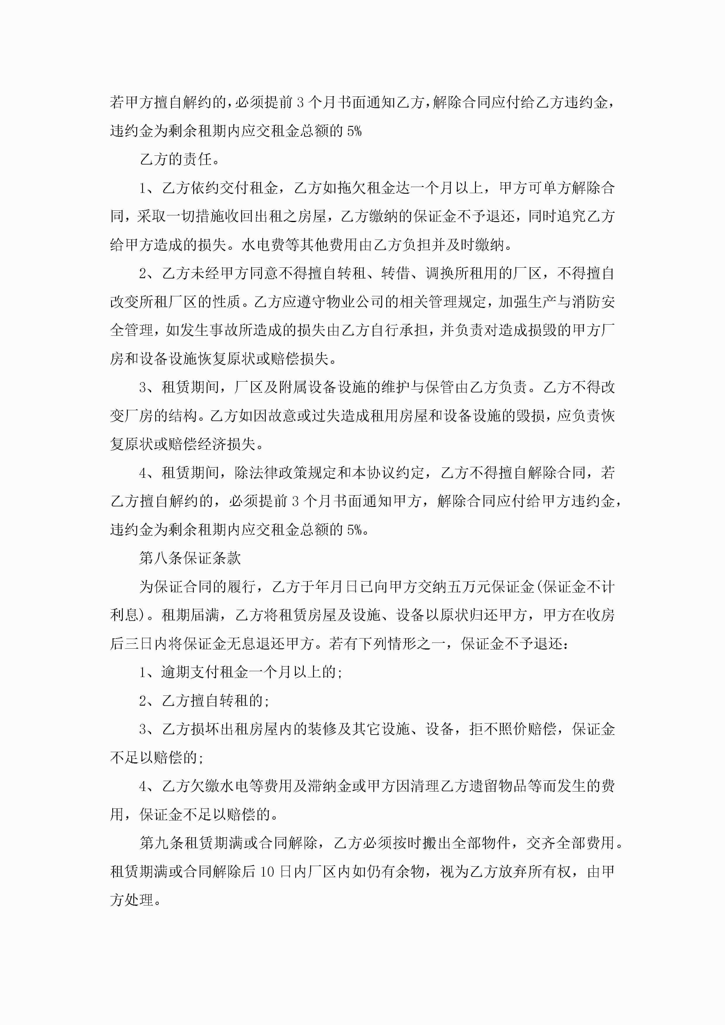 浙江厂房租赁合同范本5篇jugei3月23日 01:42发布关注189 浙江厂房租赁合同范本5篇此内容为付费资源,请付费后查看¥10.9 单篇文档限时特惠¥15个人会员开通企业会员开通立即下载无需登陆!可直接快捷下载单个模板付费资源© 版权声明THE ENDWord模板# 实用文档# 实用模板# 合同模板# 租赁合同 如有问题,可点击最底部“联系我们”联系客服 分享QQ空间微博QQ好友海报分享复制链接收藏