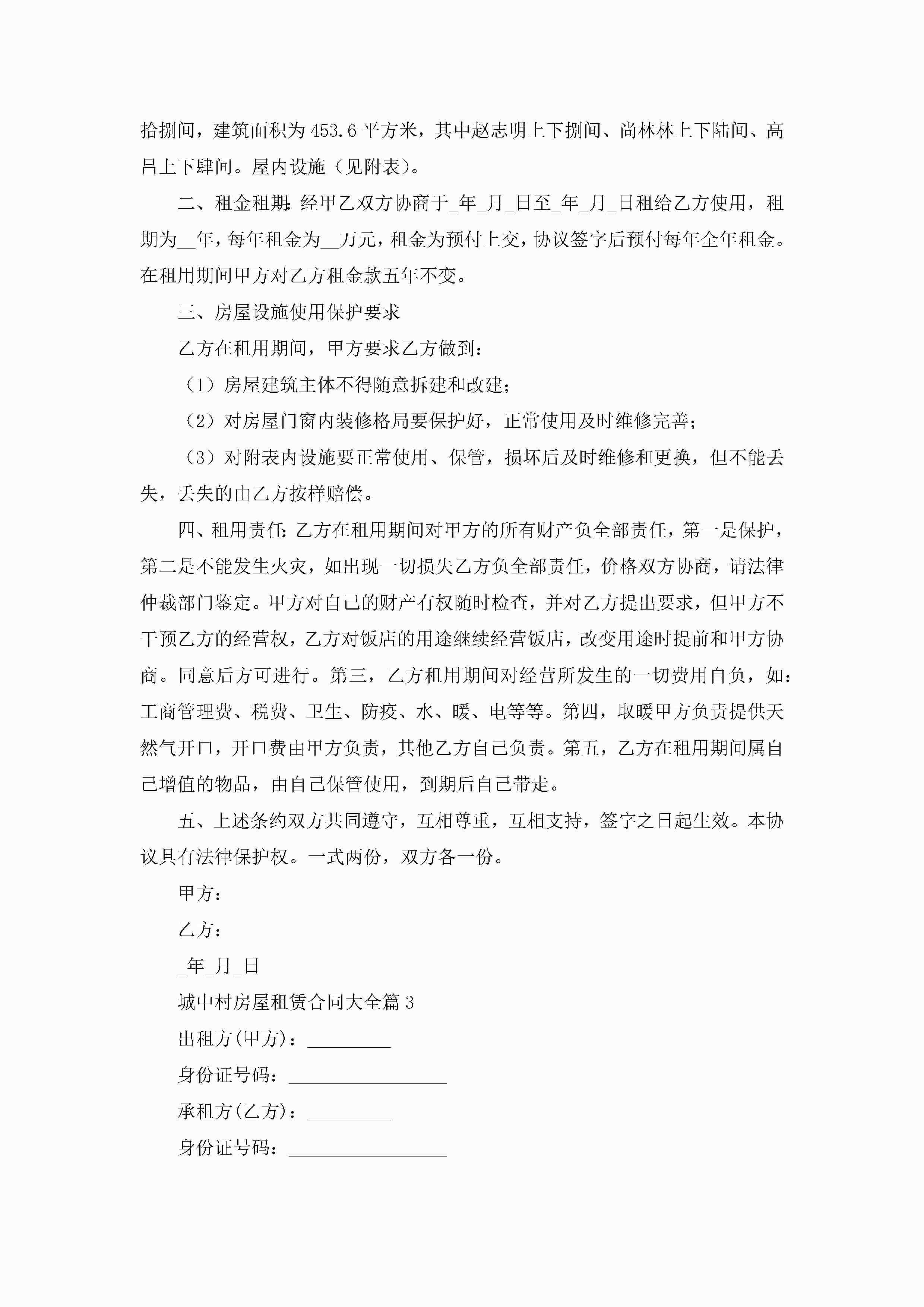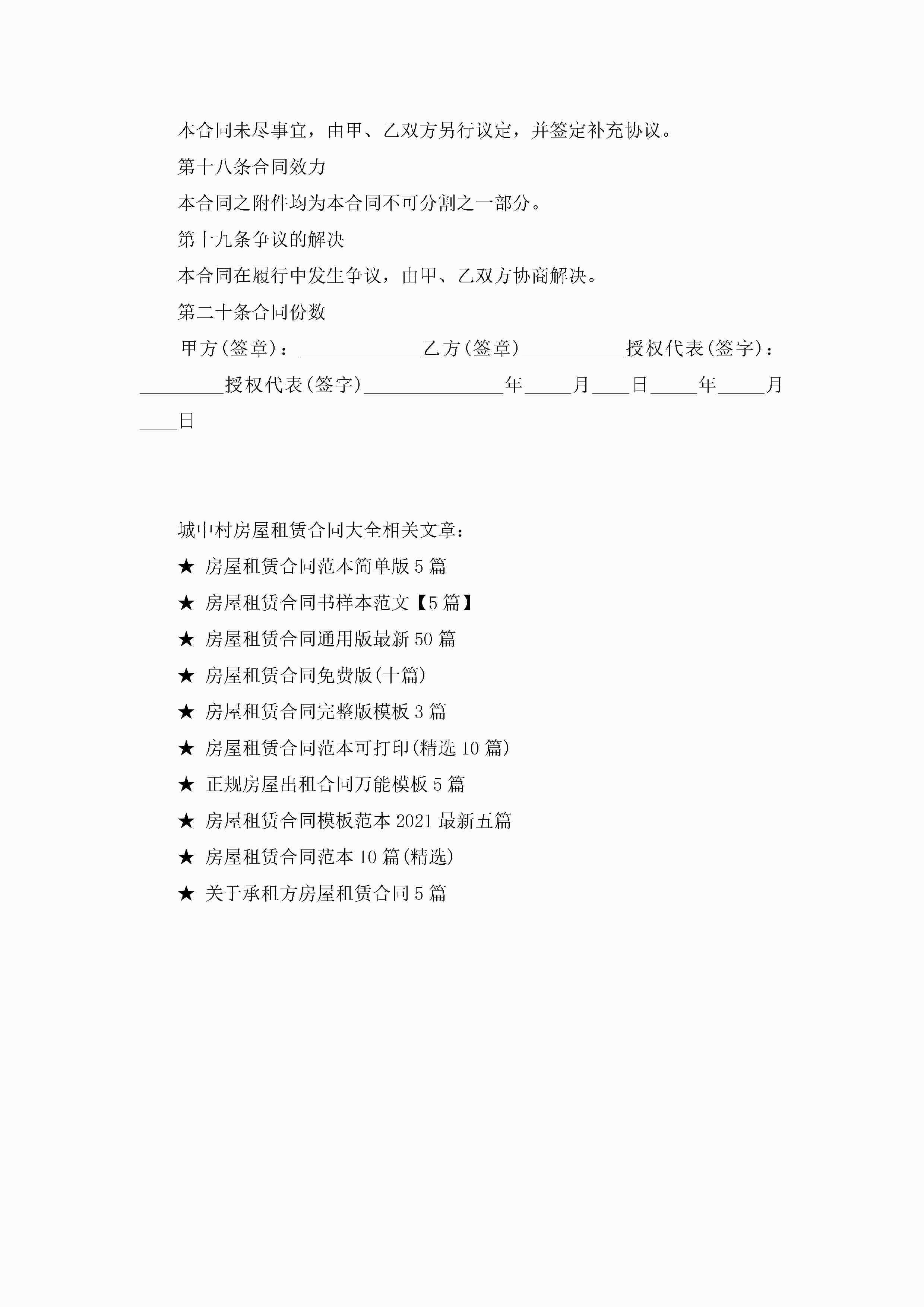 城中村房屋租赁合同大全5篇jugei3月23日 01:42发布关注224 城中村房屋租赁合同大全5篇此内容为付费资源,请付费后查看¥10.9 单篇文档限时特惠¥15个人会员开通企业会员开通立即下载无需登陆!可直接快捷下载单个模板付费资源© 版权声明THE ENDWord模板# 实用文档# 实用模板# 合同模板# 租赁合同 如有问题,可点击最底部“联系我们”联系客服 分享QQ空间微博QQ好友海报分享复制链接收藏