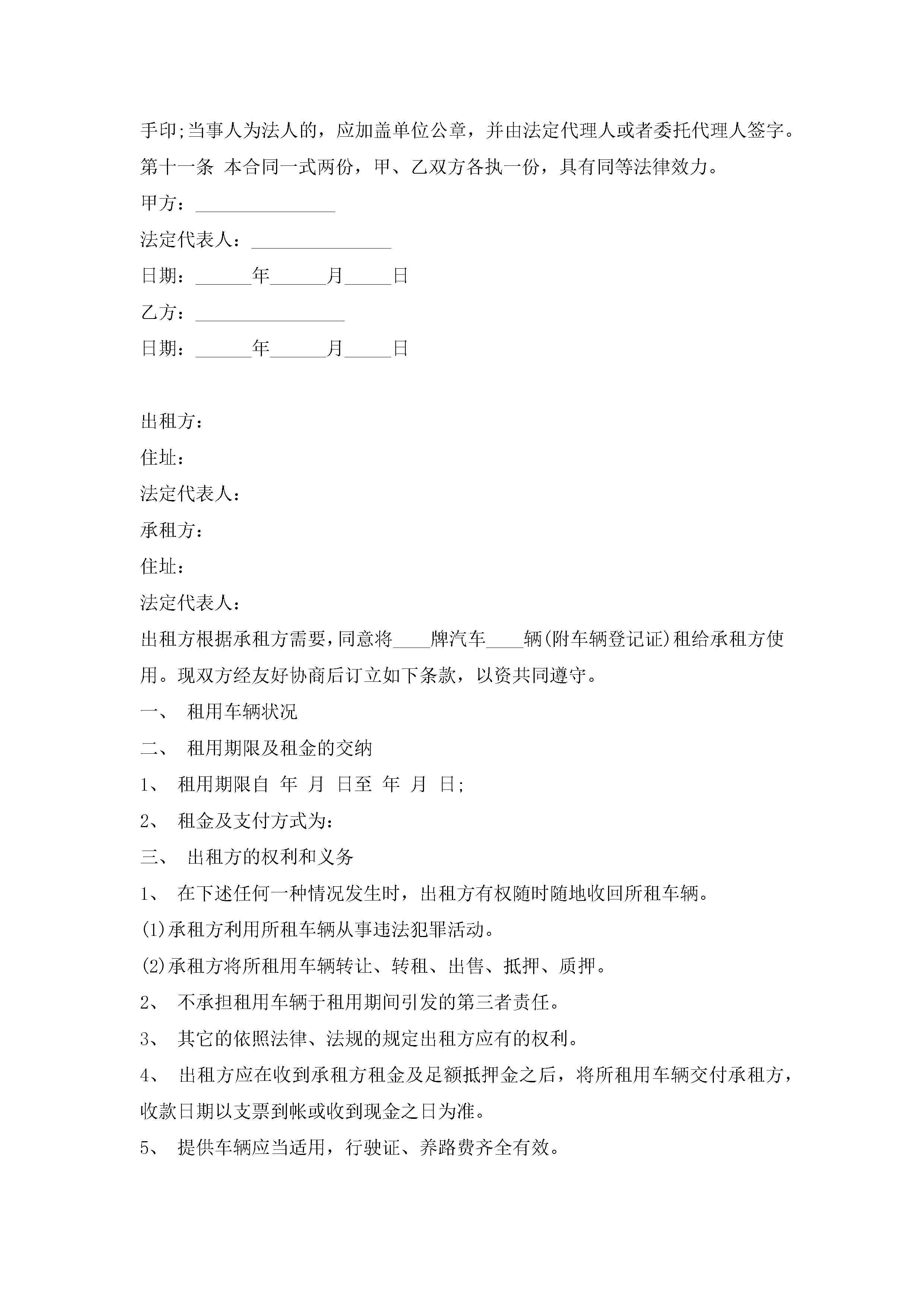 汽车租赁合同协议2022年最新版免费10篇精选jugei3月23日 01:42发布关注187 汽车租赁合同协议2022年最新版免费10篇精选此内容为付费资源,请付费后查看¥10.9 单篇文档限时特惠¥15个人会员开通企业会员开通立即下载无需登陆!可直接快捷下载单个模板付费资源© 版权声明THE ENDWord模板# 实用文档# 实用模板# 合同模板# 租赁合同 如有问题,可点击最底部“联系我们”联系客服 分享QQ空间微博QQ好友海报分享复制链接收藏