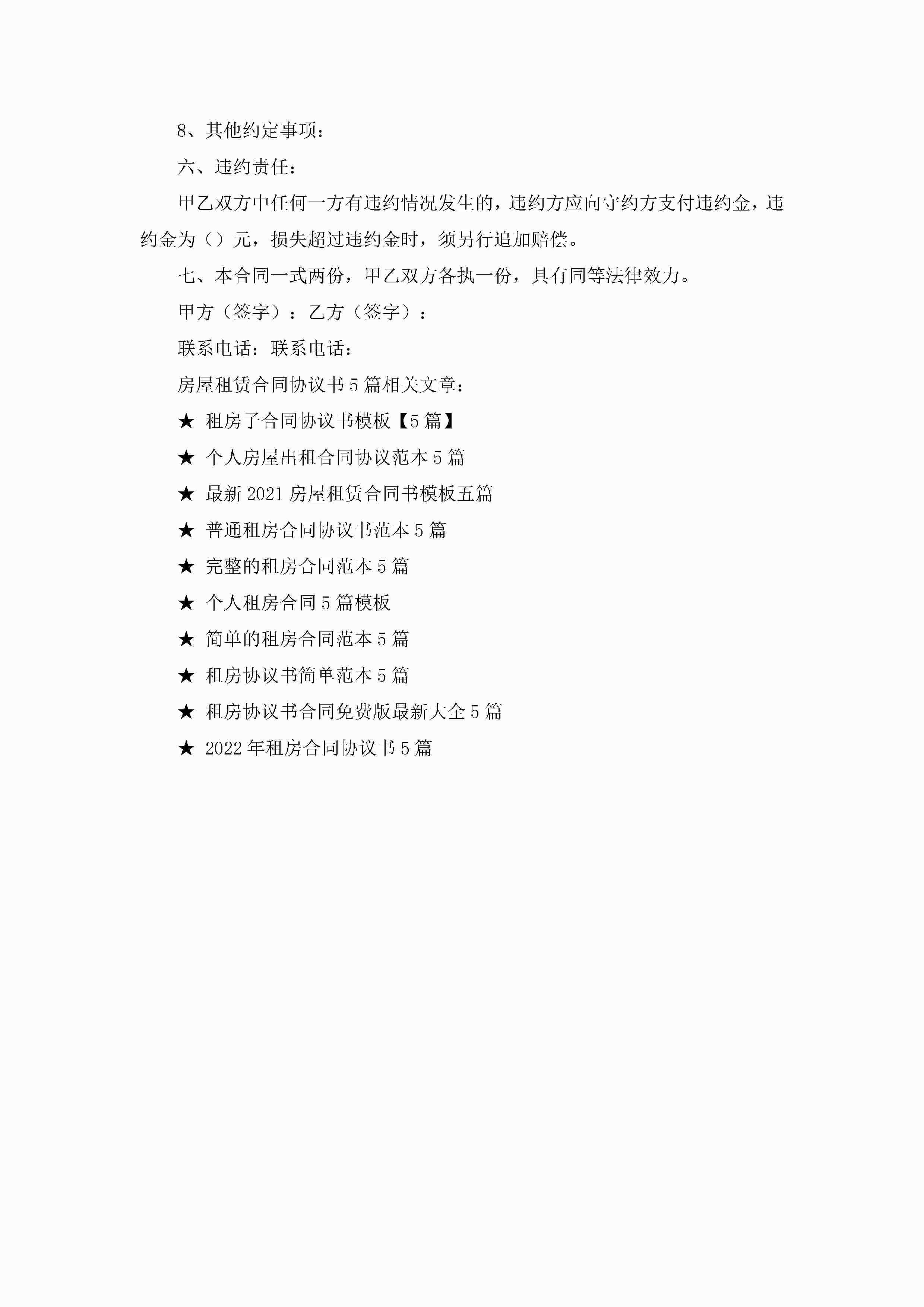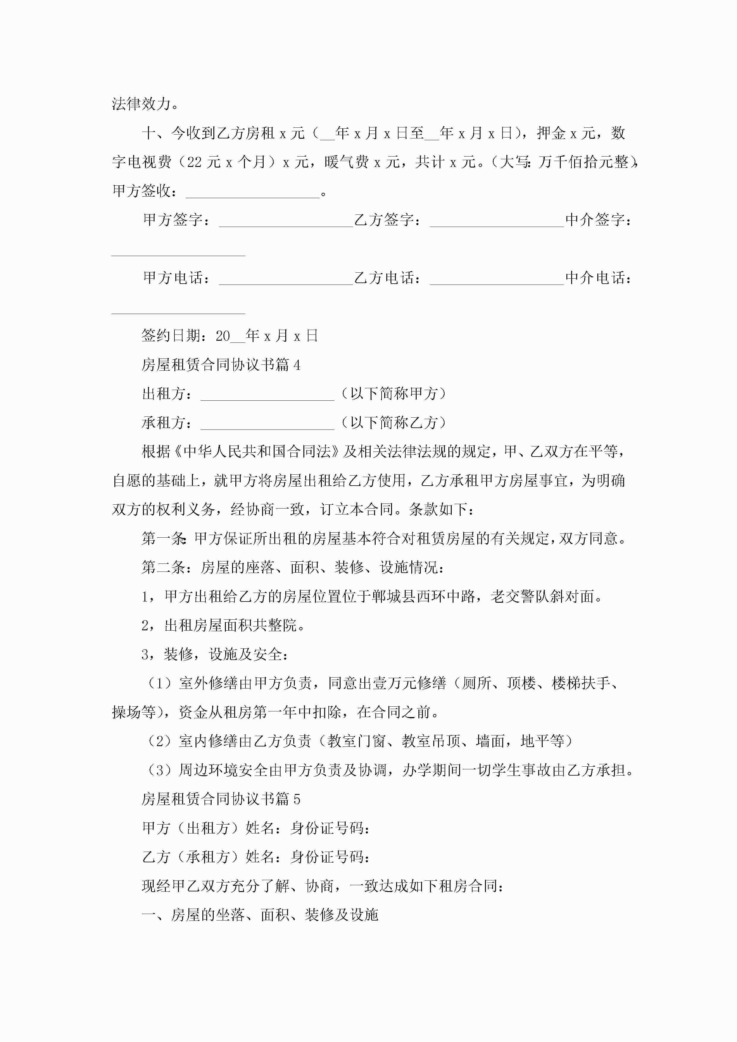 房屋租赁合同协议书5篇(精选)jugei3月23日 01:42发布关注241 房屋租赁合同协议书5篇(精选)此内容为付费资源,请付费后查看¥10.9 单篇文档限时特惠¥15个人会员开通企业会员开通立即下载无需登陆!可直接快捷下载单个模板付费资源© 版权声明THE ENDWord模板# 实用文档# 实用模板# 合同模板# 租赁合同 如有问题,可点击最底部“联系我们”联系客服 分享QQ空间微博QQ好友海报分享复制链接收藏
