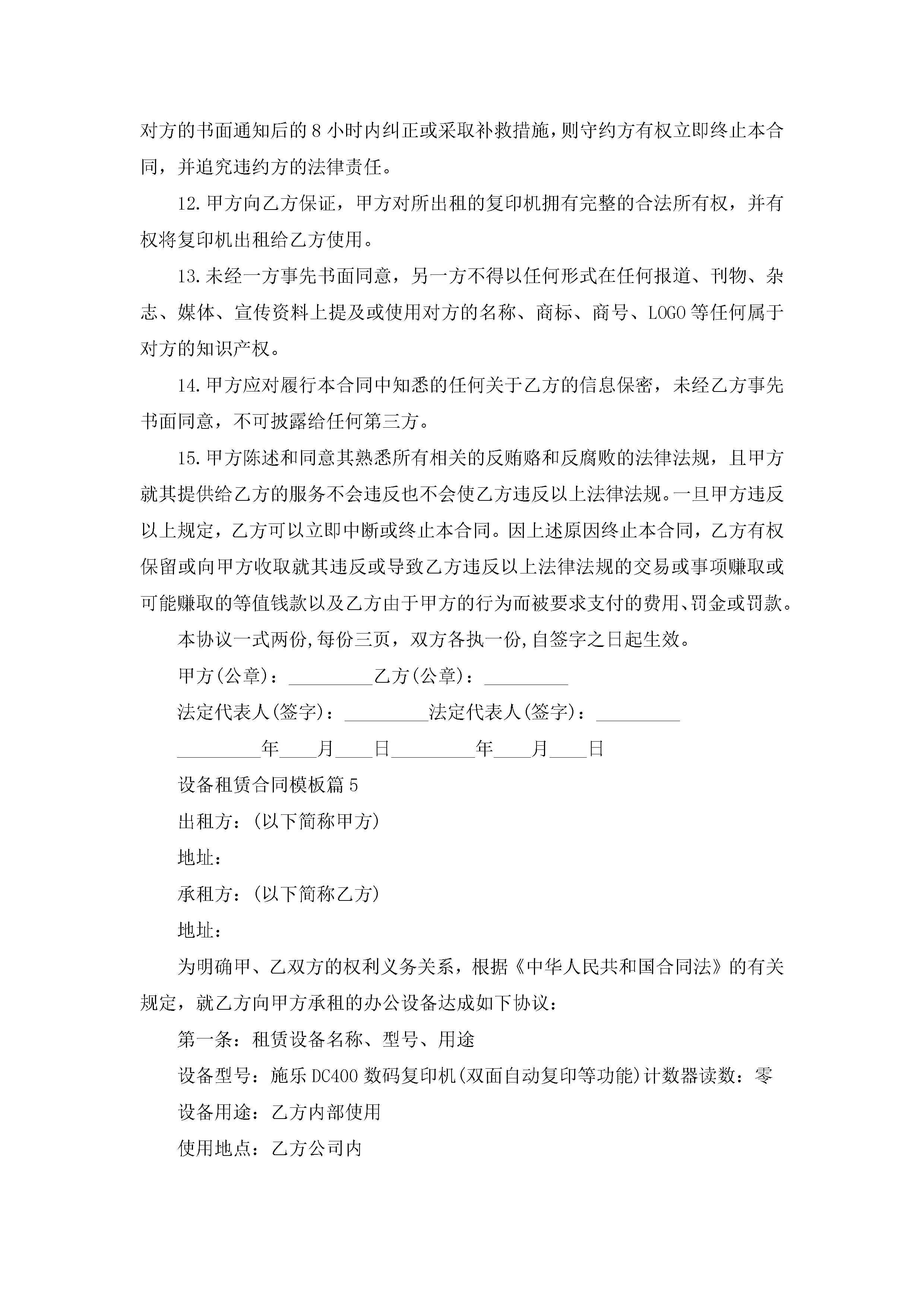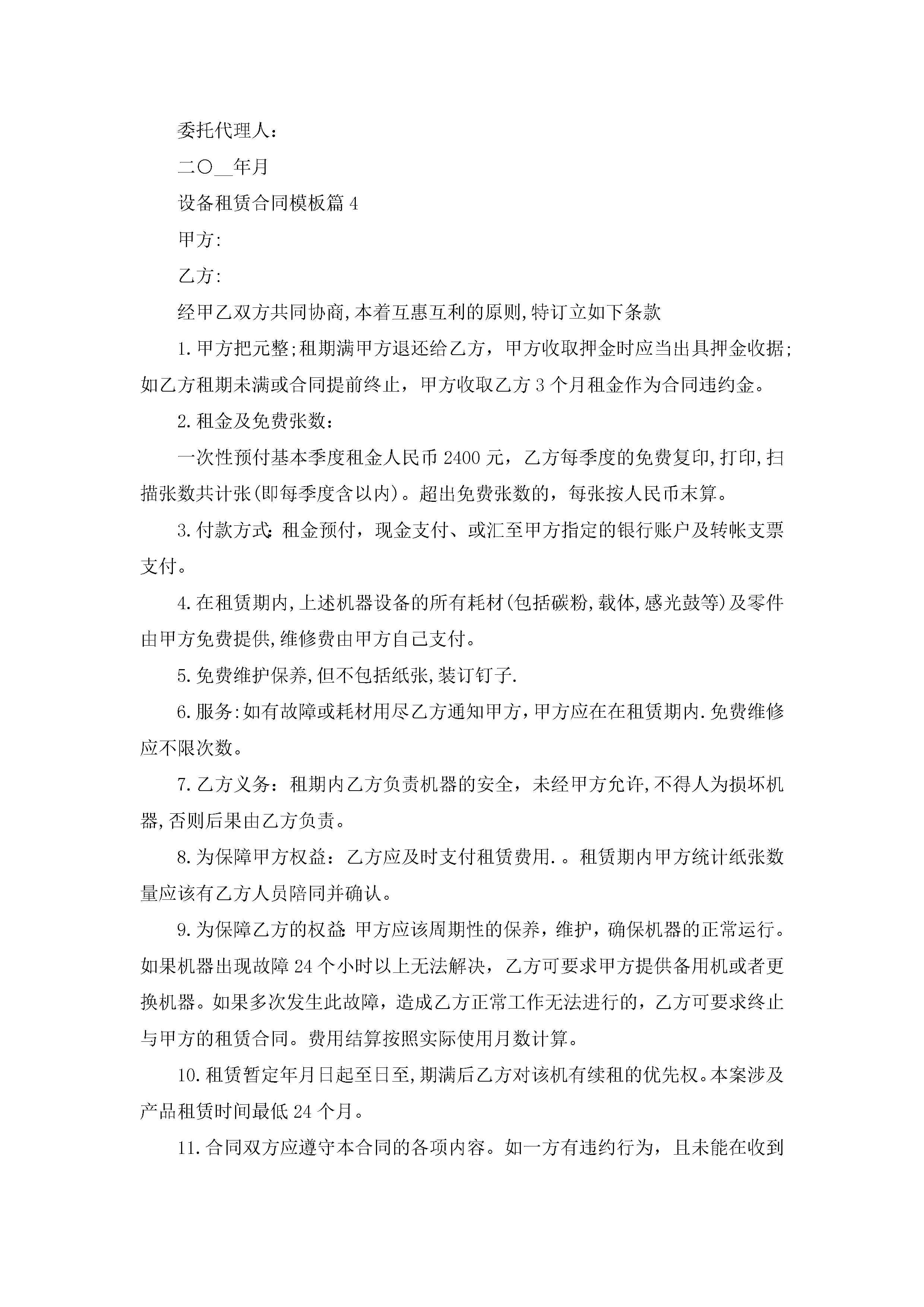 设备租赁合同最新模板jugei3月23日 01:42发布关注187 设备租赁合同最新模板此内容为付费资源,请付费后查看¥10.9 单篇文档限时特惠¥15个人会员开通企业会员开通立即下载无需登陆!可直接快捷下载单个模板付费资源© 版权声明THE ENDWord模板# 实用文档# 实用模板# 合同模板# 租赁合同 如有问题,可点击最底部“联系我们”联系客服 分享QQ空间微博QQ好友海报分享复制链接收藏