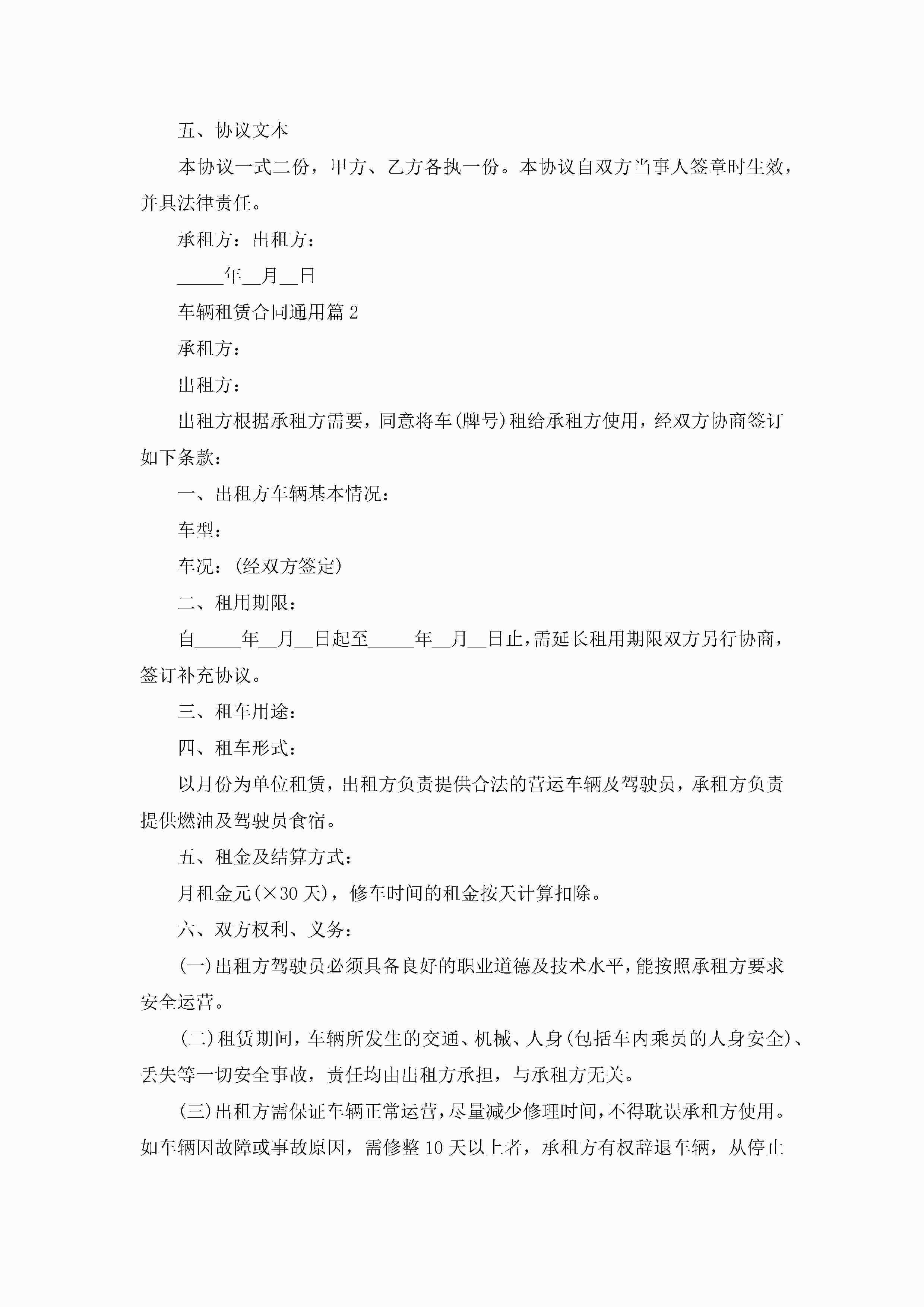 车辆租赁合同通用模板jugei3月23日 01:42发布关注246 车辆租赁合同通用模板此内容为付费资源,请付费后查看¥10.9 单篇文档限时特惠¥15个人会员开通企业会员开通立即下载无需登陆!可直接快捷下载单个模板付费资源© 版权声明THE ENDWord模板# 实用文档# 实用模板# 合同模板# 租赁合同 如有问题,可点击最底部“联系我们”联系客服 分享QQ空间微博QQ好友海报分享复制链接收藏