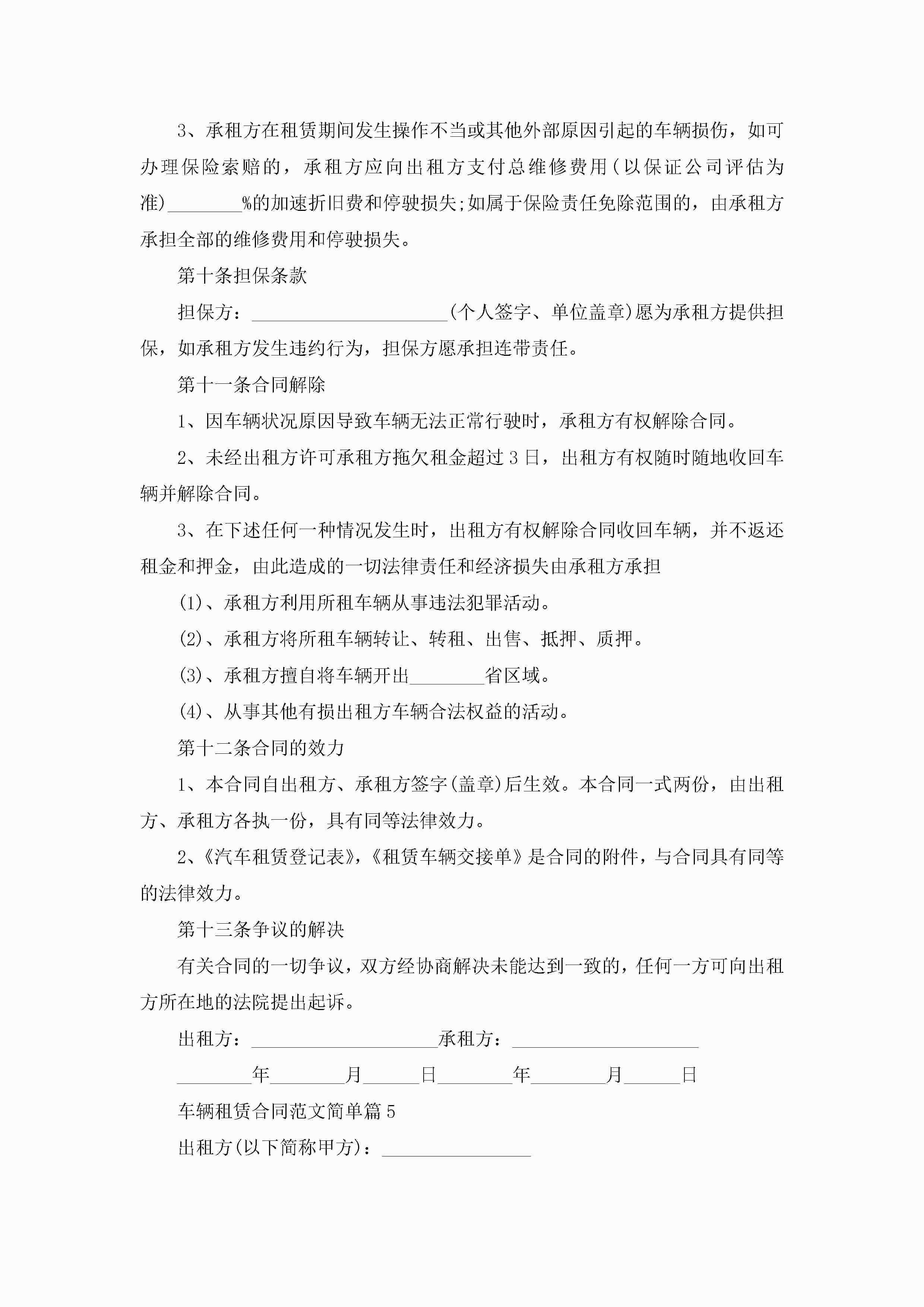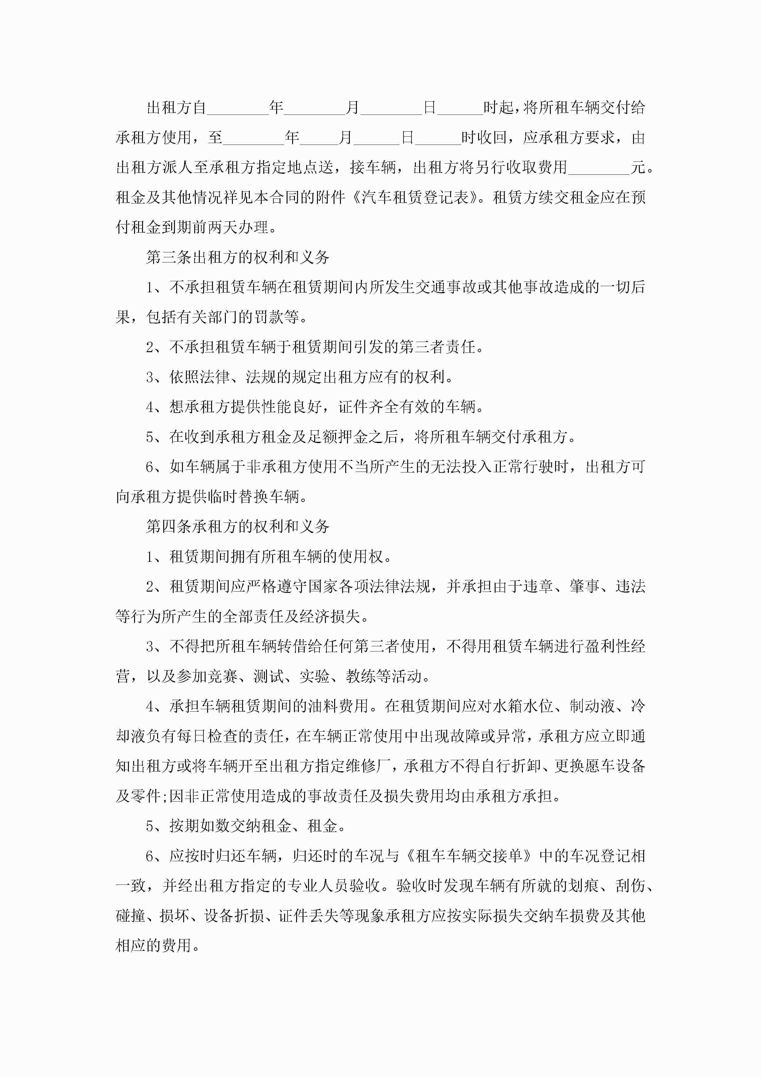 车辆租赁合同最新范文简单jugei3月23日 01:42发布关注187 车辆租赁合同最新范文简单此内容为付费资源,请付费后查看¥10.9 单篇文档限时特惠¥15个人会员开通企业会员开通立即下载无需登陆!可直接快捷下载单个模板付费资源© 版权声明THE ENDWord模板# 实用文档# 实用模板# 合同模板# 租赁合同 如有问题,可点击最底部“联系我们”联系客服 分享QQ空间微博QQ好友海报分享复制链接收藏