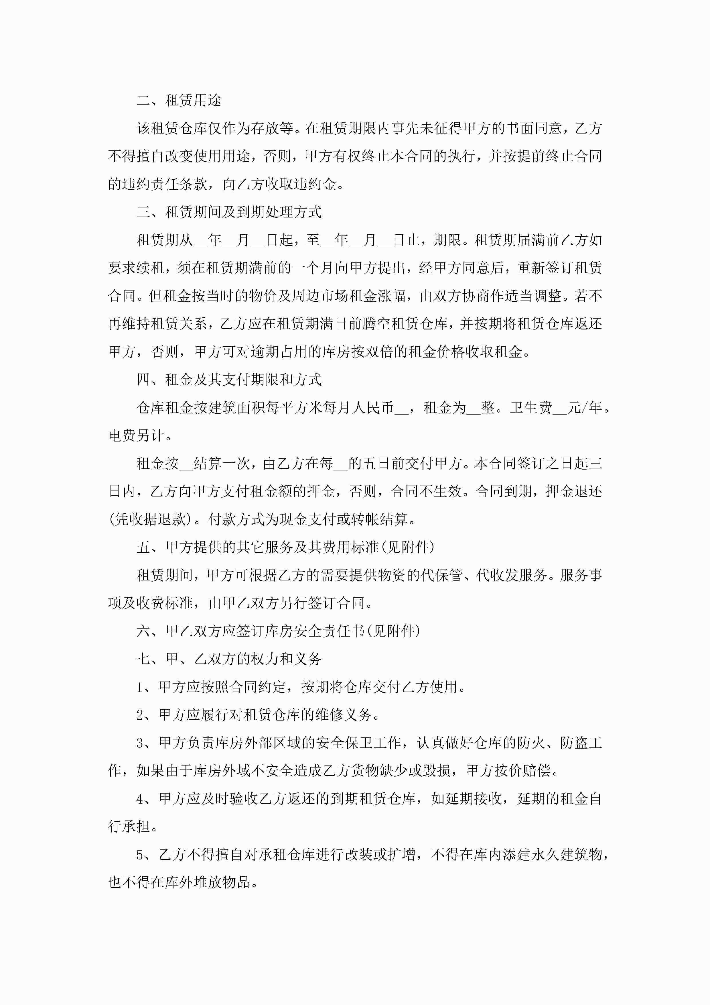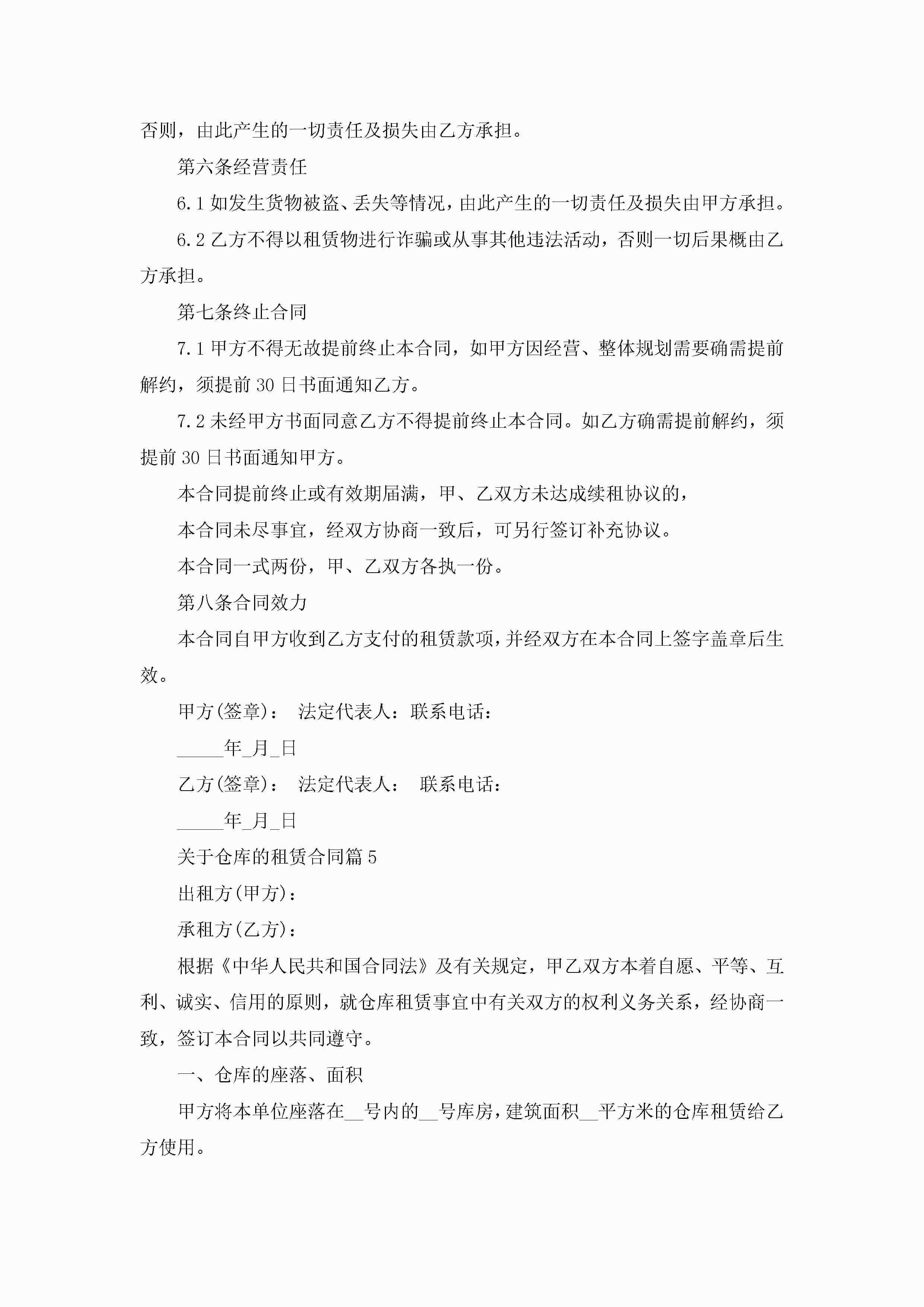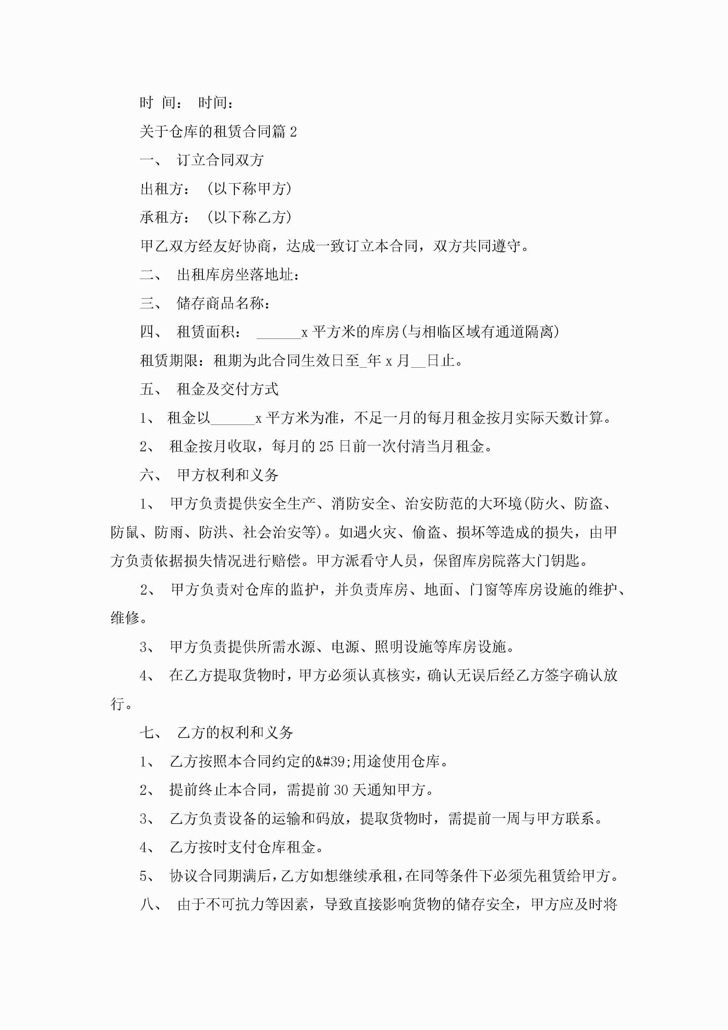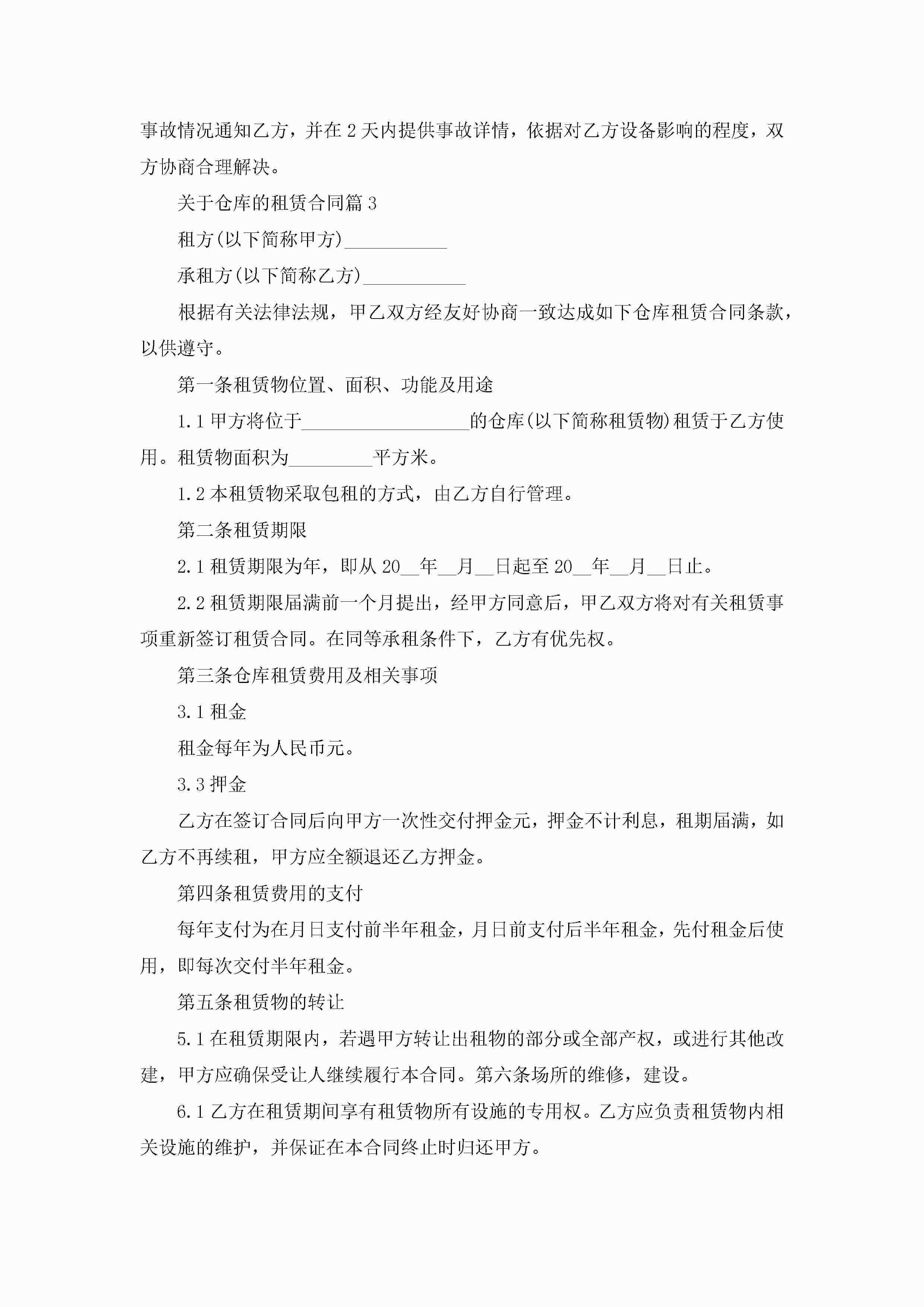 关于仓库的租赁合同范文五篇jugei3月23日 01:42发布关注186 关于仓库的租赁合同范文五篇此内容为付费资源,请付费后查看¥10.9 单篇文档限时特惠¥15个人会员开通企业会员开通立即下载无需登陆!可直接快捷下载单个模板付费资源© 版权声明THE ENDWord模板# 实用文档# 合同模板# 租赁合同# 关于仓库的租赁合同五篇 如有问题,可点击最底部“联系我们”联系客服 分享QQ空间微博QQ好友海报分享复制链接收藏