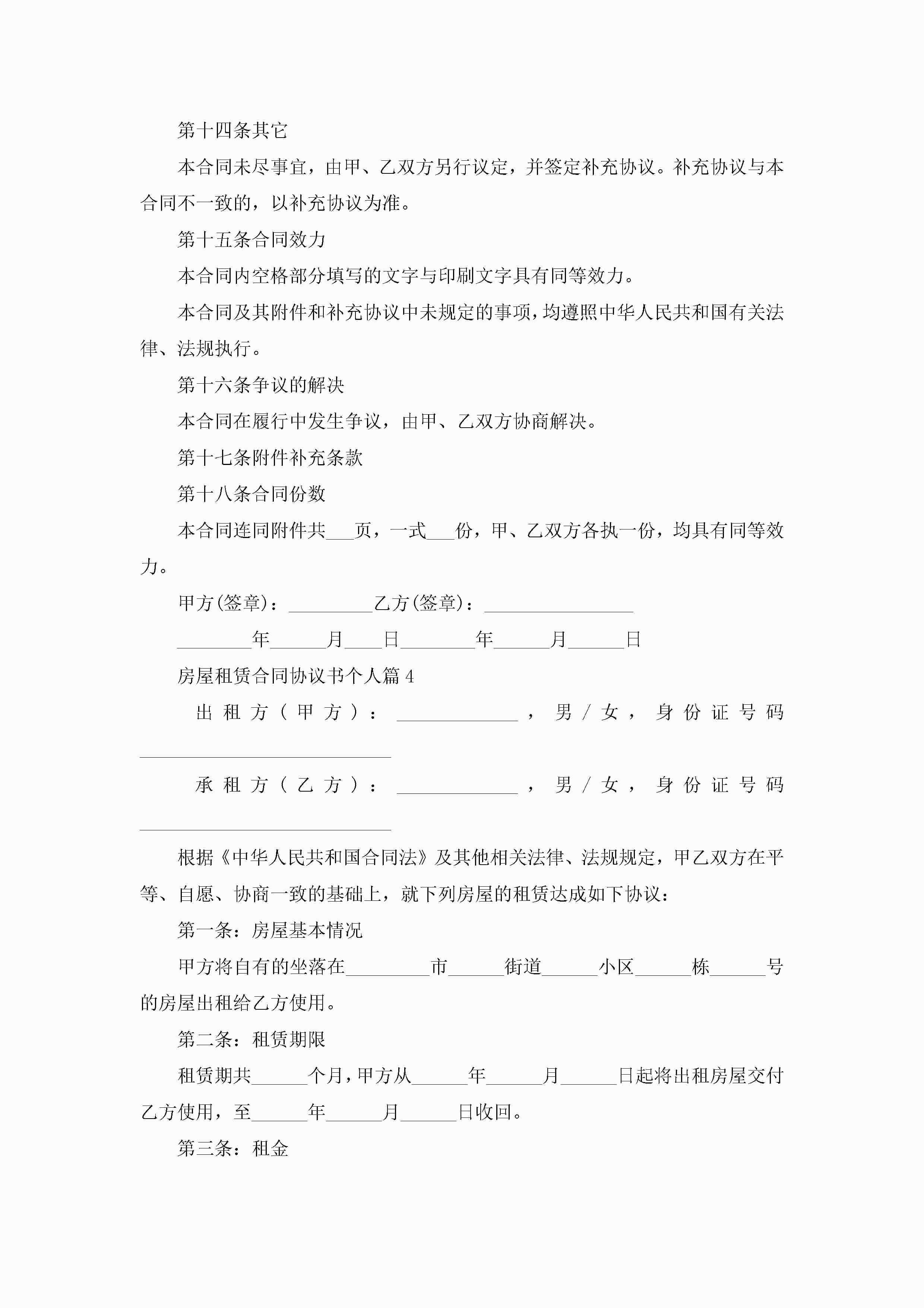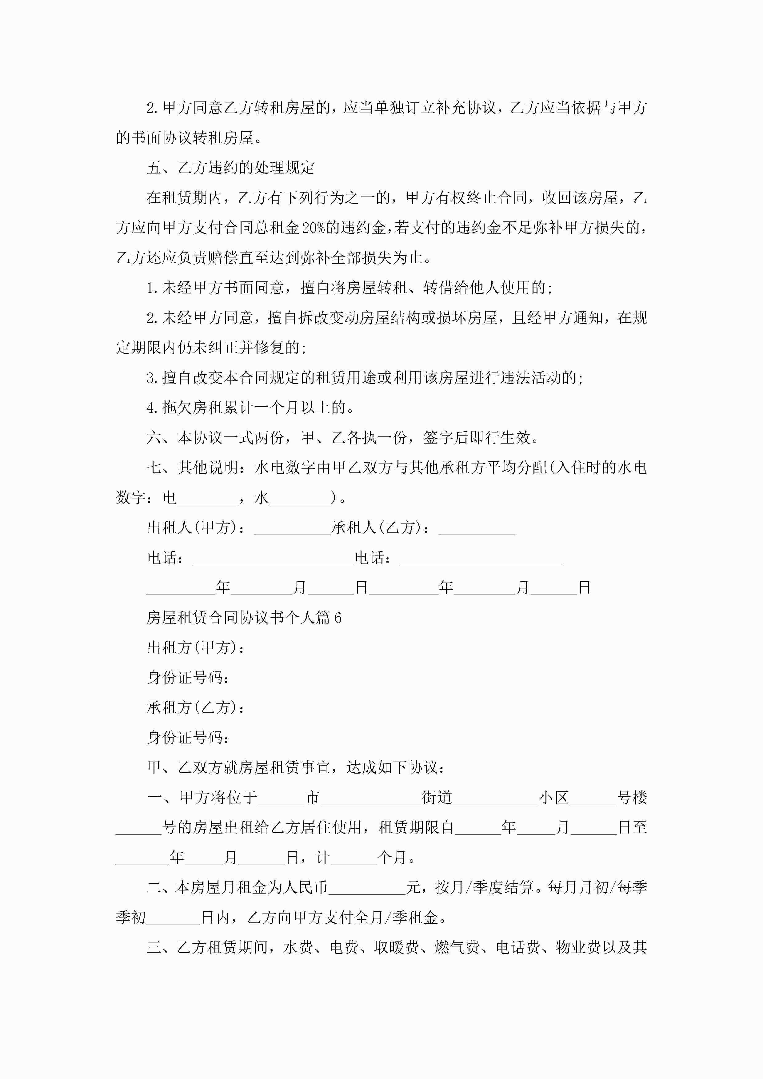 2022年房屋租赁合同协议书个人(10篇精选)jugei3月23日 01:42发布关注187 2022年房屋租赁合同协议书个人(10篇精选)此内容为付费资源,请付费后查看¥10.9 单篇文档限时特惠¥15个人会员开通企业会员开通立即下载无需登陆!可直接快捷下载单个模板付费资源© 版权声明THE ENDWord模板# 实用文档# 实用模板# 合同模板# 租赁合同 如有问题,可点击最底部“联系我们”联系客服 分享QQ空间微博QQ好友海报分享复制链接收藏