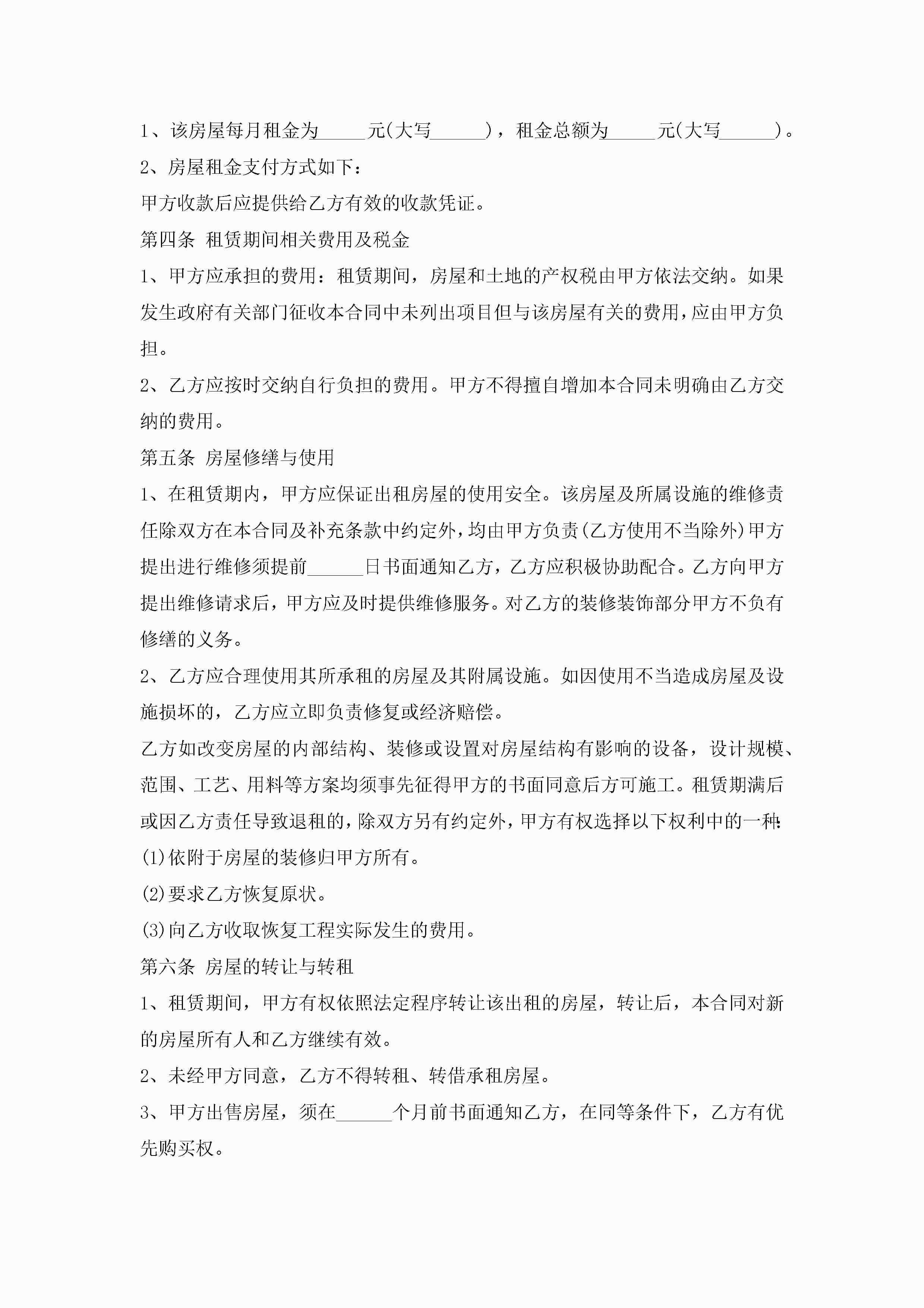 房屋租赁合同最新标准版范本10篇2022jugei3月23日 01:42发布关注192 房屋租赁合同最新标准版范本10篇2022此内容为付费资源,请付费后查看¥10.9 单篇文档限时特惠¥15个人会员开通企业会员开通立即下载无需登陆!可直接快捷下载单个模板付费资源© 版权声明THE ENDWord模板# 实用文档# 实用模板# 合同模板# 租赁合同 如有问题,可点击最底部“联系我们”联系客服 分享QQ空间微博QQ好友海报分享复制链接收藏