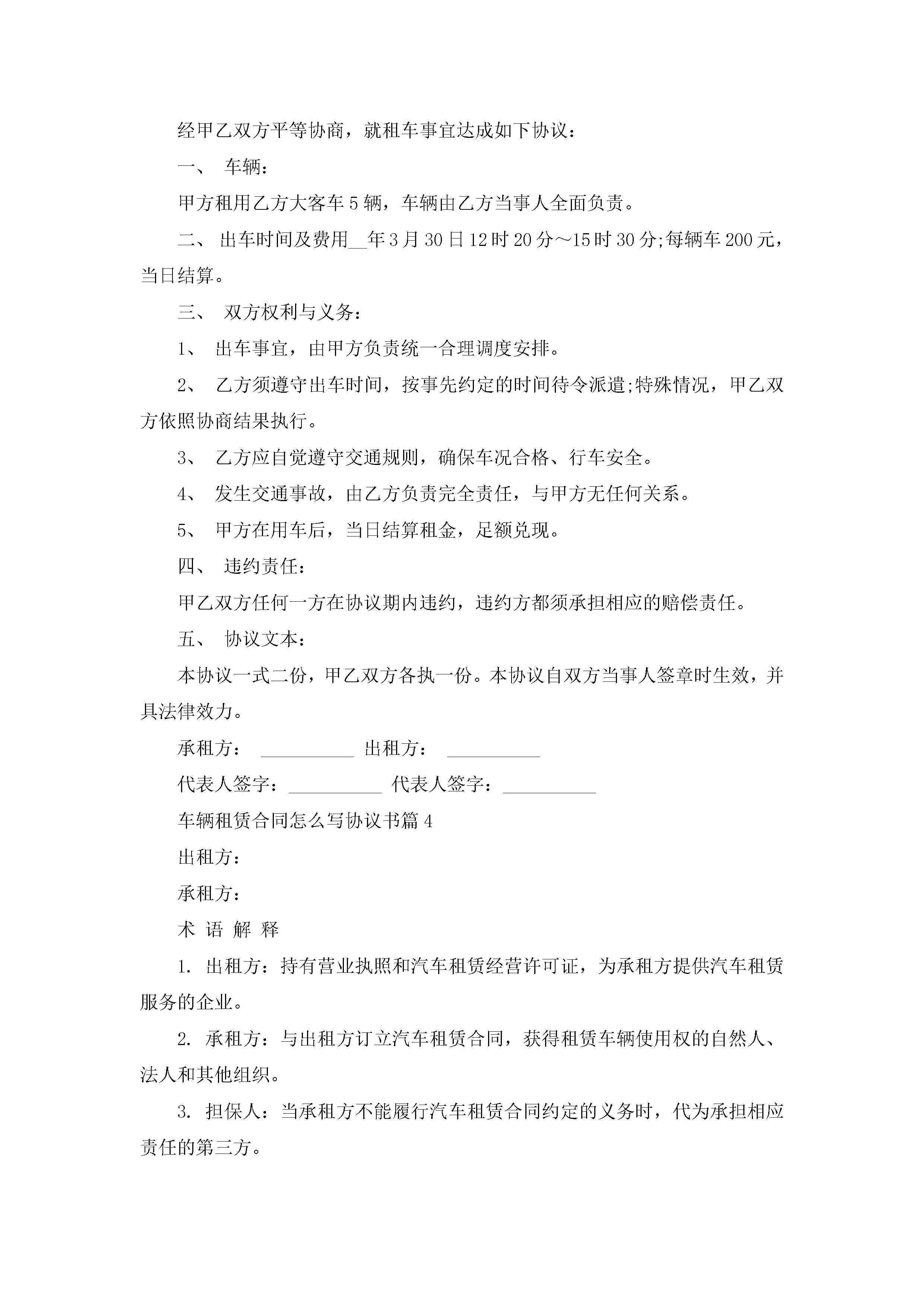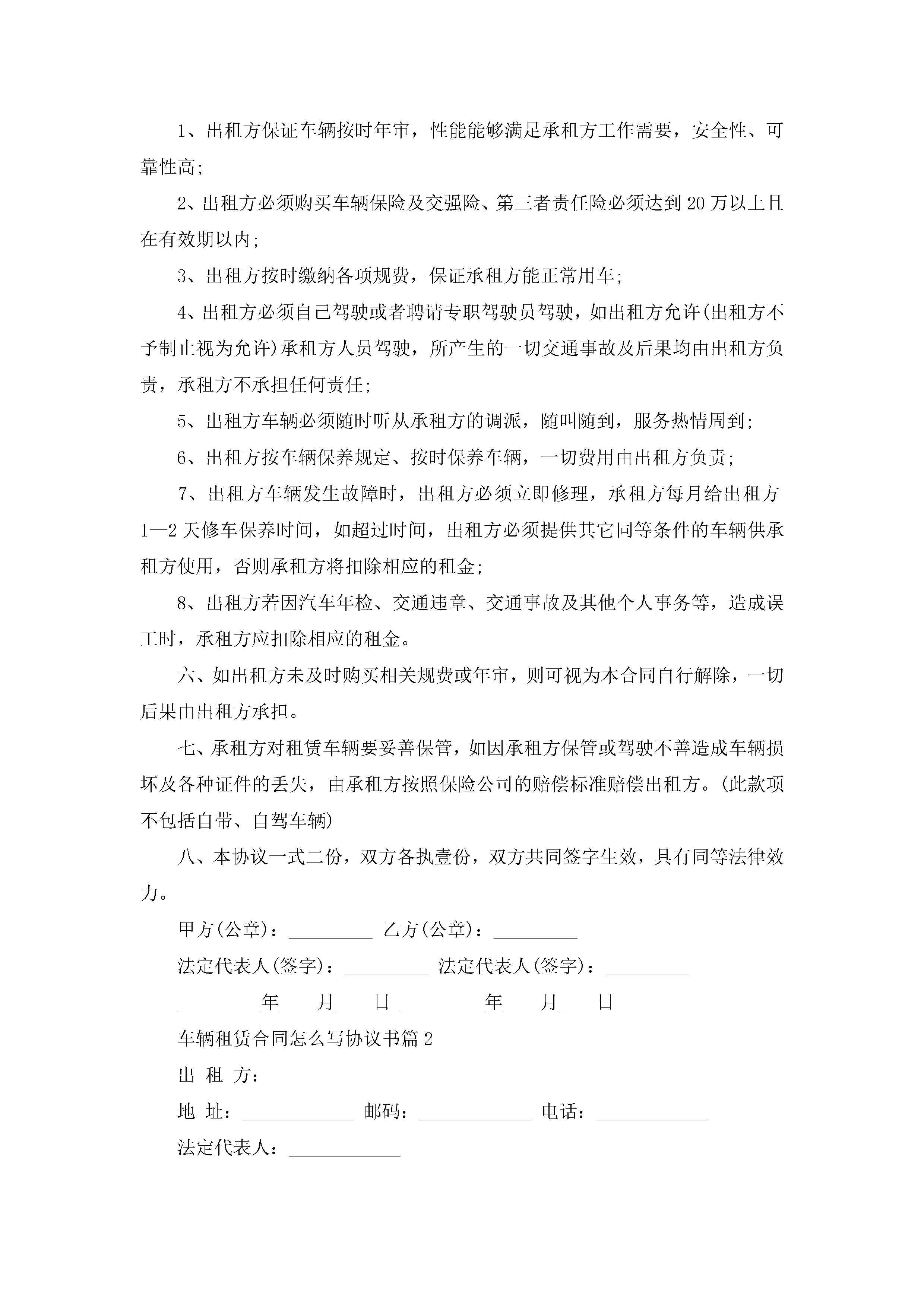 车辆租赁合同怎么写协议书10篇精选2022jugei3月23日 01:42发布关注186 车辆租赁合同怎么写协议书10篇精选2022此内容为付费资源,请付费后查看¥10.9 单篇文档限时特惠¥15个人会员开通企业会员开通立即下载无需登陆!可直接快捷下载单个模板付费资源© 版权声明THE ENDWord模板# 实用文档# 实用模板# 合同模板# 租赁合同 如有问题,可点击最底部“联系我们”联系客服 分享QQ空间微博QQ好友海报分享复制链接收藏