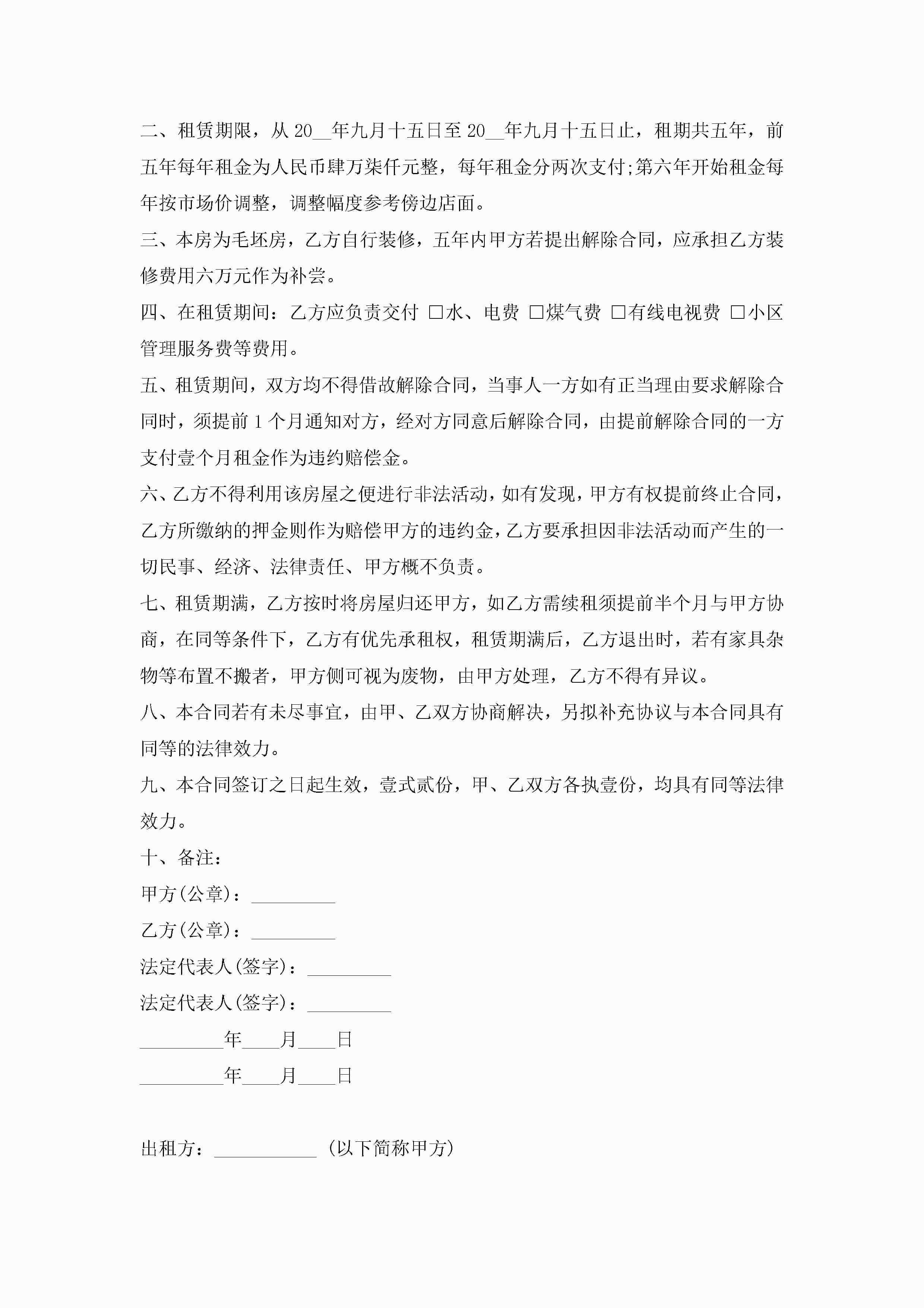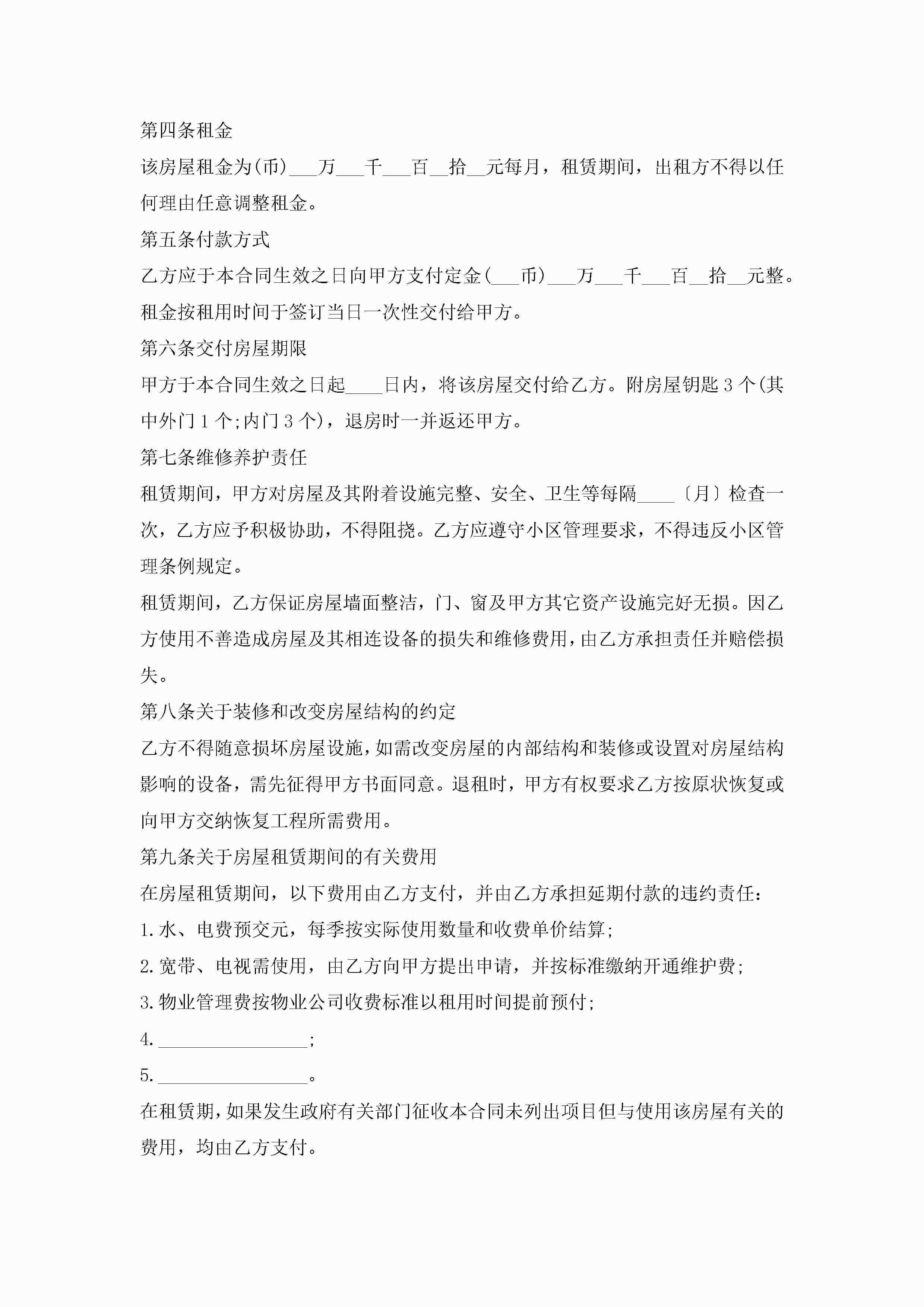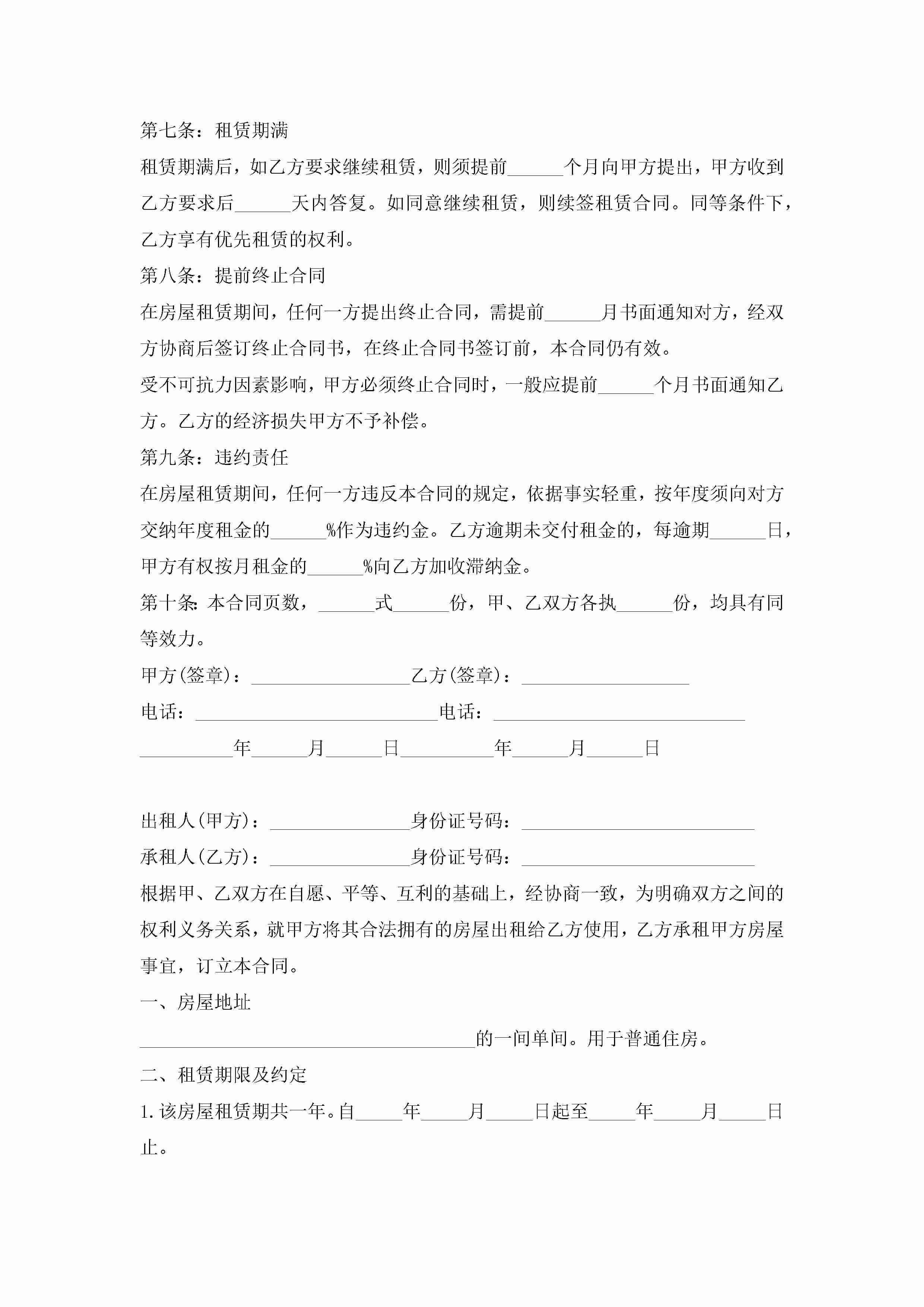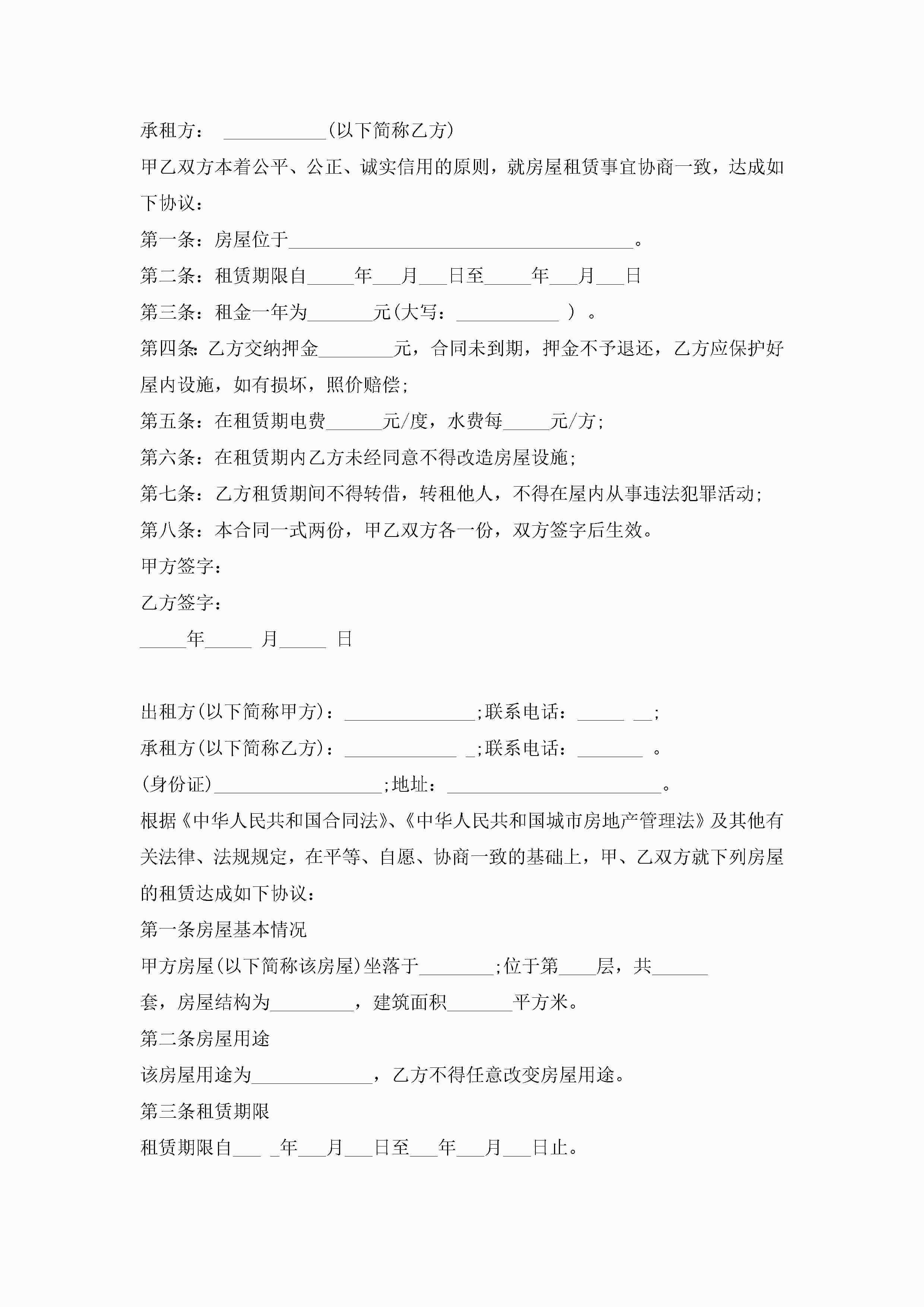 2023最新房屋租赁合同模板12篇jugei3月23日 01:42发布关注190 2023最新房屋租赁合同模板12篇此内容为付费资源,请付费后查看¥10.9 单篇文档限时特惠¥15个人会员开通企业会员开通立即下载无需登陆!可直接快捷下载单个模板付费资源© 版权声明THE ENDWord模板# 实用文档# 实用模板# 合同模板# 租赁合同 如有问题,可点击最底部“联系我们”联系客服 分享QQ空间微博QQ好友海报分享复制链接收藏