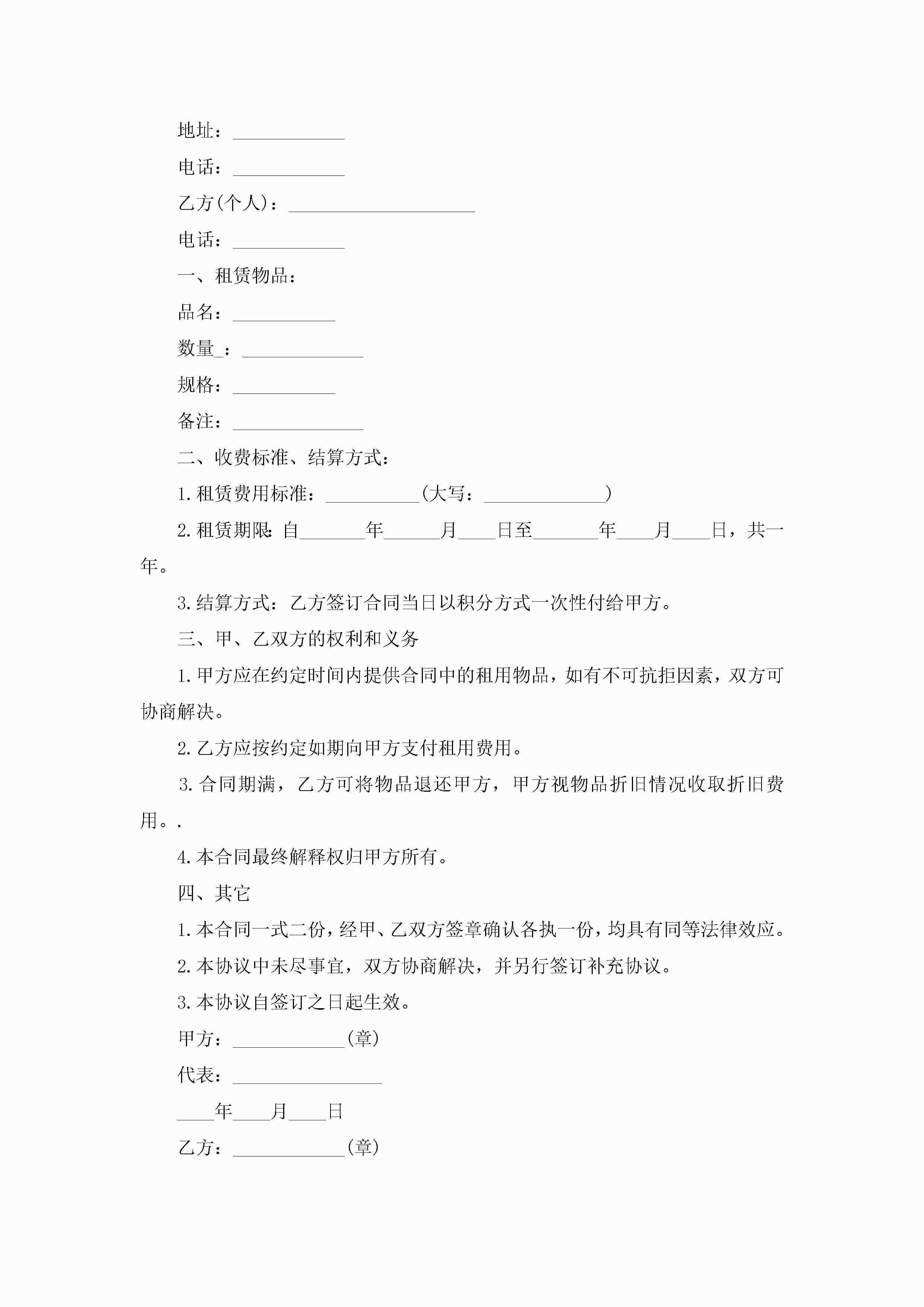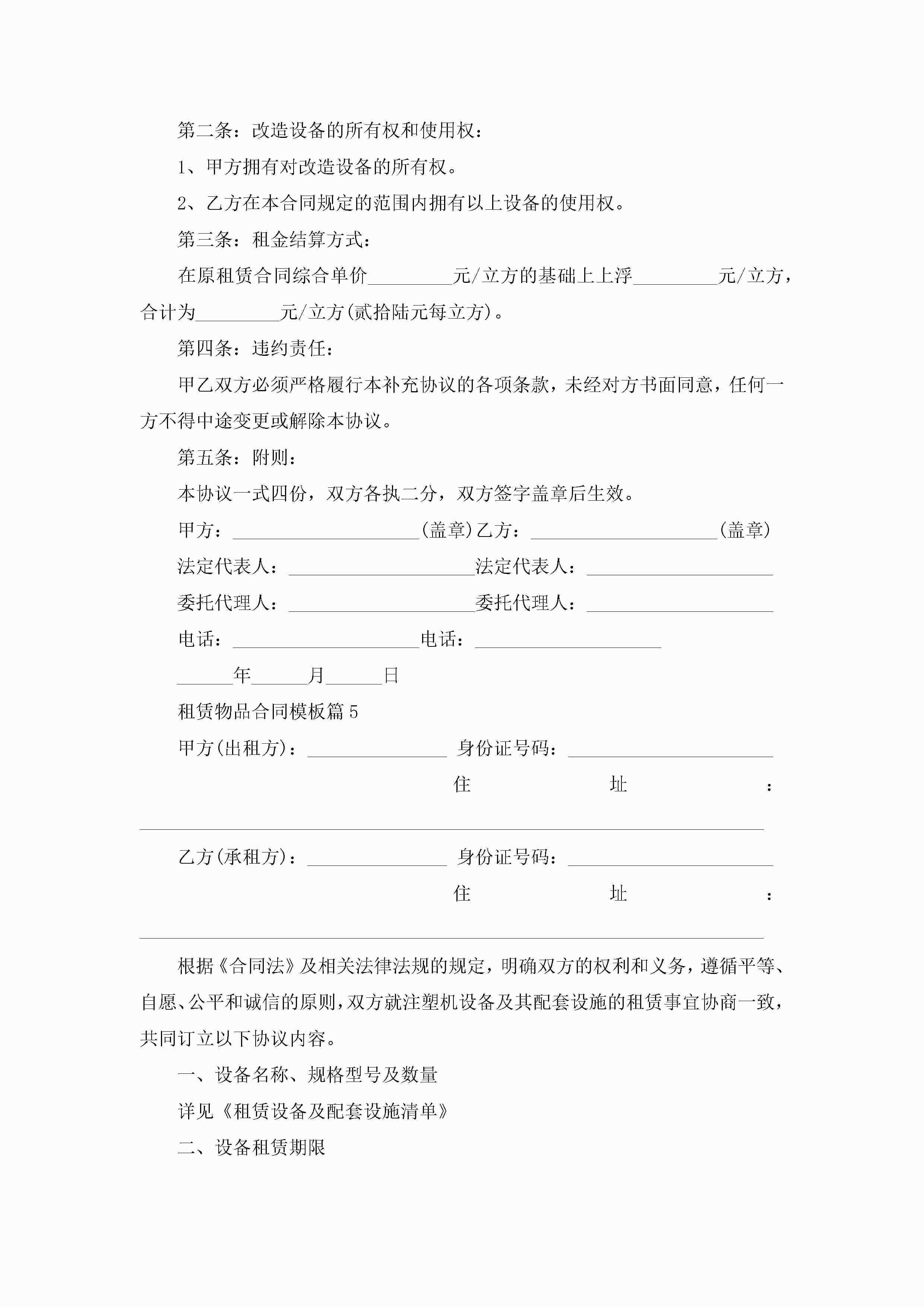 租赁物品合同模板5篇jugei3月23日 01:42发布关注192 租赁物品合同模板5篇此内容为付费资源,请付费后查看¥10.9 单篇文档限时特惠¥15个人会员开通企业会员开通立即下载无需登陆!可直接快捷下载单个模板付费资源© 版权声明THE ENDWord模板# 实用文档# 合同模板# 租赁合同# 租赁物品合同模板 如有问题,可点击最底部“联系我们”联系客服 分享QQ空间微博QQ好友海报分享复制链接收藏