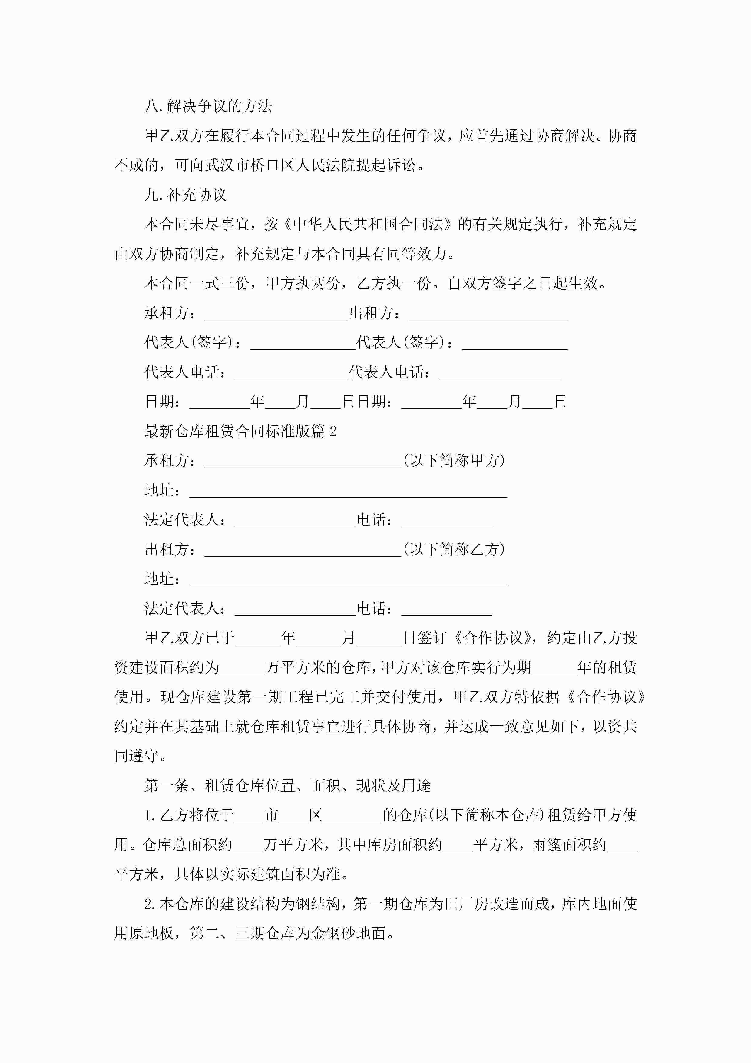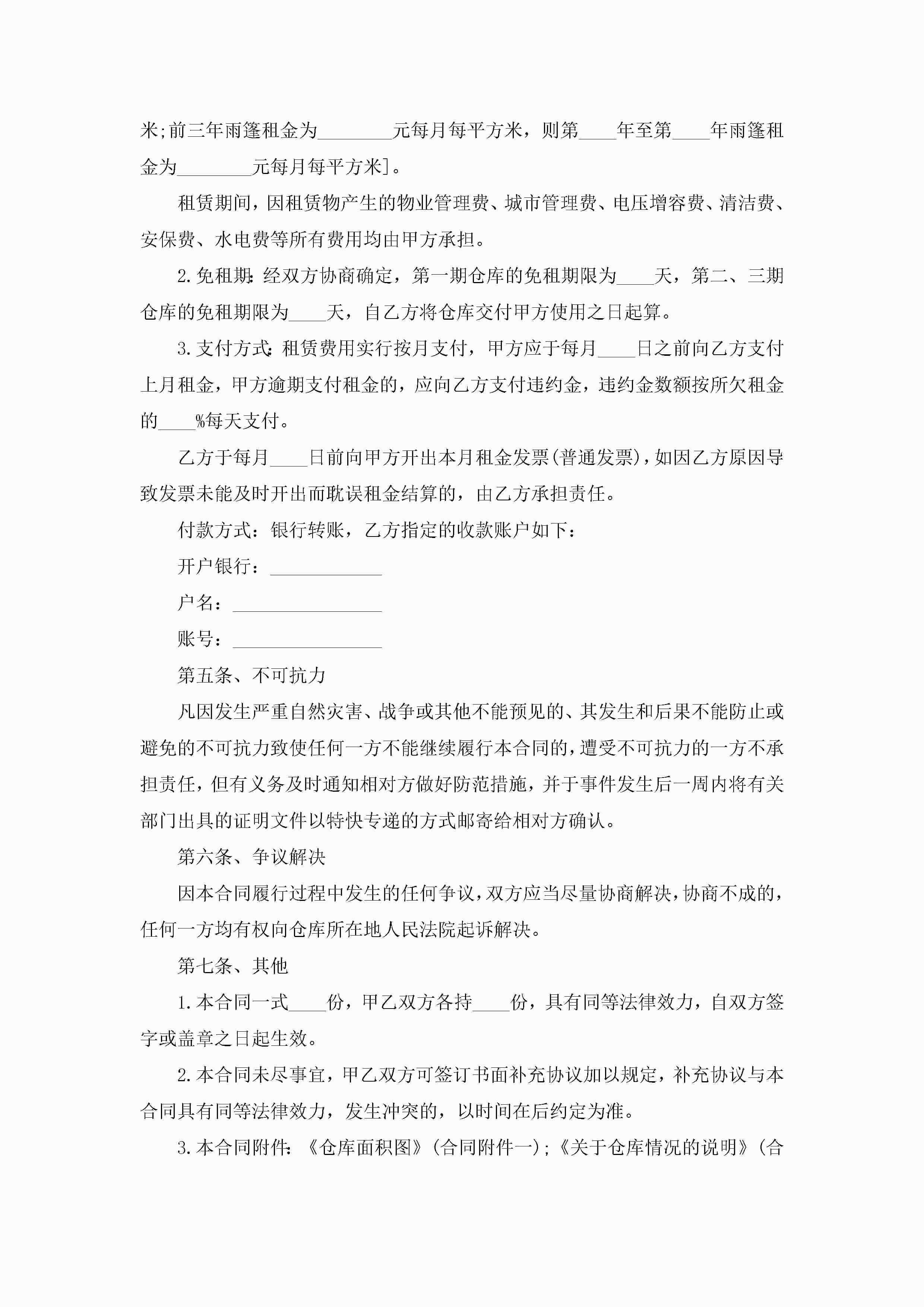 最新仓库租赁合同标准版5篇jugei3月23日 01:42发布关注188 最新仓库租赁合同标准版5篇此内容为付费资源,请付费后查看¥10.9 单篇文档限时特惠¥15个人会员开通企业会员开通立即下载无需登陆!可直接快捷下载单个模板付费资源© 版权声明THE ENDWord模板# 实用文档# 合同模板# 租赁合同# 最新仓库租赁合同标准版 如有问题,可点击最底部“联系我们”联系客服 分享QQ空间微博QQ好友海报分享复制链接收藏