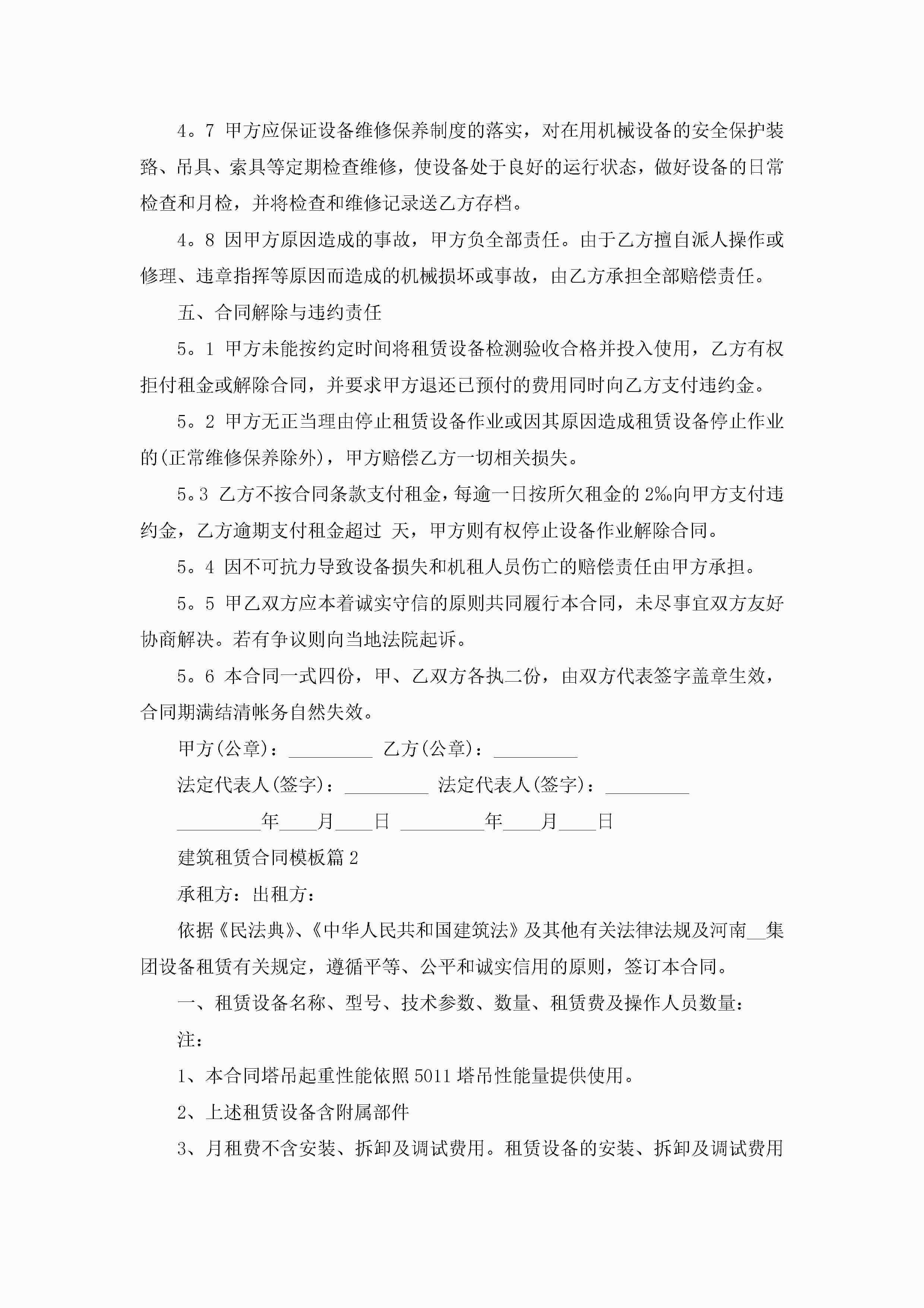 建筑租赁合同模板5篇jugei3月23日 01:42发布关注214 建筑租赁合同模板5篇此内容为付费资源,请付费后查看¥10.9 单篇文档限时特惠¥15个人会员开通企业会员开通立即下载无需登陆!可直接快捷下载单个模板付费资源© 版权声明THE ENDWord模板# 实用文档# 合同模板# 租赁合同# 建筑租赁合同模板 如有问题,可点击最底部“联系我们”联系客服 分享QQ空间微博QQ好友海报分享复制链接收藏