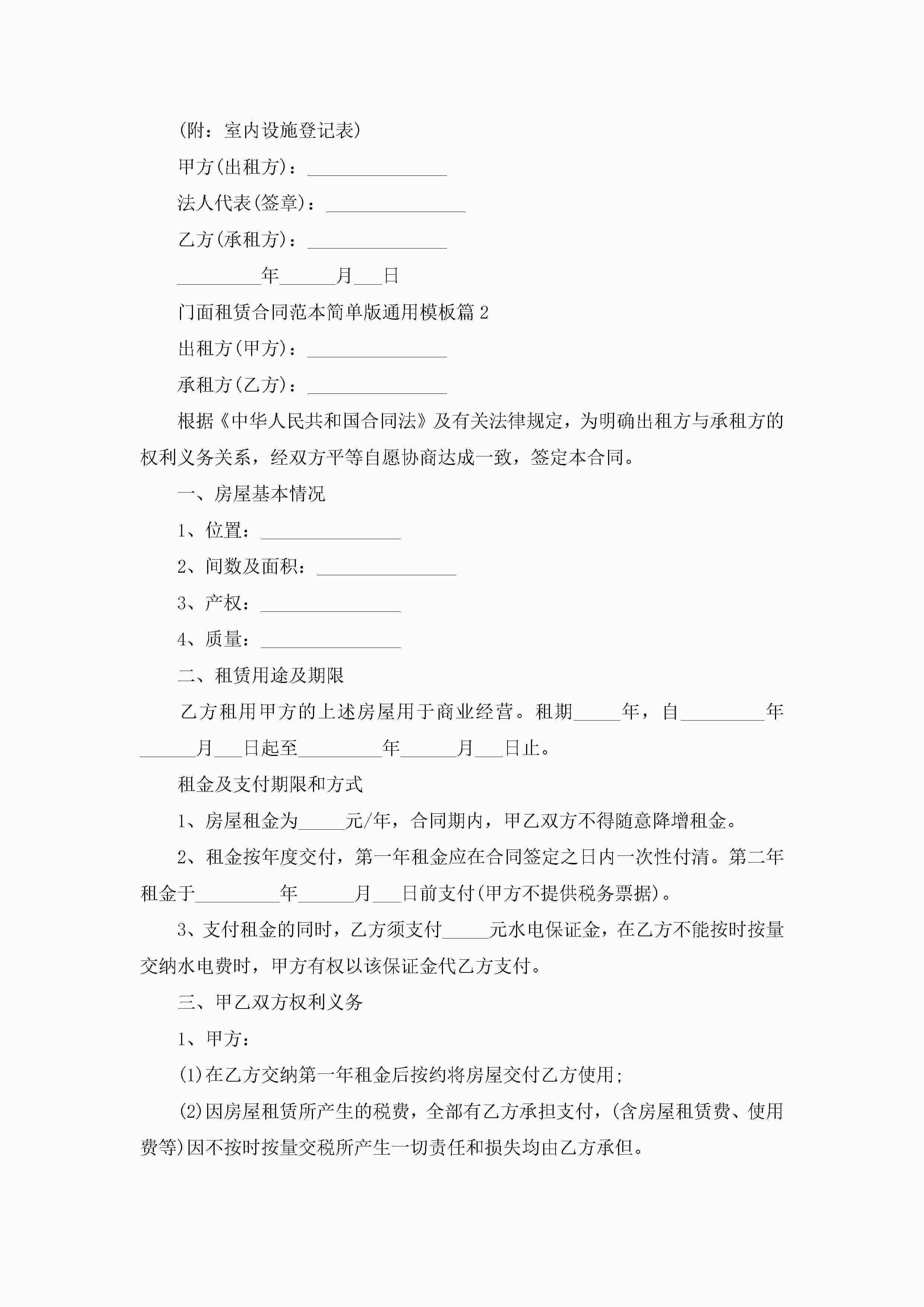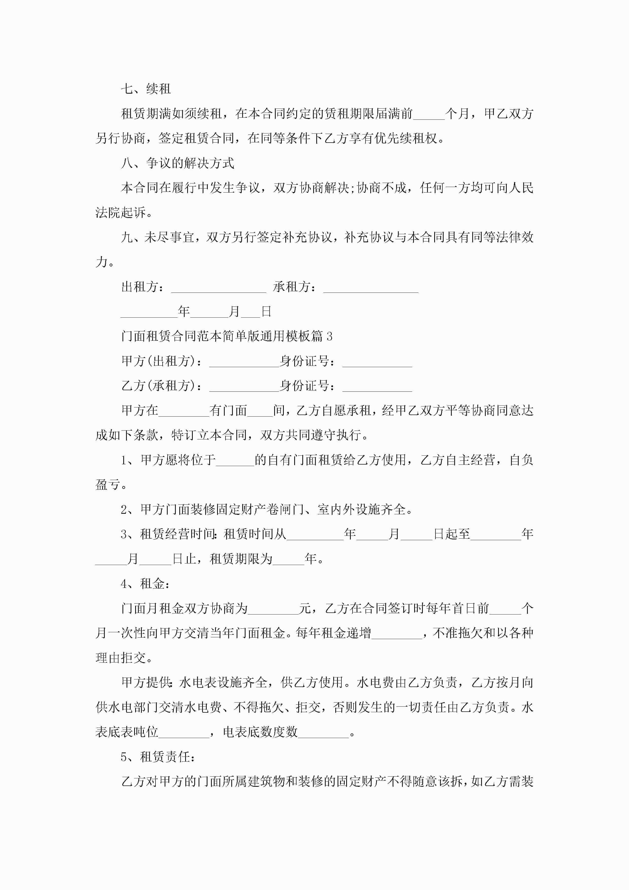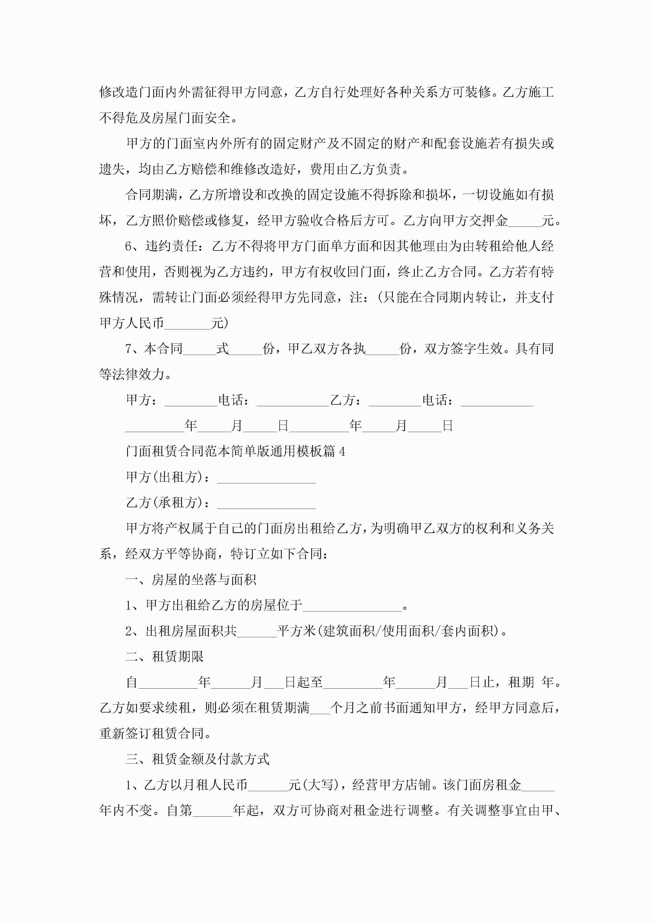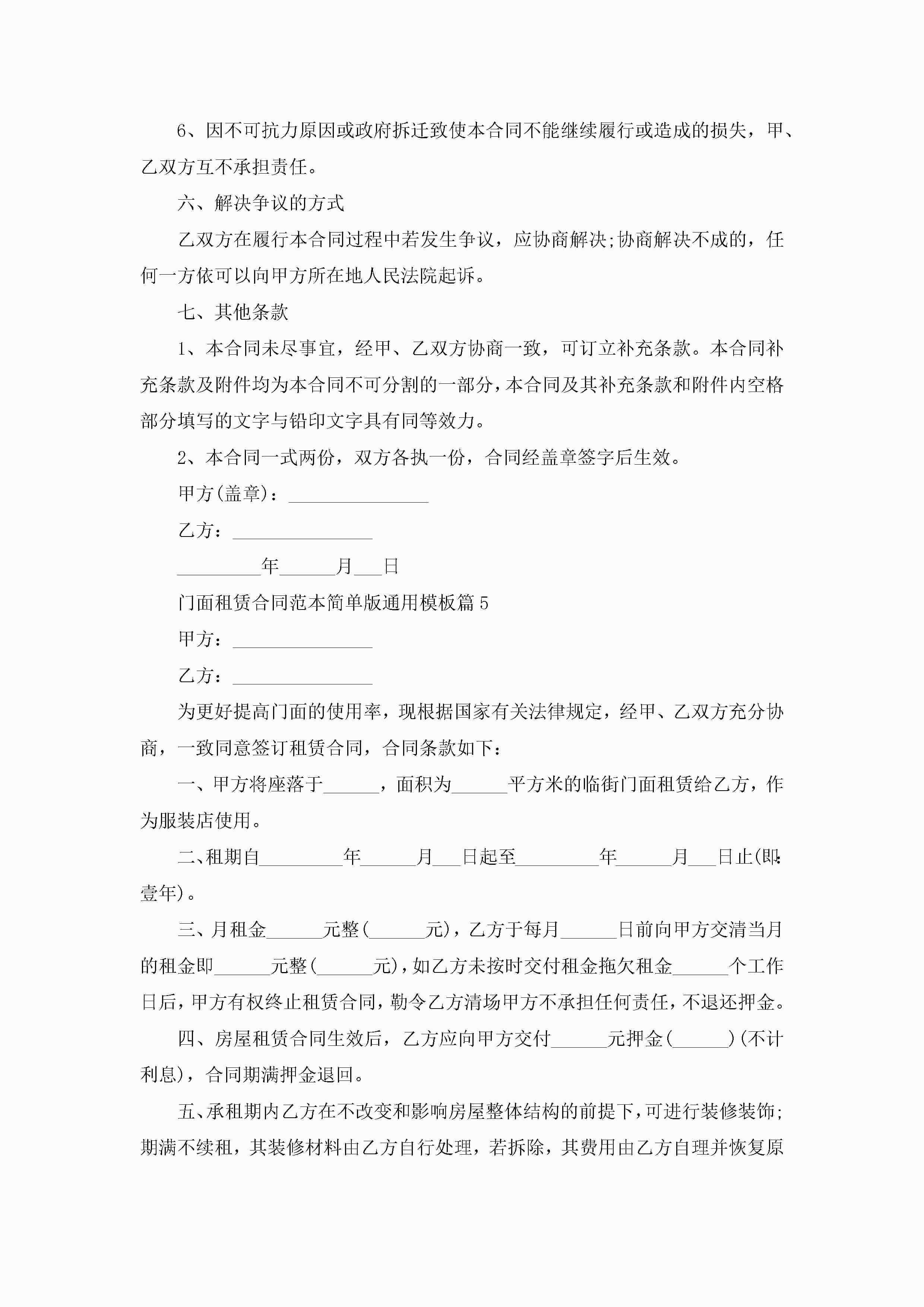 门面租赁合同最新范本简单版通用模板jugei3月23日 01:42发布关注380 门面租赁合同最新范本简单版通用模板此内容为付费资源,请付费后查看¥10.9 单篇文档限时特惠¥15个人会员开通企业会员开通立即下载无需登陆!可直接快捷下载单个模板付费资源© 版权声明THE ENDWord模板# 实用文档# 实用模板# 合同模板# 租赁合同 如有问题,可点击最底部“联系我们”联系客服 分享QQ空间微博QQ好友海报分享复制链接收藏