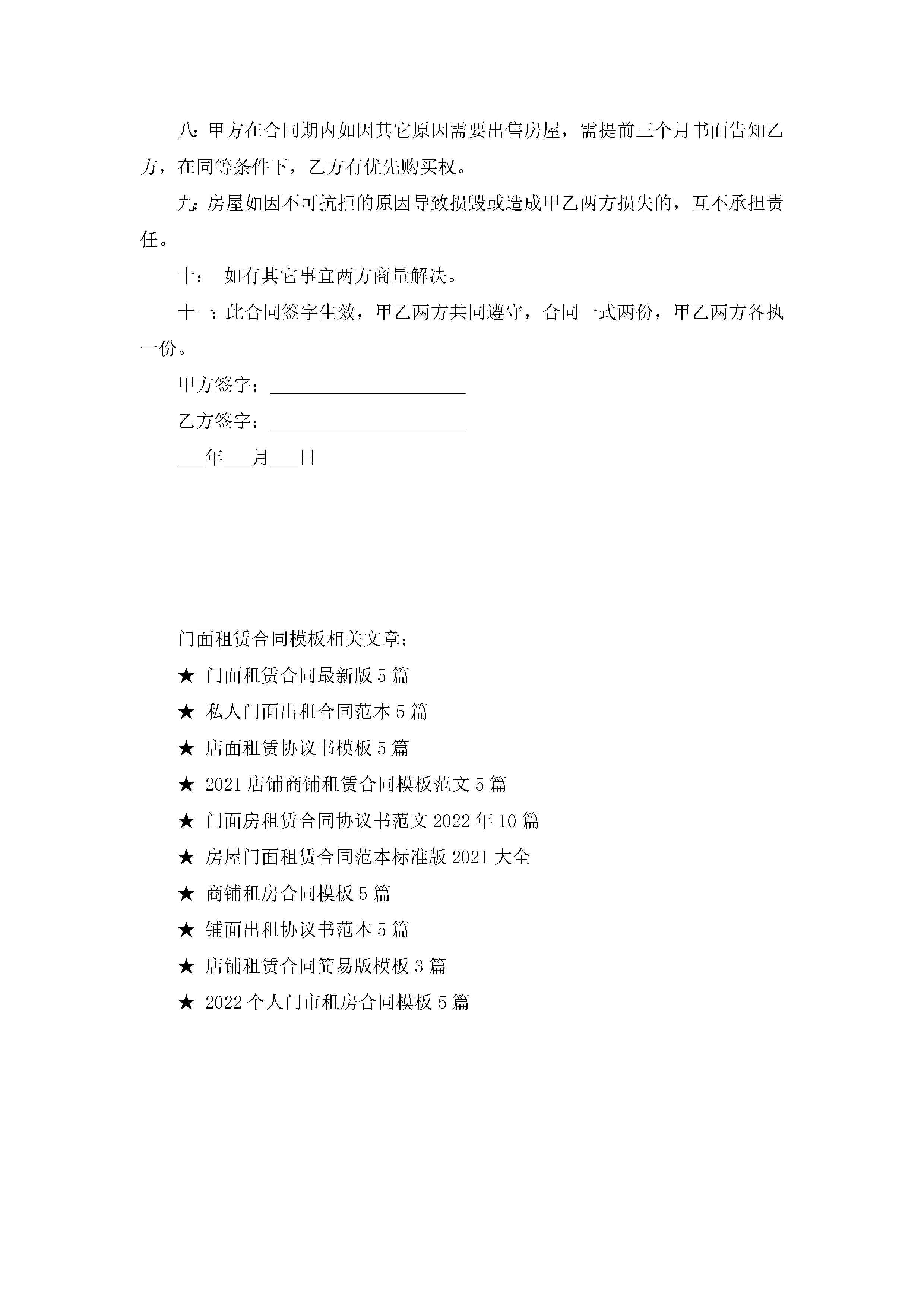 门面租赁合同最新模板jugei3月23日 01:42发布关注187 门面租赁合同最新模板此内容为付费资源,请付费后查看¥10.9 单篇文档限时特惠¥15个人会员开通企业会员开通立即下载无需登陆!可直接快捷下载单个模板付费资源© 版权声明THE ENDWord模板# 实用文档# 实用模板# 合同模板# 租赁合同 如有问题,可点击最底部“联系我们”联系客服 分享QQ空间微博QQ好友海报分享复制链接收藏