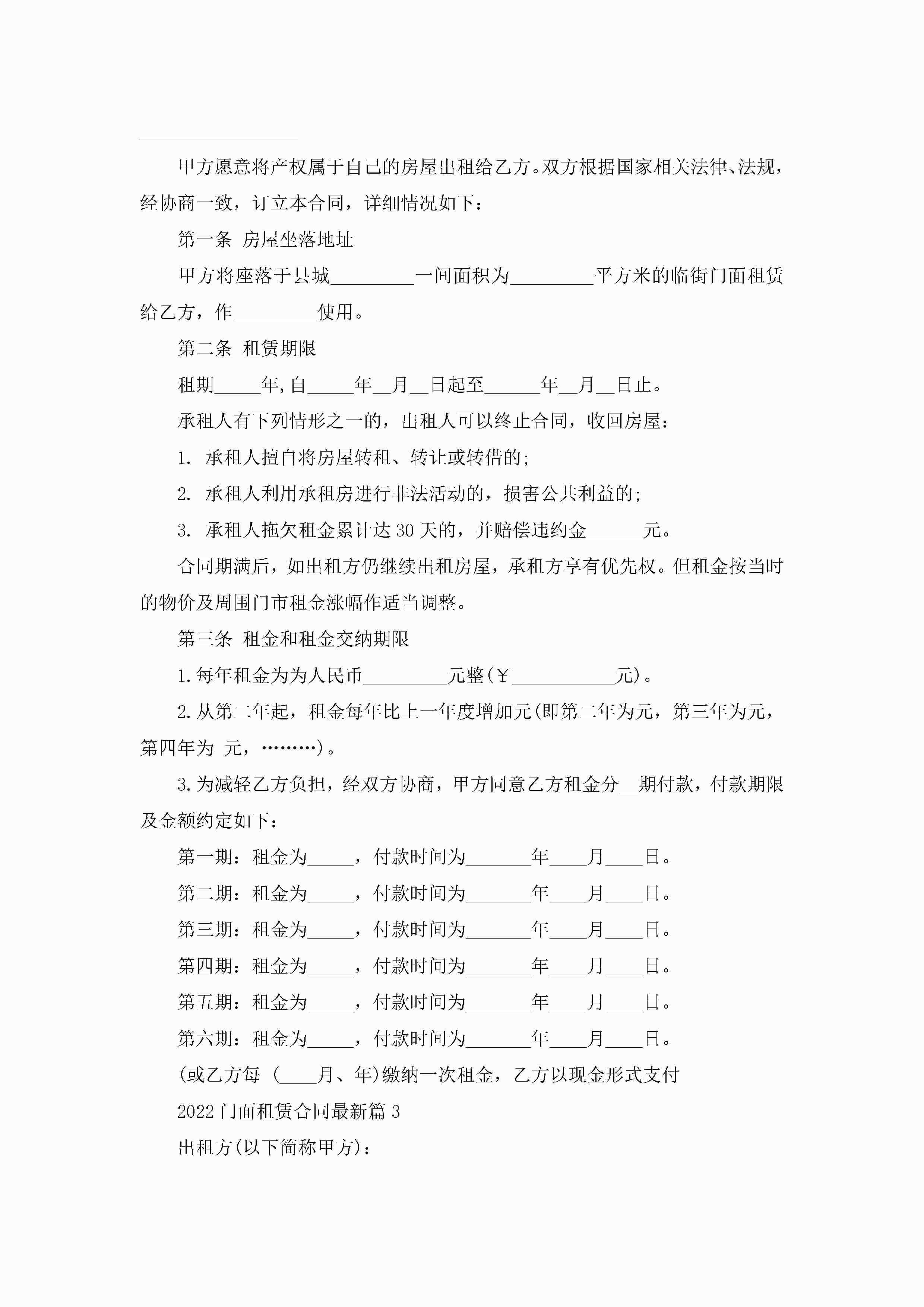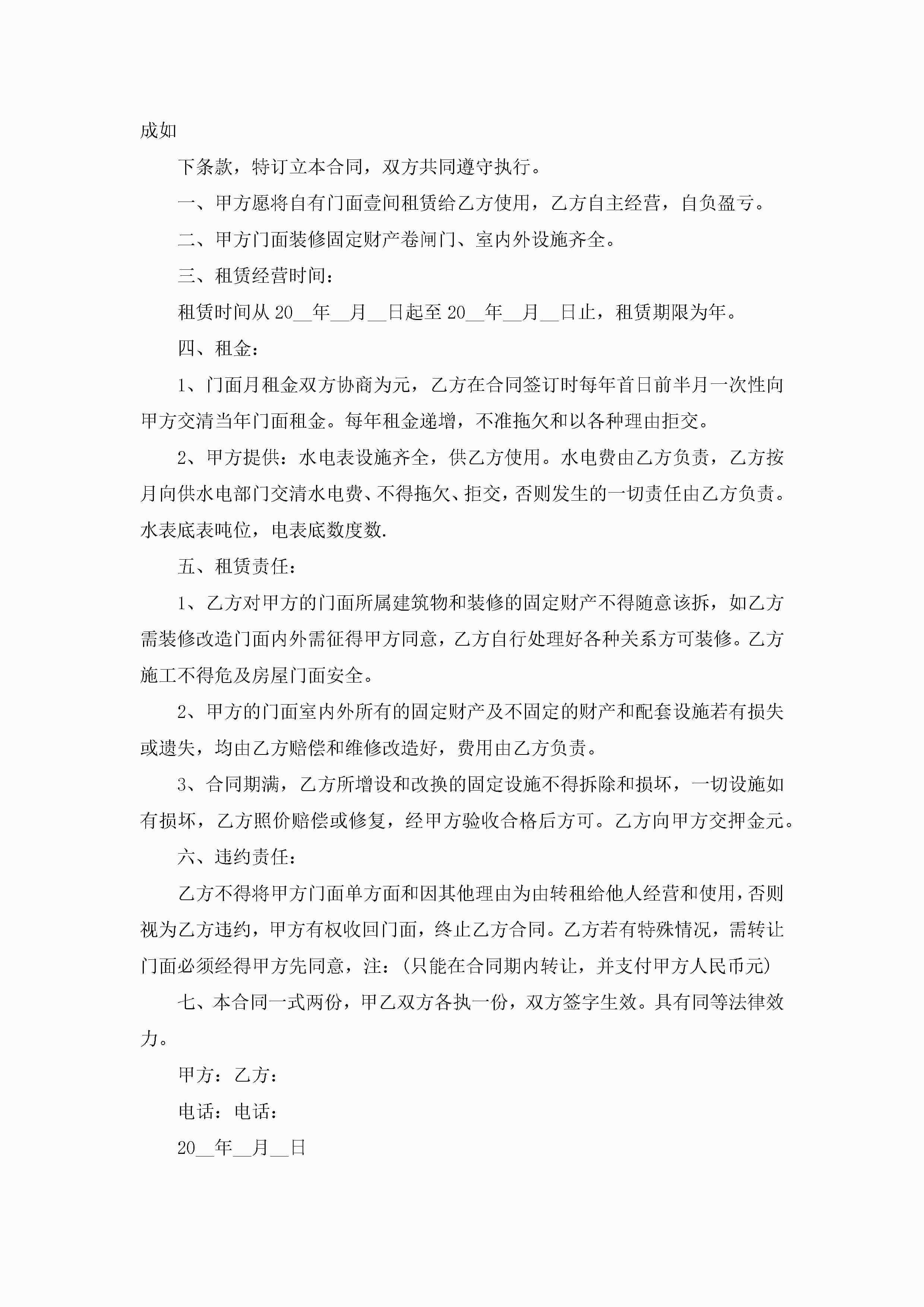 2022门面租赁合同最新模板jugei3月23日 01:42发布关注190 2022门面租赁合同最新模板此内容为付费资源,请付费后查看¥10.9 单篇文档限时特惠¥15个人会员开通企业会员开通立即下载无需登陆!可直接快捷下载单个模板付费资源© 版权声明THE ENDWord模板# 实用文档# 实用模板# 合同模板# 租赁合同 如有问题,可点击最底部“联系我们”联系客服 分享QQ空间微博QQ好友海报分享复制链接收藏