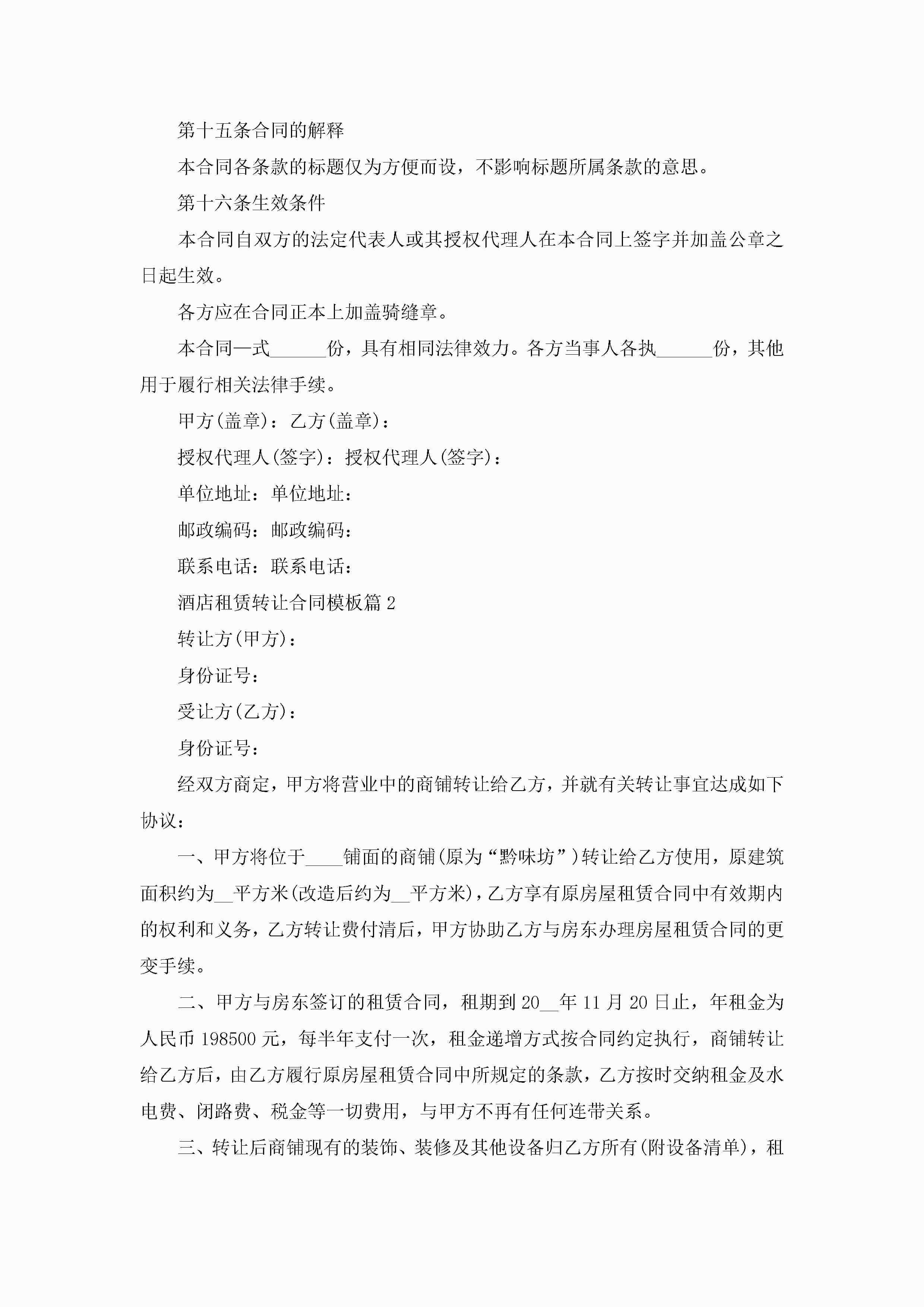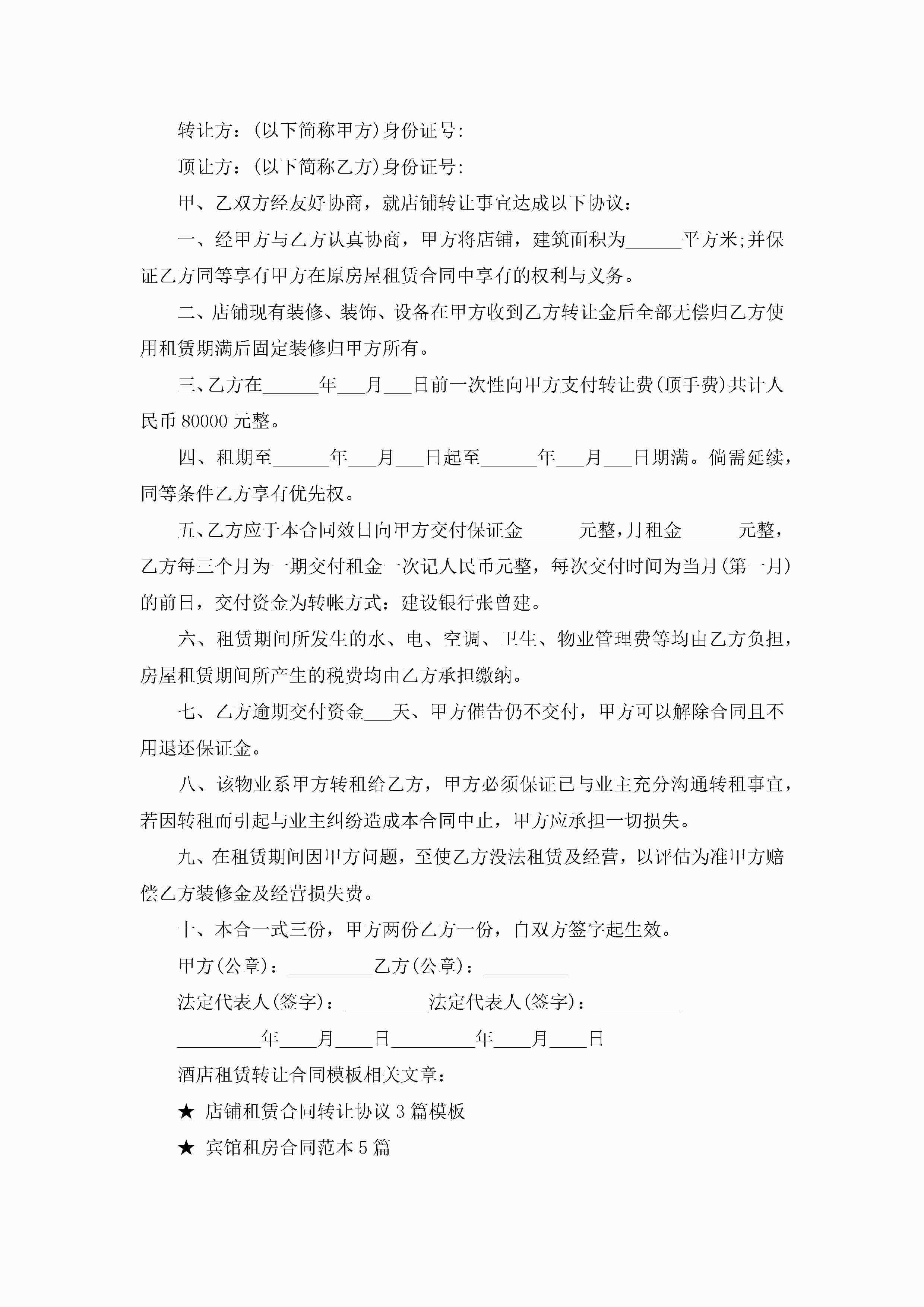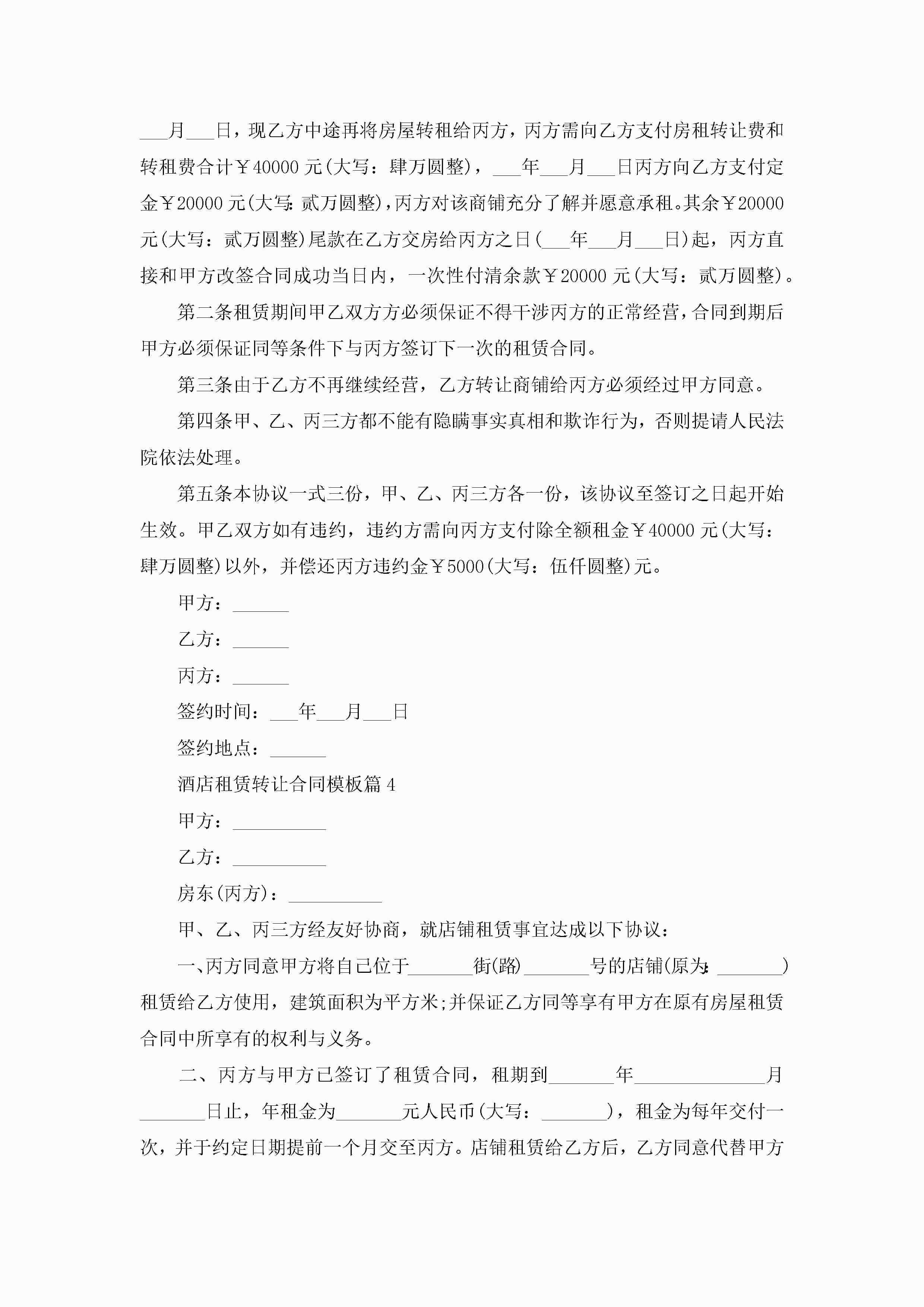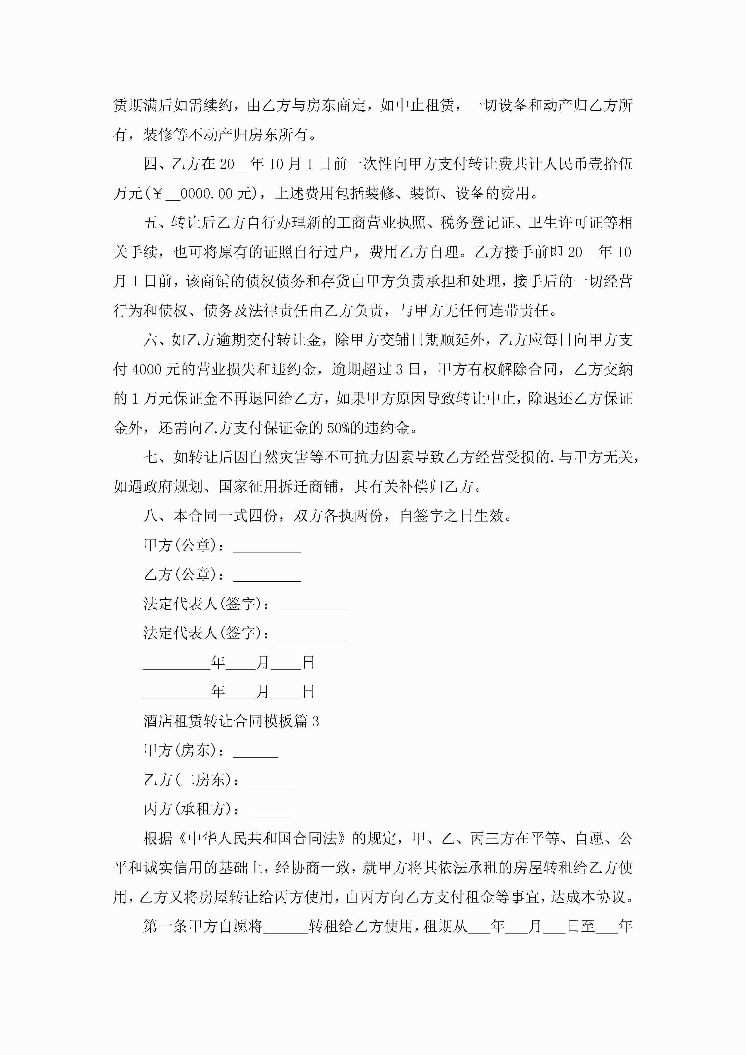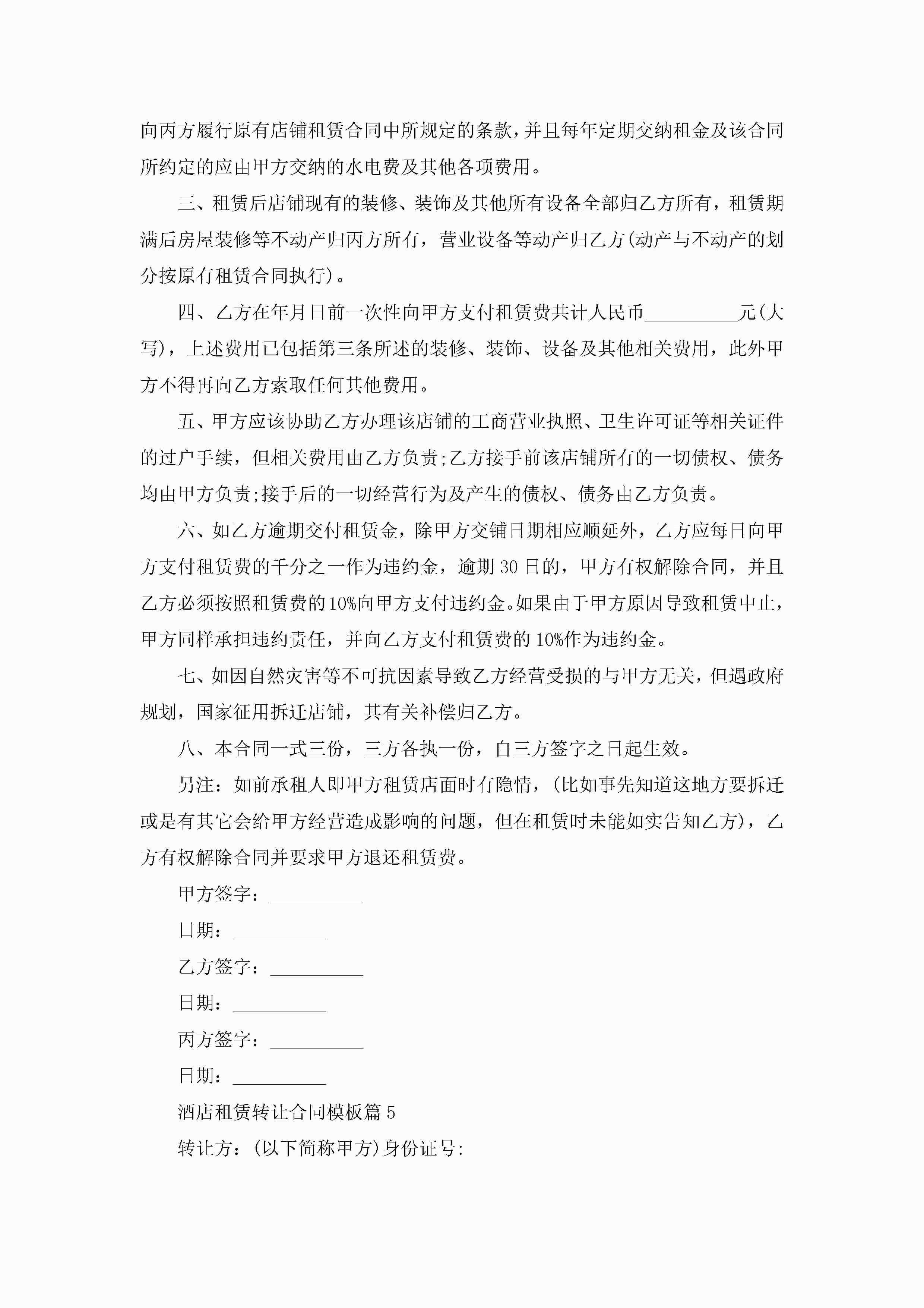 酒店租赁转让合同模板5篇jugei3月23日 01:42发布关注187 酒店租赁转让合同模板5篇此内容为付费资源,请付费后查看¥10.9 单篇文档限时特惠¥15个人会员开通企业会员开通立即下载无需登陆!可直接快捷下载单个模板付费资源© 版权声明THE ENDWord模板# 实用文档# 合同模板# 租赁合同# 酒店租赁转让合同模板 如有问题,可点击最底部“联系我们”联系客服 分享QQ空间微博QQ好友海报分享复制链接收藏