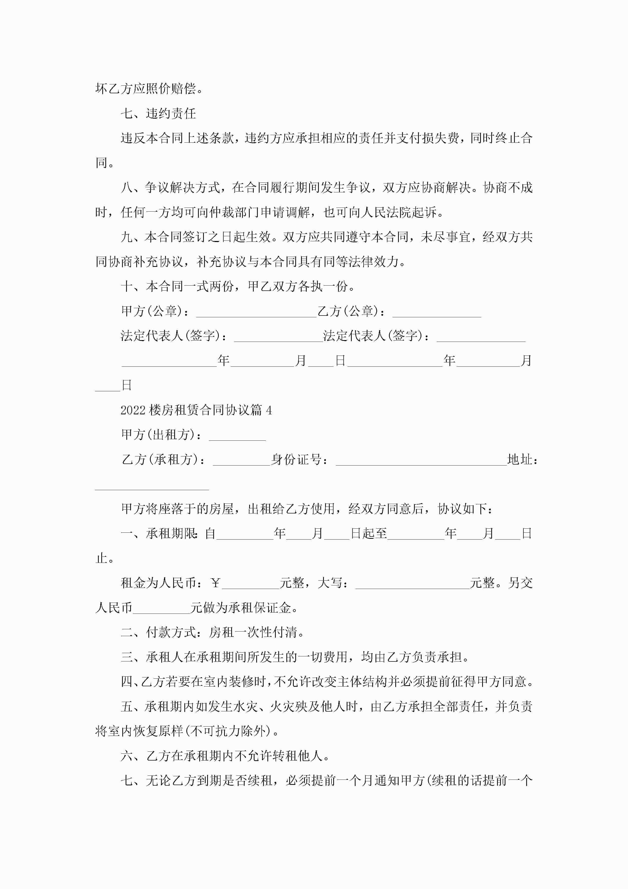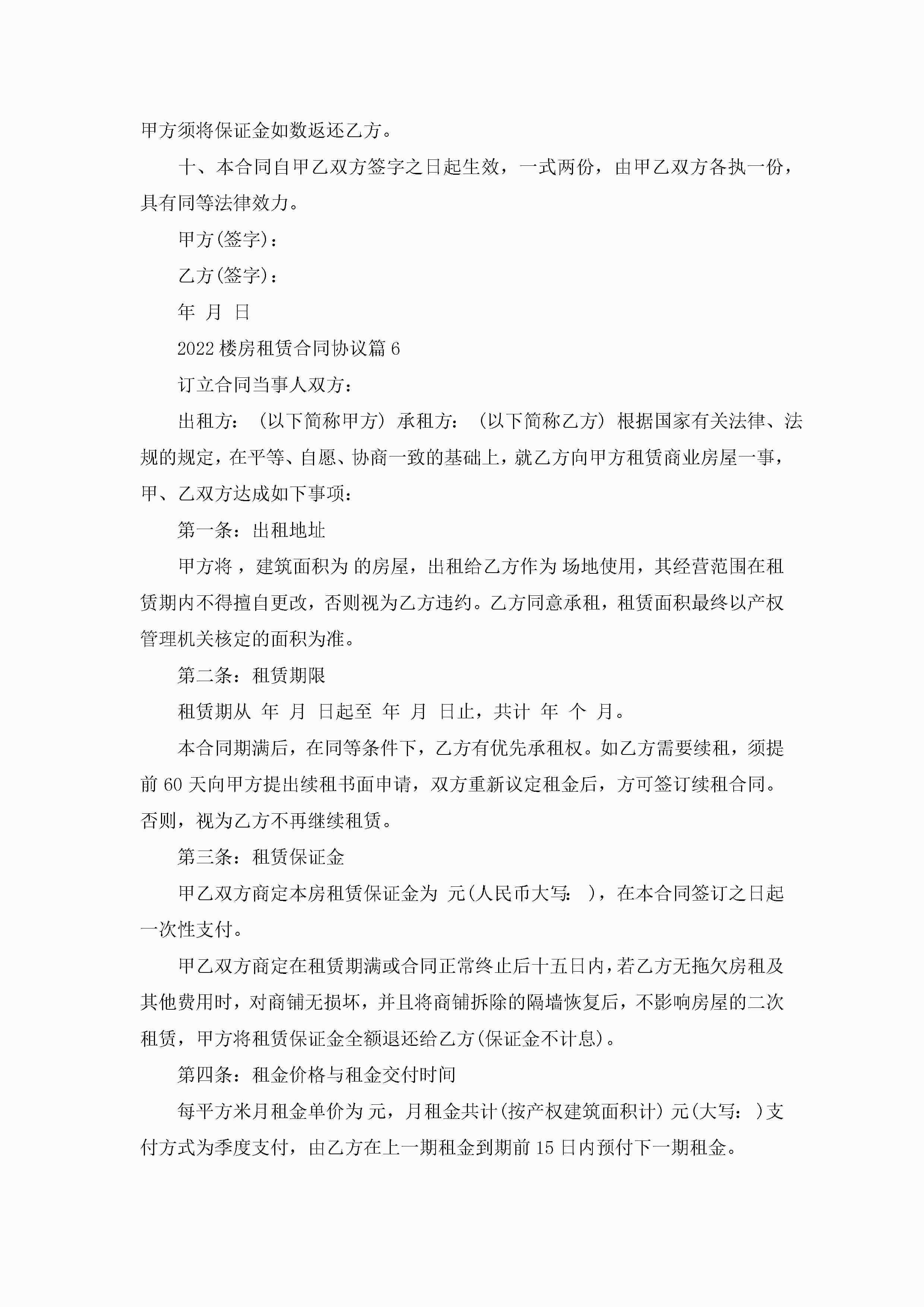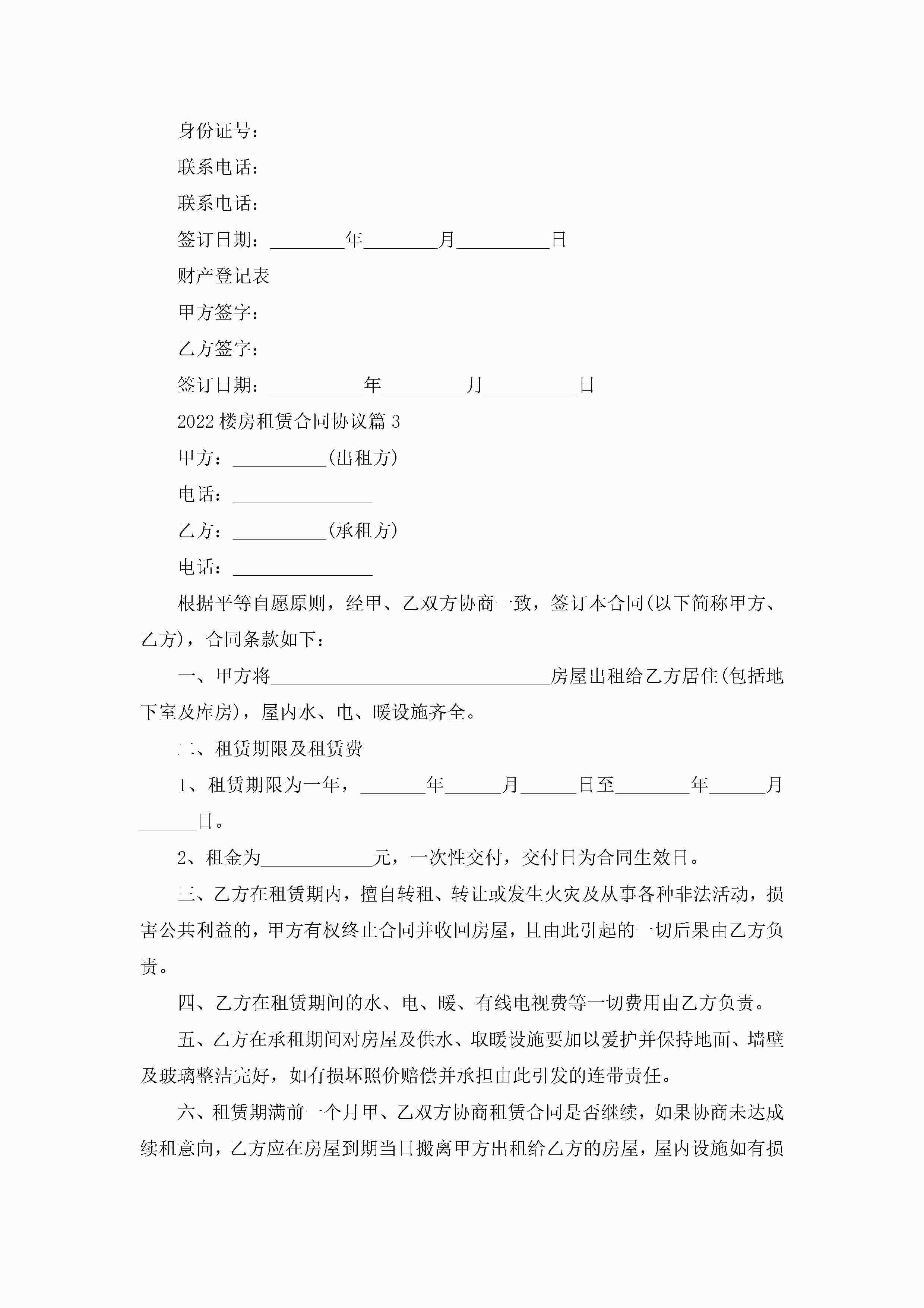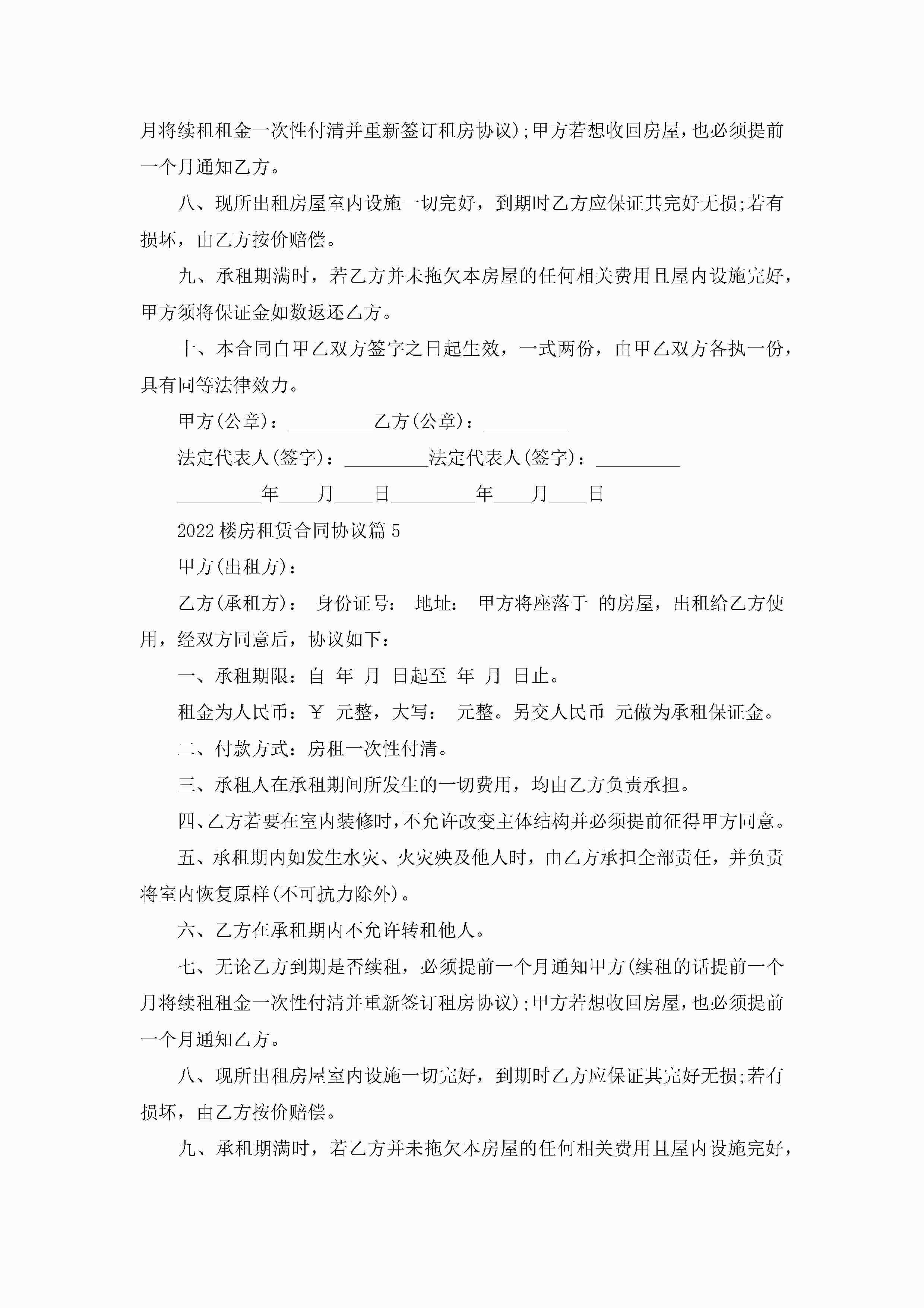关于2022楼房租赁合同协议8篇jugei3月23日 01:42发布关注187 关于2022楼房租赁合同协议8篇此内容为付费资源,请付费后查看¥10.9 单篇文档限时特惠¥15个人会员开通企业会员开通立即下载无需登陆!可直接快捷下载单个模板付费资源© 版权声明THE ENDWord模板# 实用文档# 合同模板# 租赁合同# 2022楼房租赁合同协议8篇 如有问题,可点击最底部“联系我们”联系客服 分享QQ空间微博QQ好友海报分享复制链接收藏