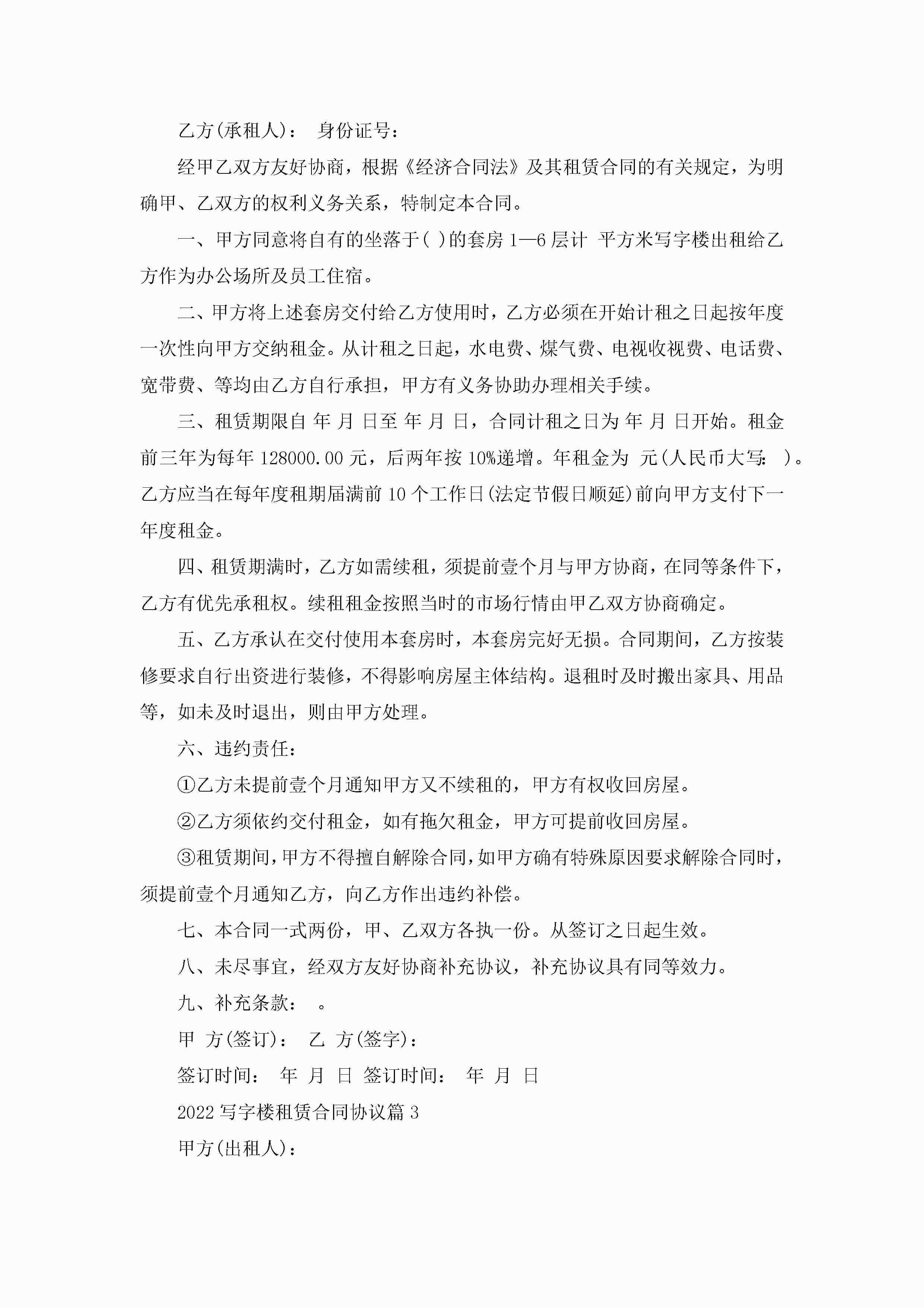 2022写字楼租赁合同协议5篇jugei3月23日 01:42发布关注211 2022写字楼租赁合同协议5篇此内容为付费资源,请付费后查看¥10.9 单篇文档限时特惠¥15个人会员开通企业会员开通立即下载无需登陆!可直接快捷下载单个模板付费资源© 版权声明THE ENDWord模板# 实用文档# 合同模板# 租赁合同# 2022写字楼租赁合同协议 如有问题,可点击最底部“联系我们”联系客服 分享QQ空间微博QQ好友海报分享复制链接收藏