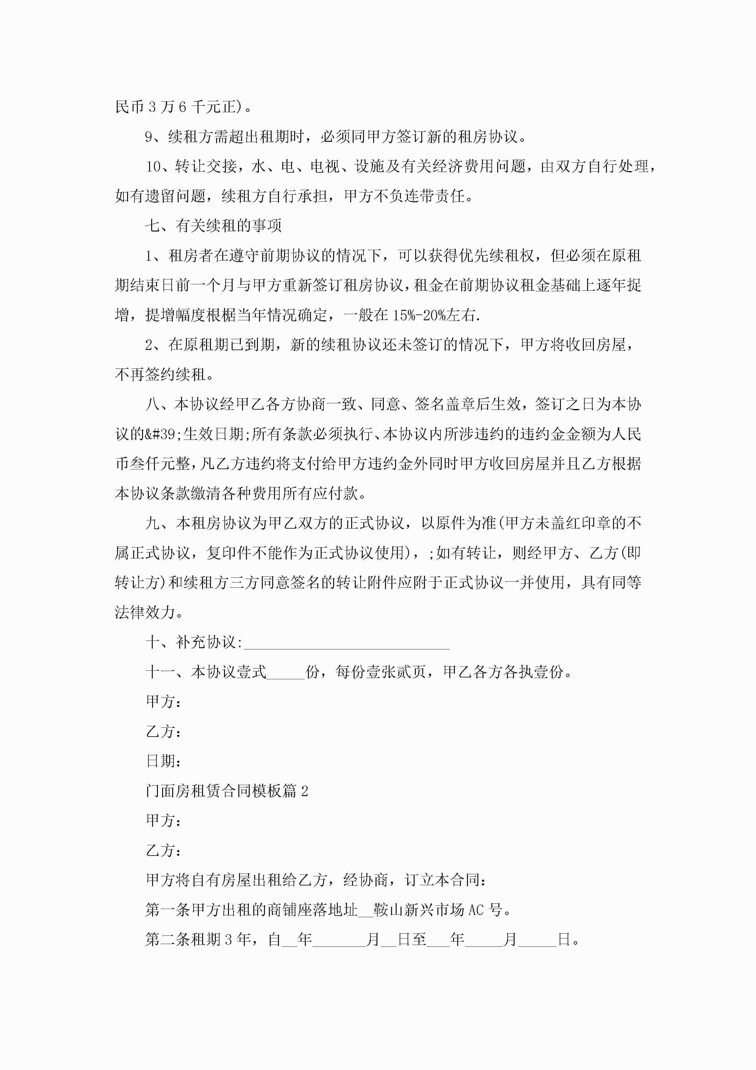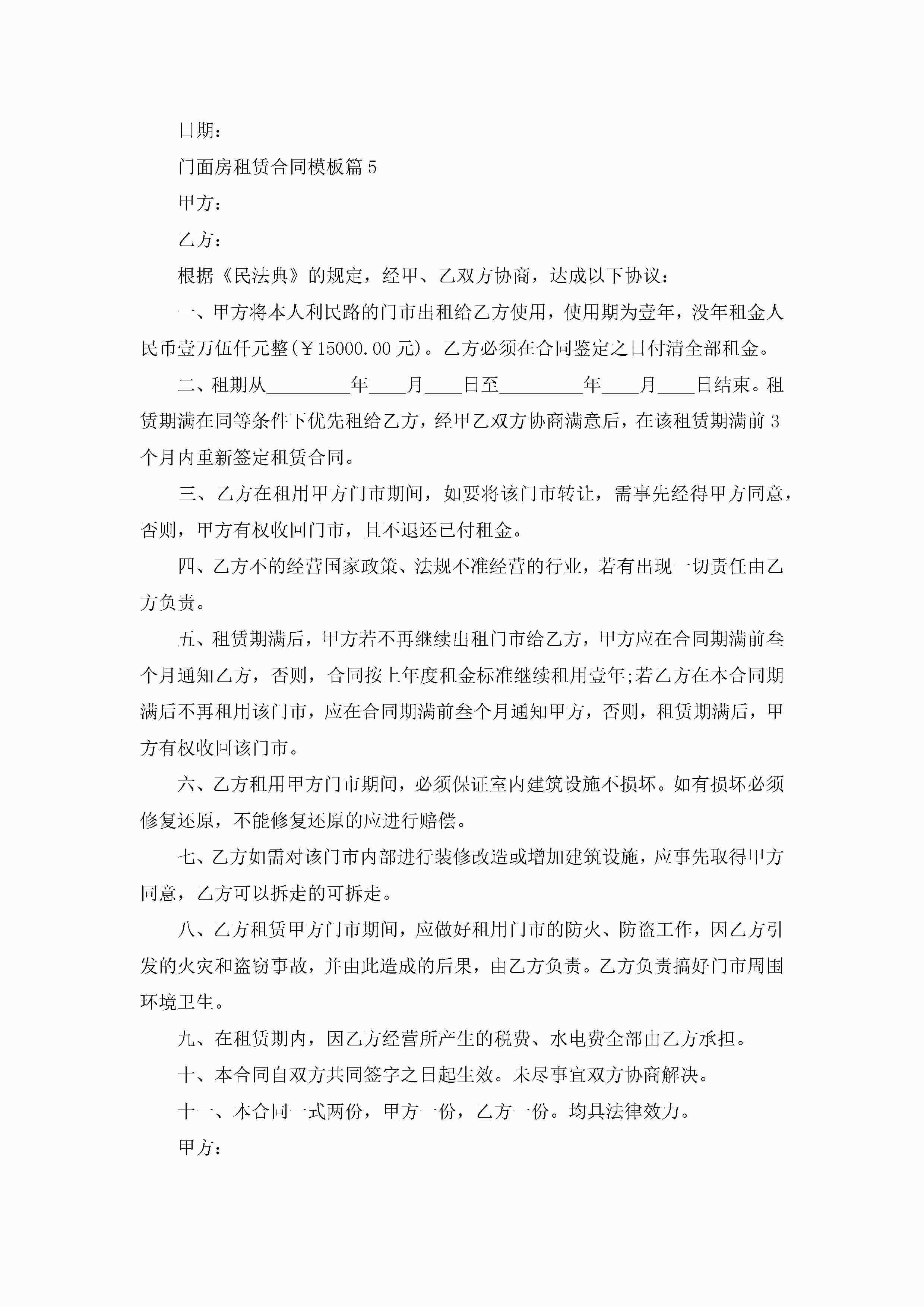 门面房租赁合同最新模板jugei3月23日 01:42发布关注401 门面房租赁合同最新模板此内容为付费资源,请付费后查看¥10.9 单篇文档限时特惠¥15个人会员开通企业会员开通立即下载无需登陆!可直接快捷下载单个模板付费资源© 版权声明THE ENDWord模板# 实用文档# 实用模板# 合同模板# 租赁合同 如有问题,可点击最底部“联系我们”联系客服 分享QQ空间微博QQ好友海报分享复制链接收藏
