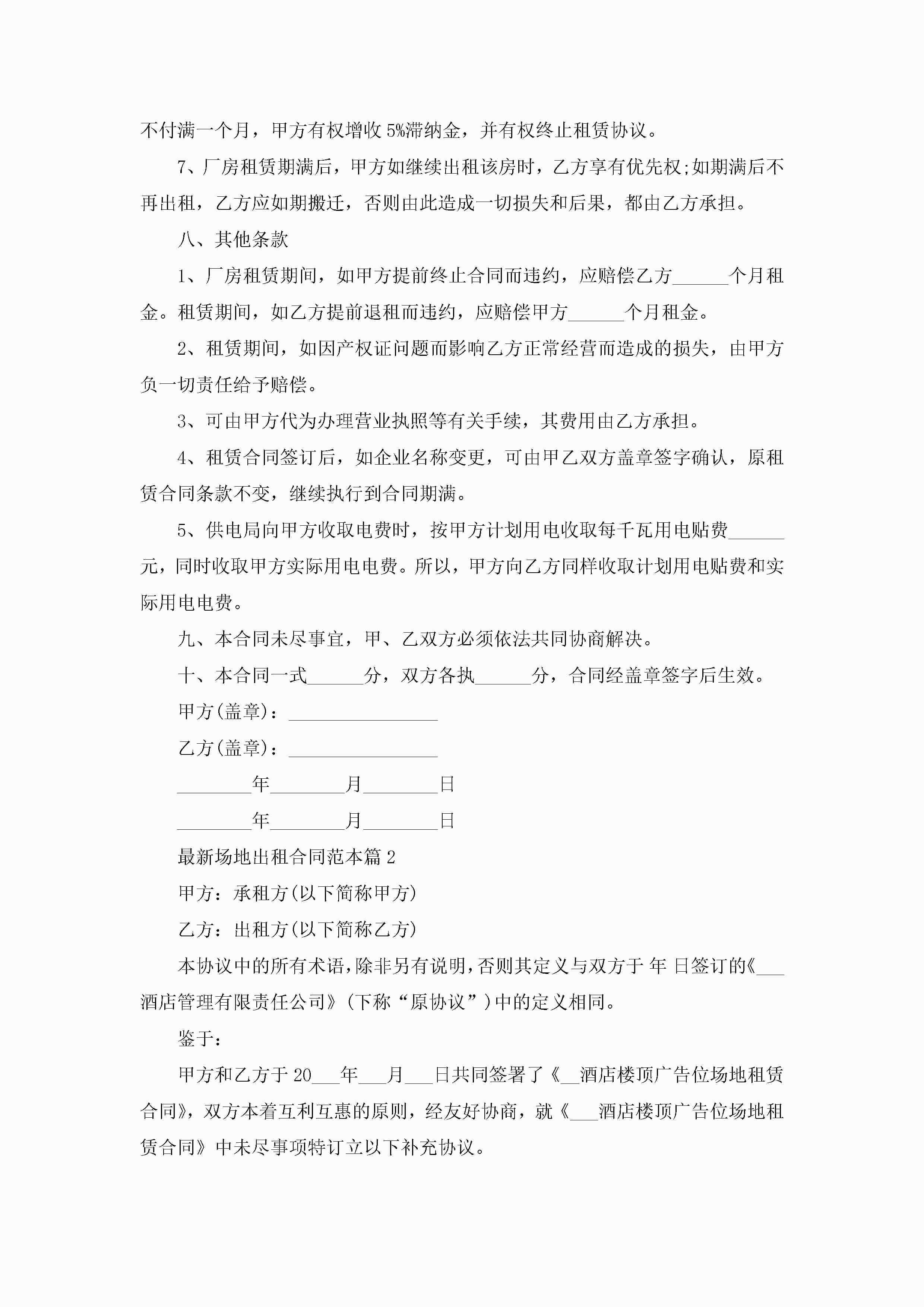 最新场地出租合同范本5篇jugei3月23日 01:42发布关注193 最新场地出租合同范本5篇此内容为付费资源,请付费后查看¥10.9 单篇文档限时特惠¥15个人会员开通企业会员开通立即下载无需登陆!可直接快捷下载单个模板付费资源© 版权声明THE ENDWord模板# 实用文档# 实用模板# 合同模板# 租赁合同 如有问题,可点击最底部“联系我们”联系客服 分享QQ空间微博QQ好友海报分享复制链接收藏