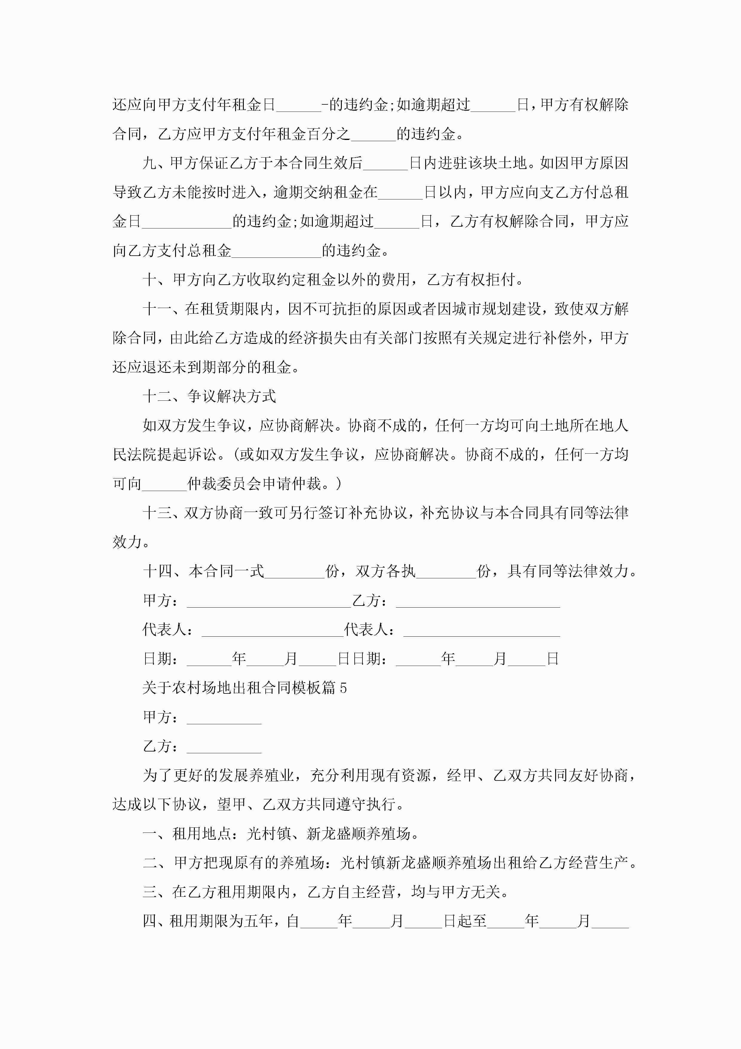 关于农村场地出租合同模板5篇(通用)jugei3月23日 01:42发布关注184 关于农村场地出租合同模板5篇(通用)此内容为付费资源,请付费后查看¥10.9 单篇文档限时特惠¥15个人会员开通企业会员开通立即下载无需登陆!可直接快捷下载单个模板付费资源© 版权声明THE ENDWord模板# 实用文档# 实用模板# 合同模板# 租赁合同 如有问题,可点击最底部“联系我们”联系客服 分享QQ空间微博QQ好友海报分享复制链接收藏