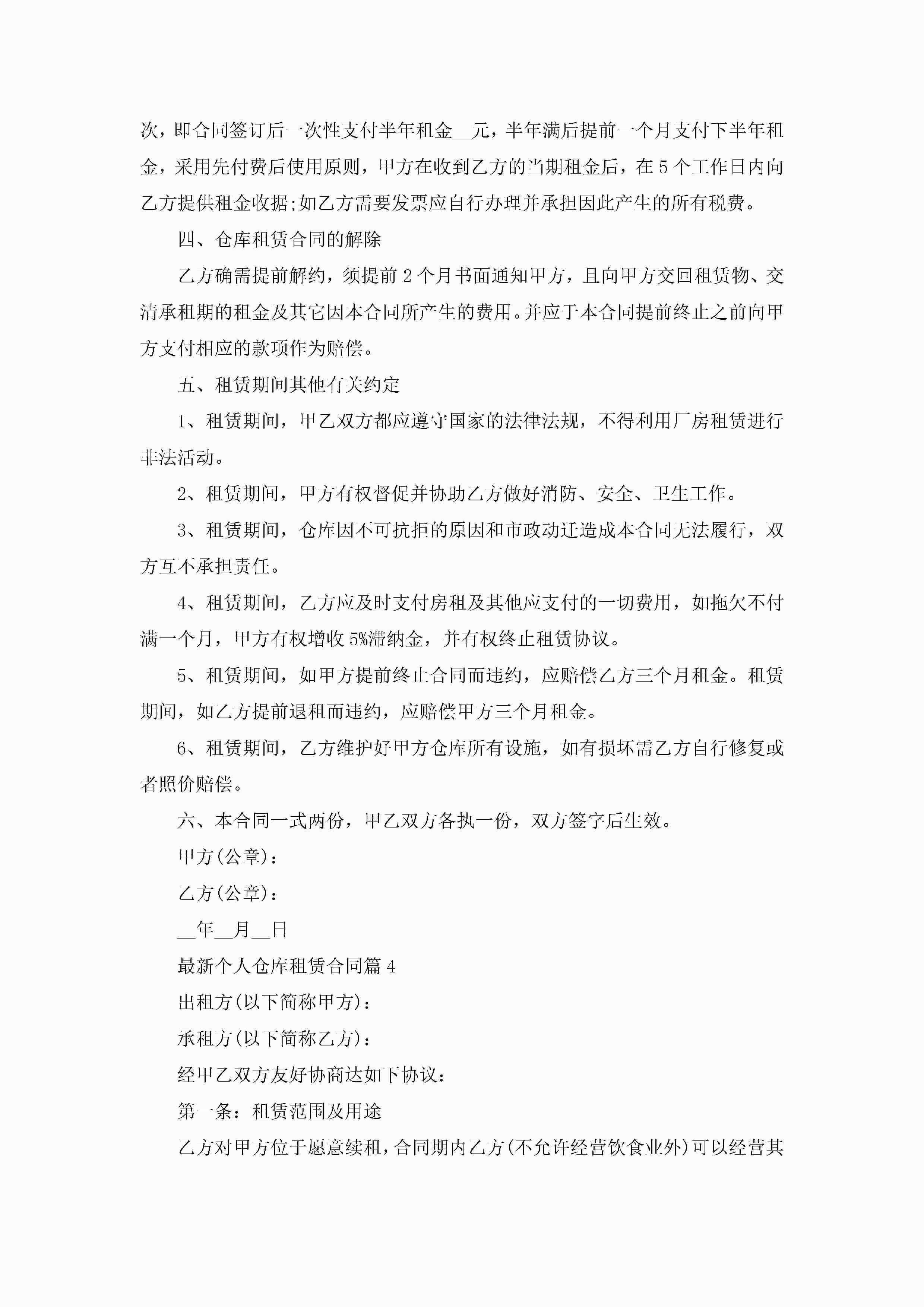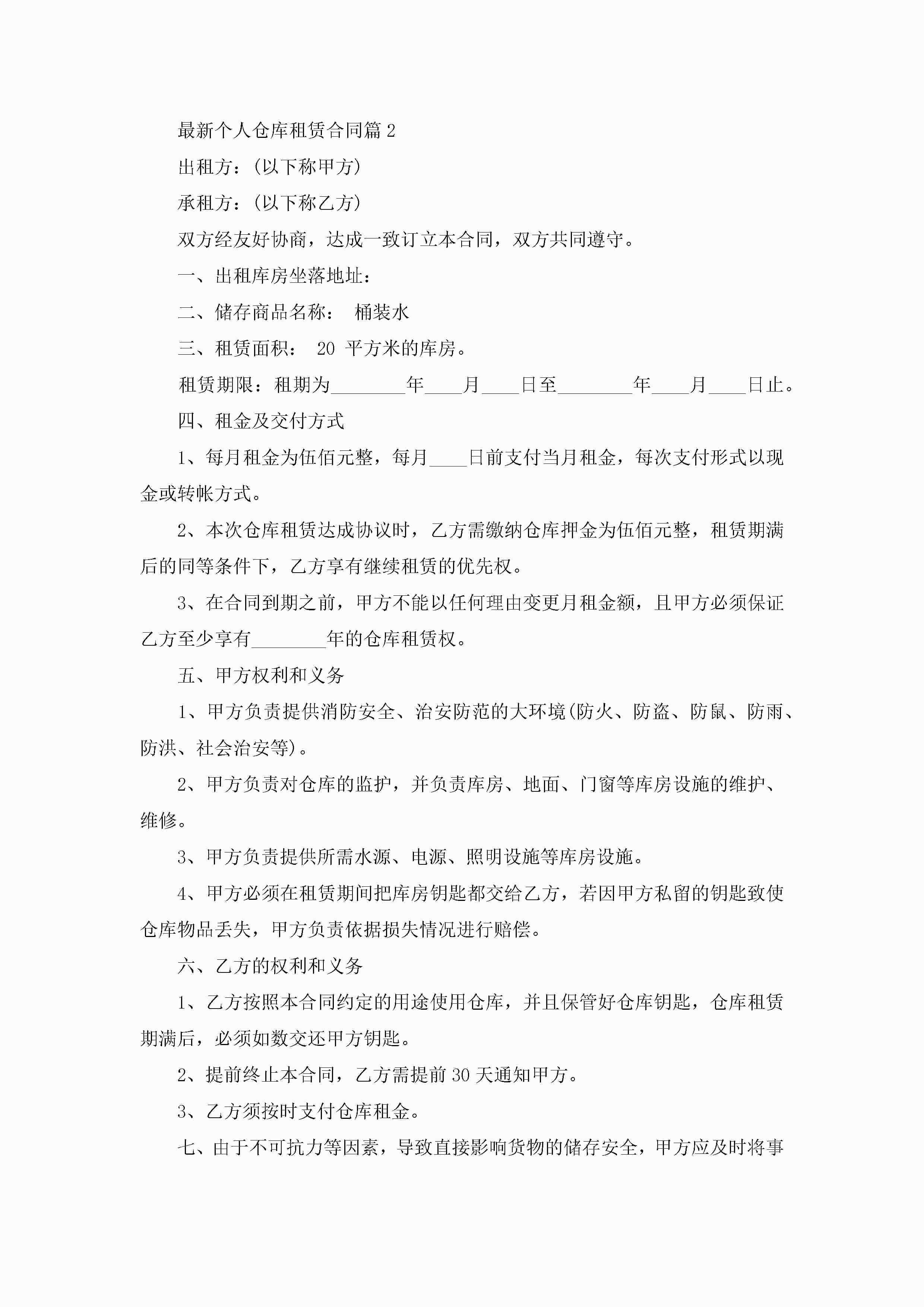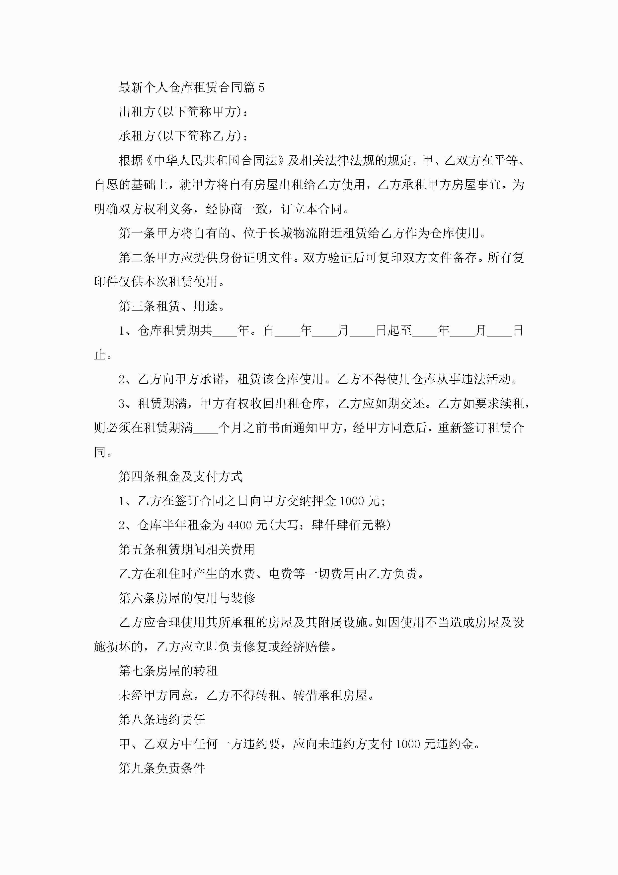 最新个人仓库租赁合同5篇jugei3月23日 01:42发布关注188 最新个人仓库租赁合同5篇此内容为付费资源,请付费后查看¥10.9 单篇文档限时特惠¥15个人会员开通企业会员开通立即下载无需登陆!可直接快捷下载单个模板付费资源© 版权声明THE ENDWord模板# 实用文档# 实用模板# 合同模板# 租赁合同 如有问题,可点击最底部“联系我们”联系客服 分享QQ空间微博QQ好友海报分享复制链接收藏
