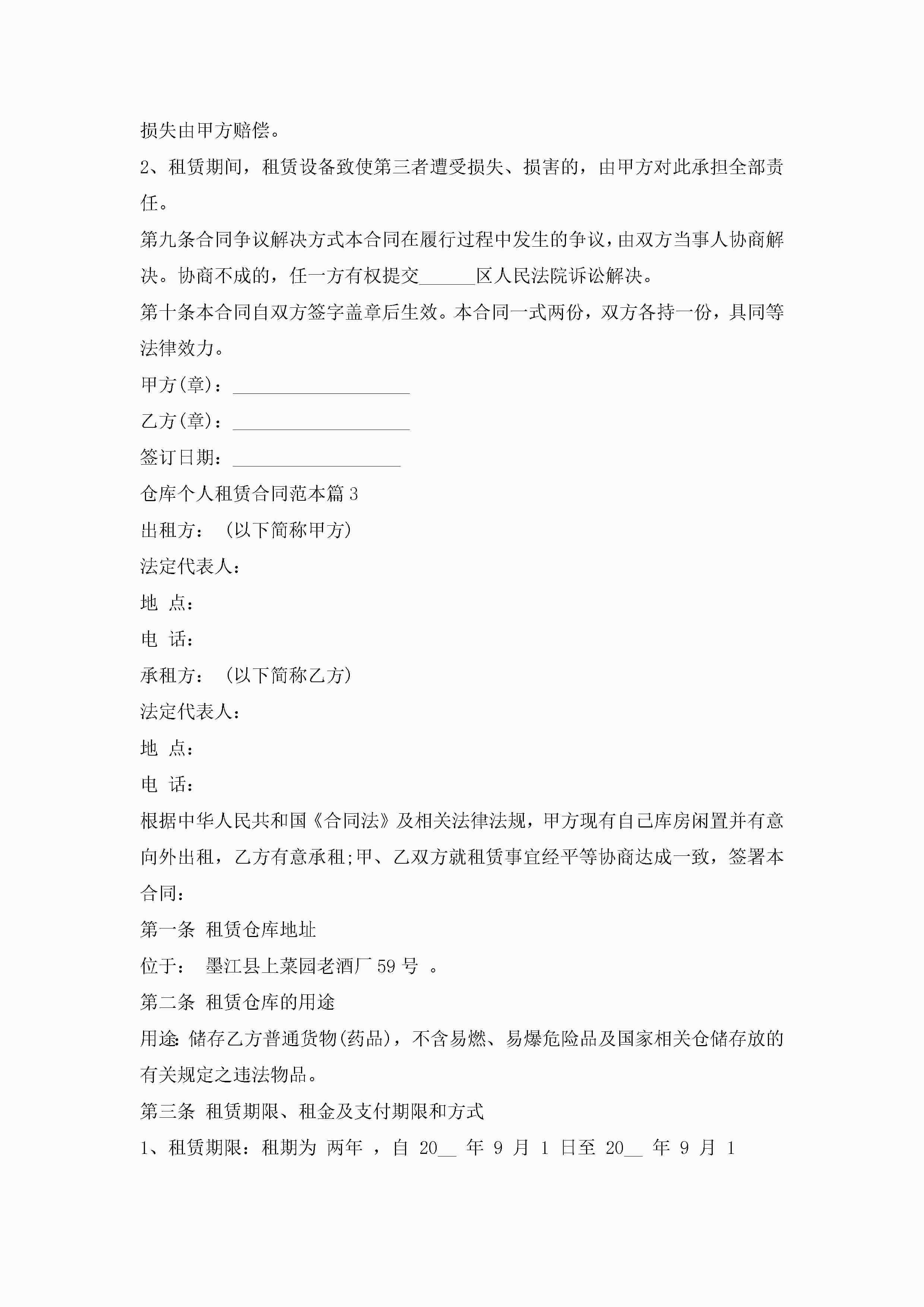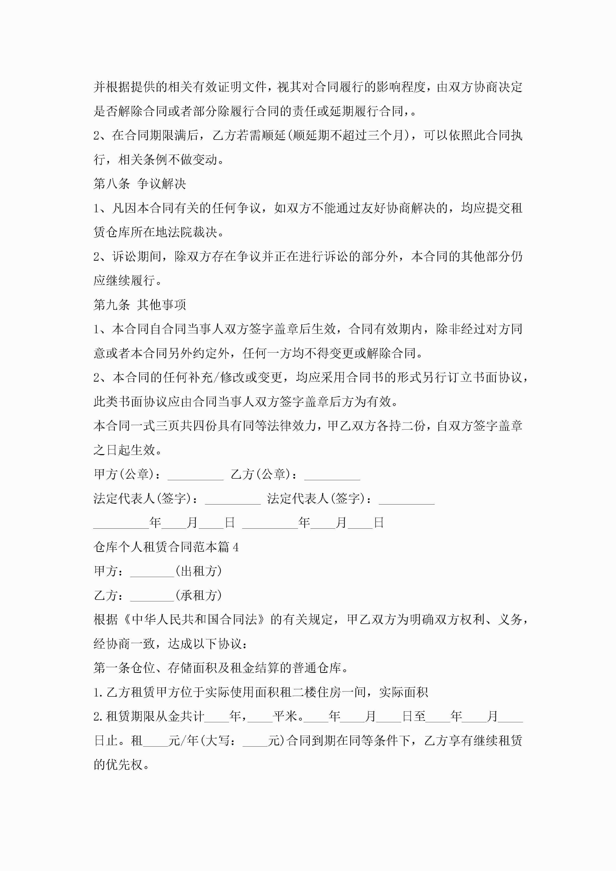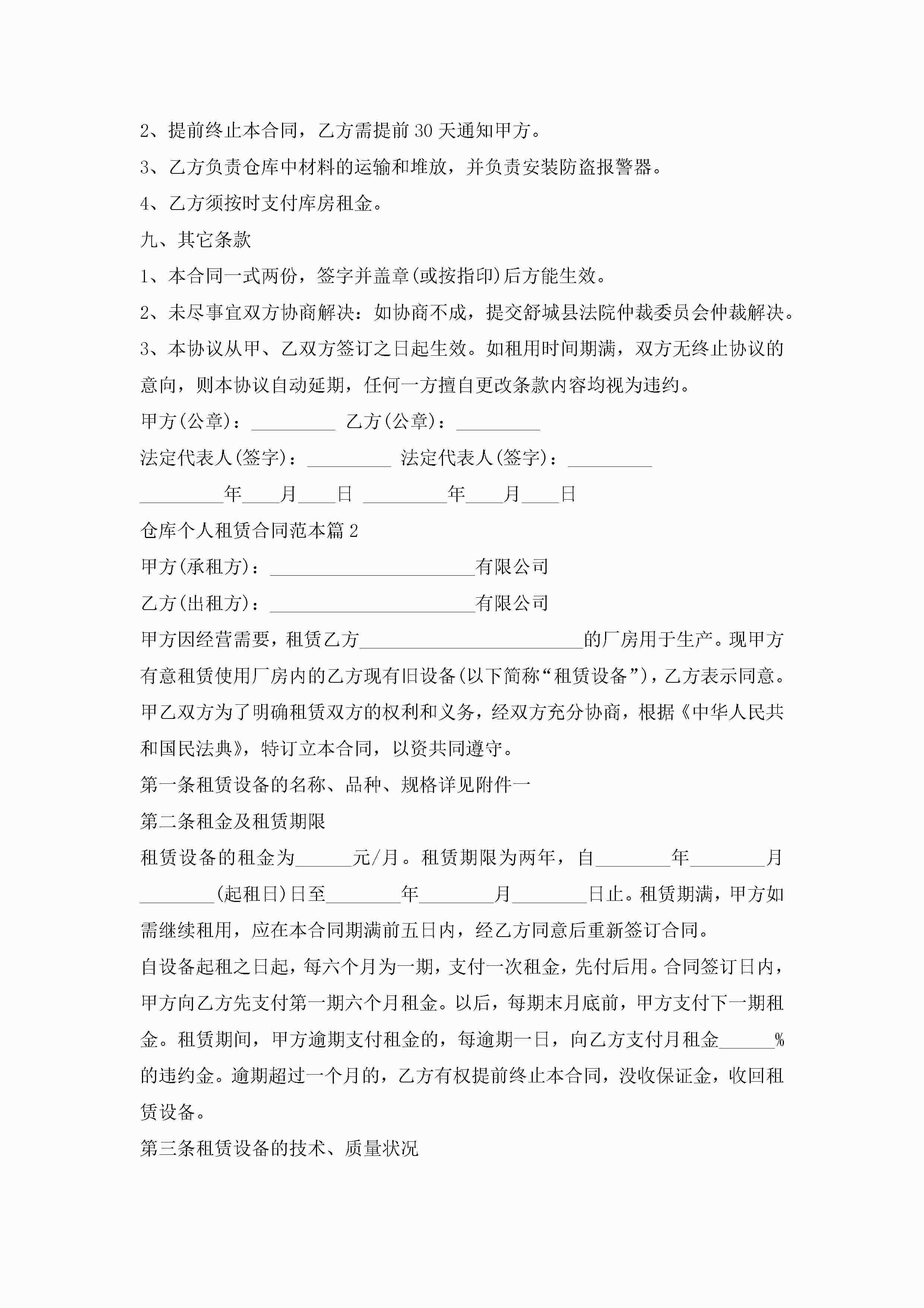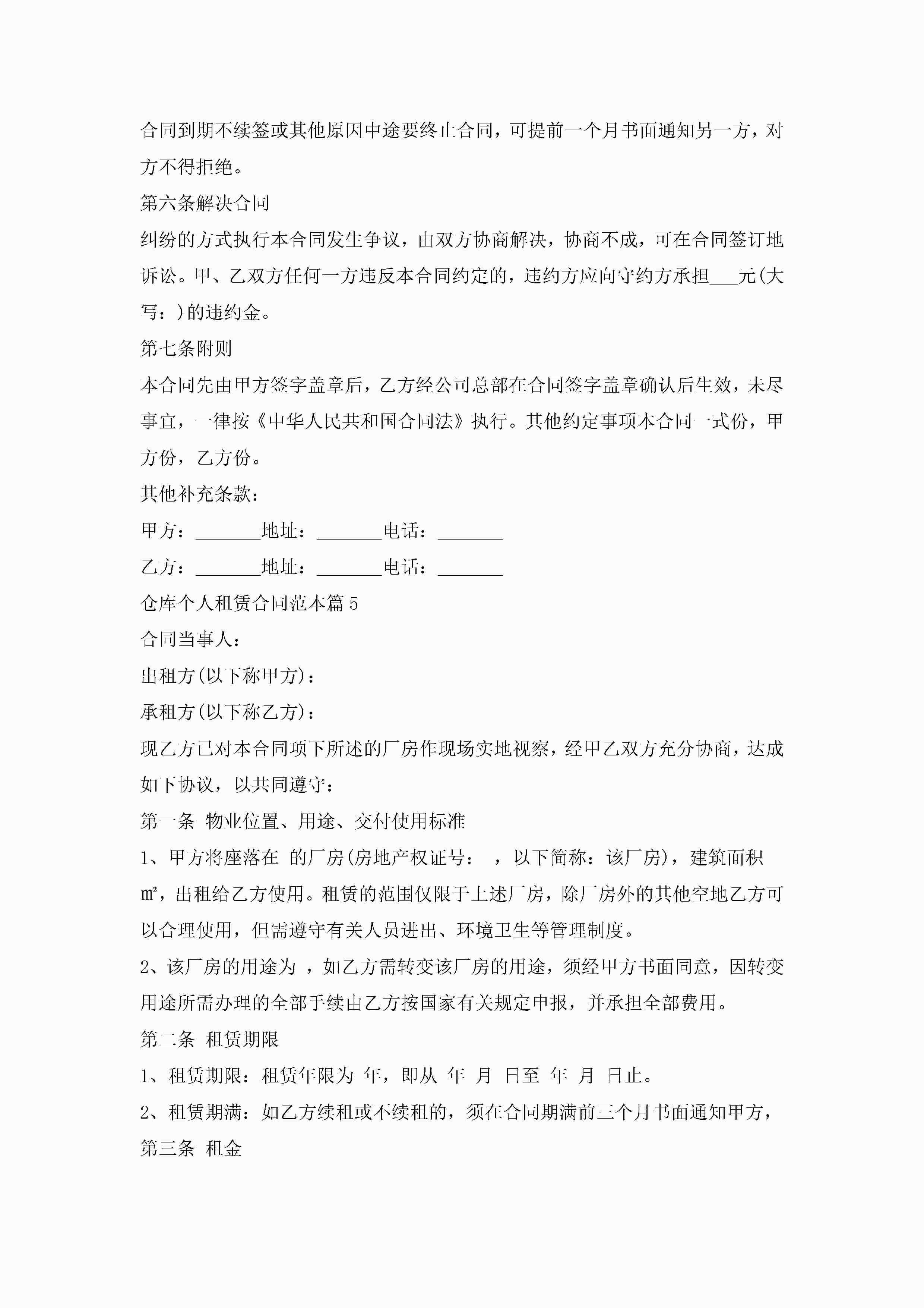 仓库个人租赁合同范本5篇(实用)jugei3月23日 01:42发布关注204 仓库个人租赁合同范本5篇(实用)此内容为付费资源,请付费后查看¥10.9 单篇文档限时特惠¥15个人会员开通企业会员开通立即下载无需登陆!可直接快捷下载单个模板付费资源© 版权声明THE ENDWord模板# 实用文档# 实用模板# 合同模板# 租赁合同 如有问题,可点击最底部“联系我们”联系客服 分享QQ空间微博QQ好友海报分享复制链接收藏