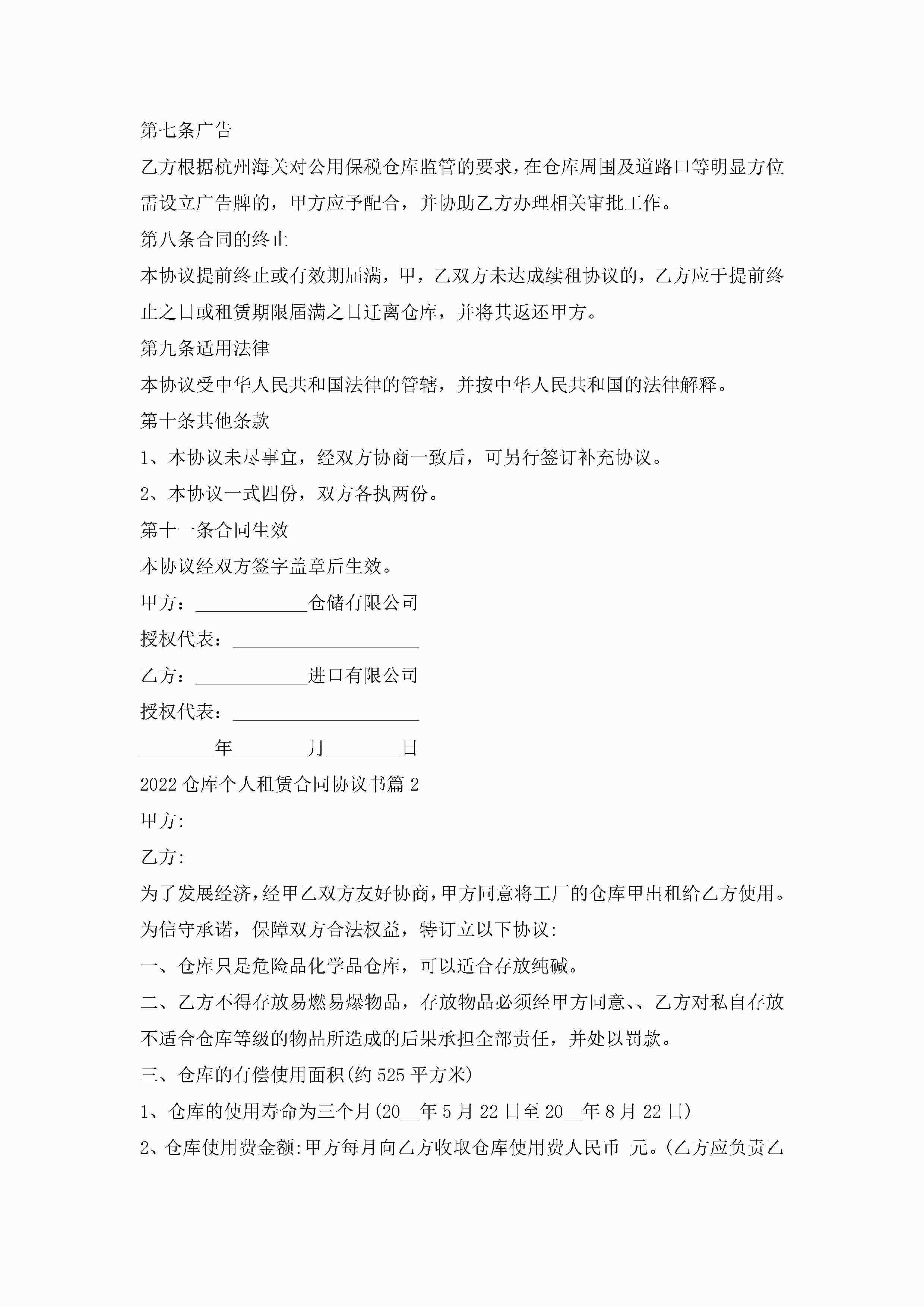 2022仓库个人租赁合同协议书6篇jugei3月23日 01:42发布关注244 2022仓库个人租赁合同协议书6篇此内容为付费资源,请付费后查看¥10.9 单篇文档限时特惠¥15个人会员开通企业会员开通立即下载无需登陆!可直接快捷下载单个模板付费资源© 版权声明THE ENDWord模板# 实用文档# 实用模板# 合同模板# 租赁合同 如有问题,可点击最底部“联系我们”联系客服 分享QQ空间微博QQ好友海报分享复制链接收藏