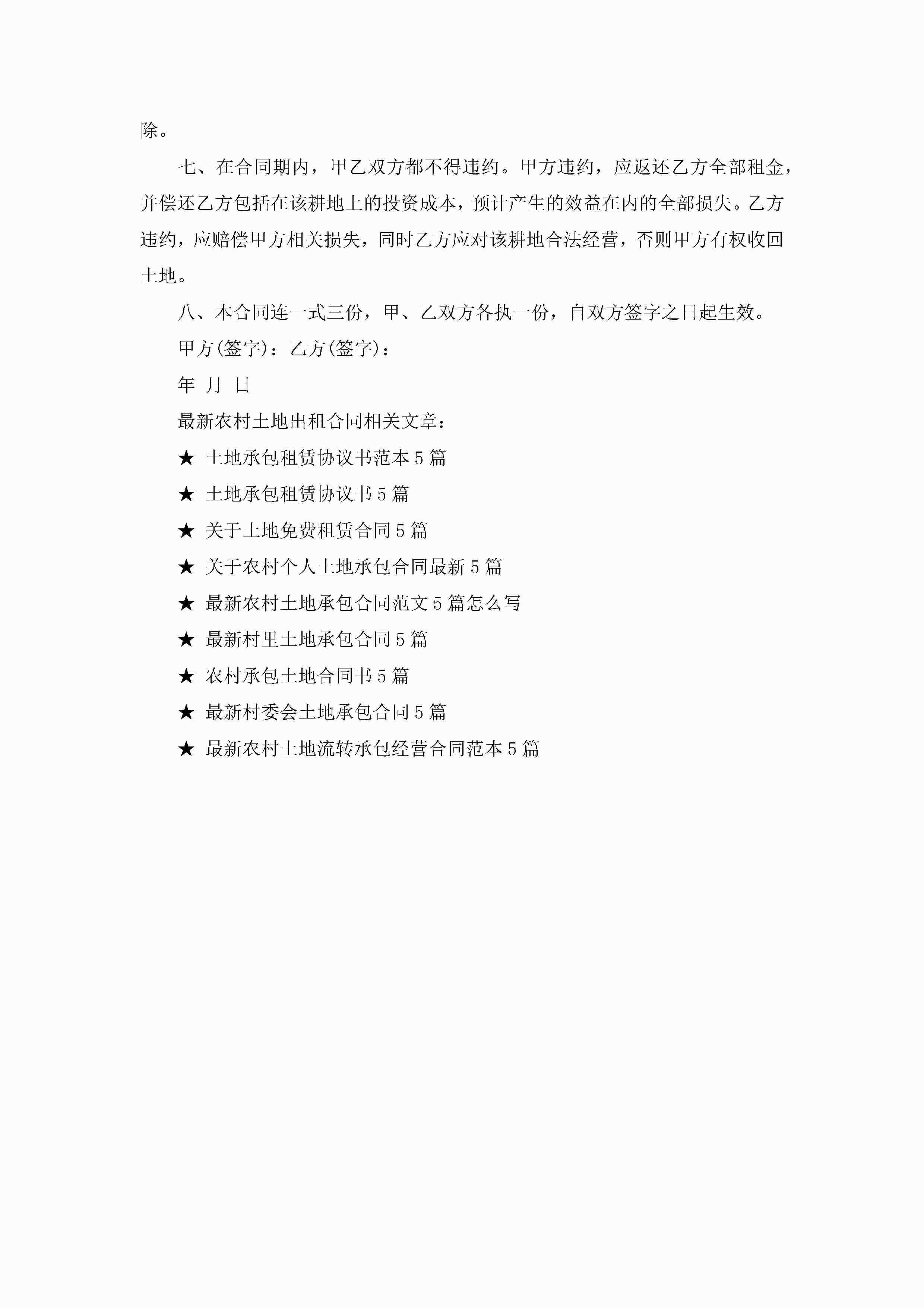 最新农村土地出租合同(5篇)jugei3月23日 01:42发布关注203 最新农村土地出租合同(5篇)此内容为付费资源,请付费后查看¥10.9 单篇文档限时特惠¥15个人会员开通企业会员开通立即下载无需登陆!可直接快捷下载单个模板付费资源© 版权声明THE ENDWord模板# 实用文档# 实用模板# 合同模板# 租赁合同 如有问题,可点击最底部“联系我们”联系客服 分享QQ空间微博QQ好友海报分享复制链接收藏