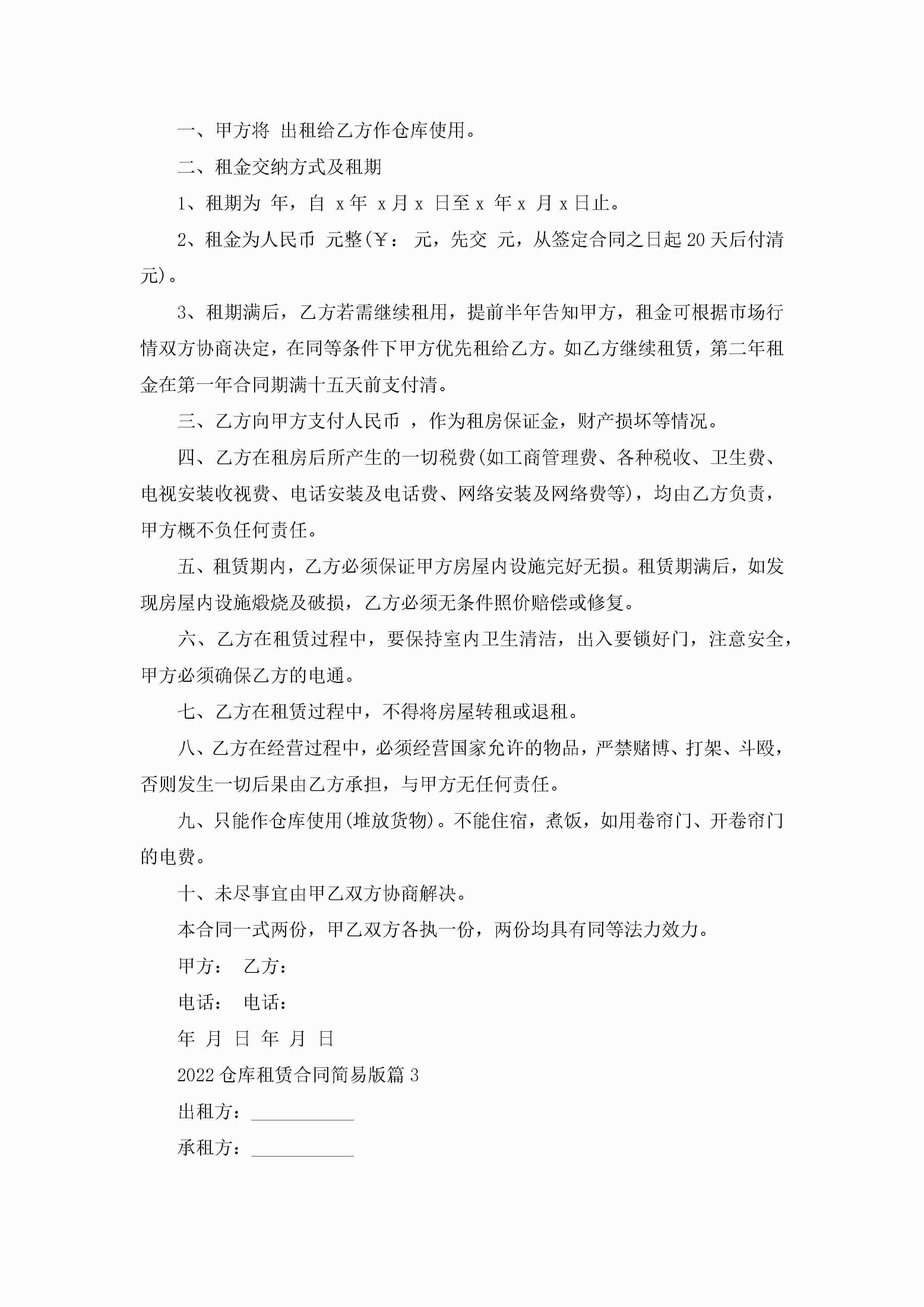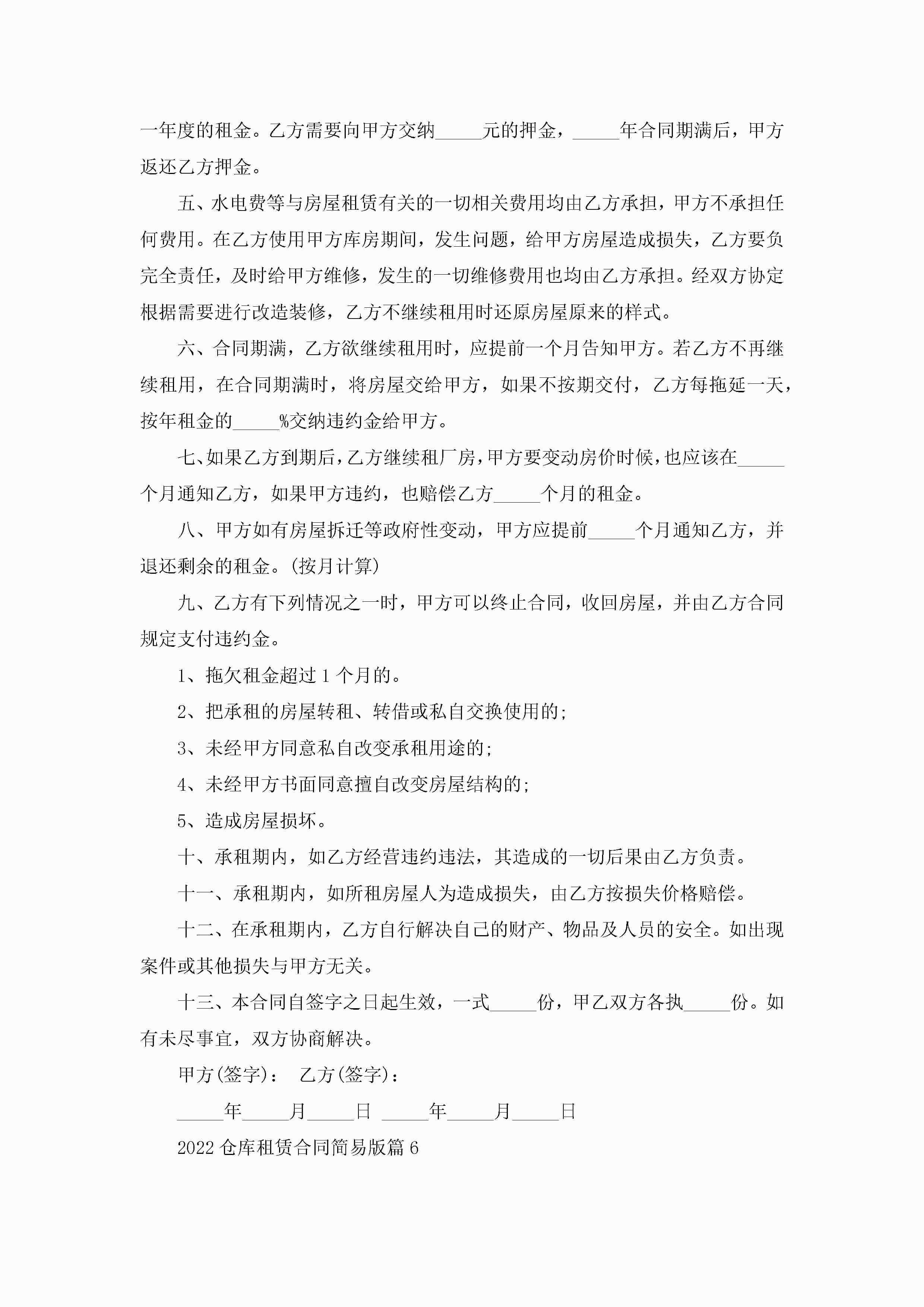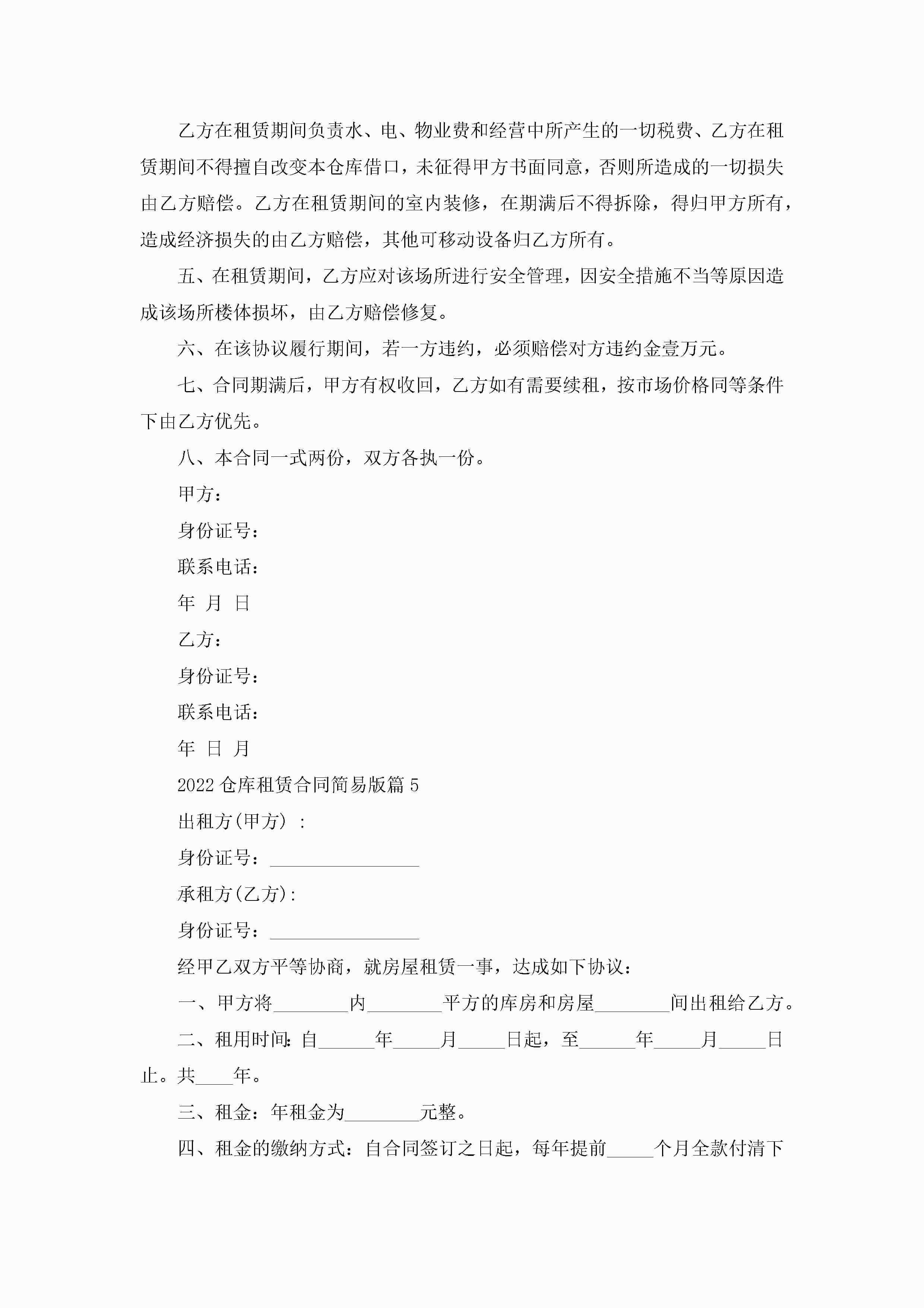 2022仓库租赁合同简易版(8篇)jugei3月23日 01:42发布关注187 2022仓库租赁合同简易版(8篇)此内容为付费资源,请付费后查看¥10.9 单篇文档限时特惠¥15个人会员开通企业会员开通立即下载无需登陆!可直接快捷下载单个模板付费资源© 版权声明THE ENDWord模板# 实用文档# 实用模板# 合同模板# 租赁合同 如有问题,可点击最底部“联系我们”联系客服 分享QQ空间微博QQ好友海报分享复制链接收藏