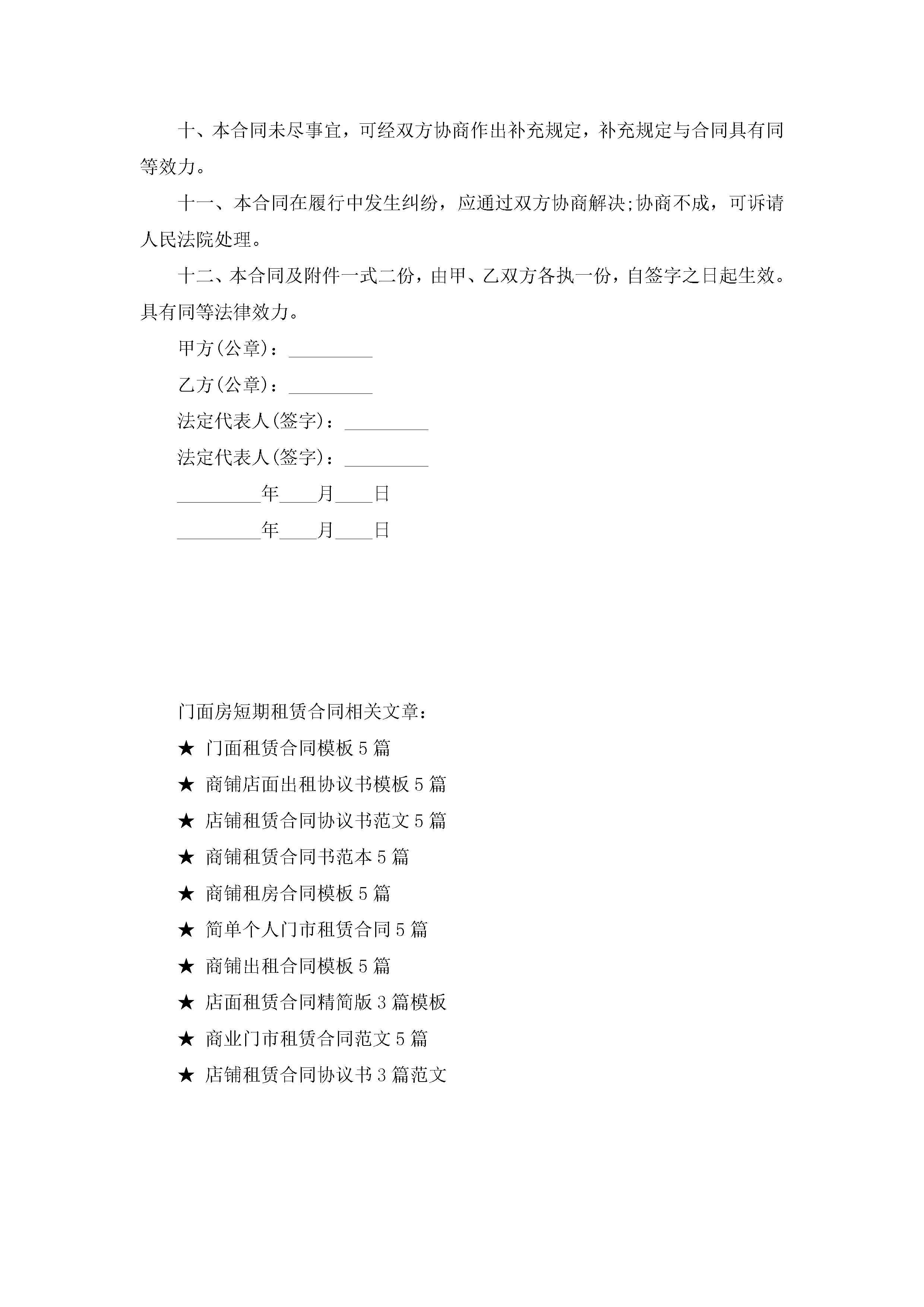 门面房短期租赁合同模板jugei3月23日 01:42发布关注186 门面房短期租赁合同模板此内容为付费资源,请付费后查看¥10.9 单篇文档限时特惠¥15个人会员开通企业会员开通立即下载无需登陆!可直接快捷下载单个模板付费资源© 版权声明THE ENDWord模板# 实用文档# 实用模板# 合同模板# 租赁合同 如有问题,可点击最底部“联系我们”联系客服 分享QQ空间微博QQ好友海报分享复制链接收藏